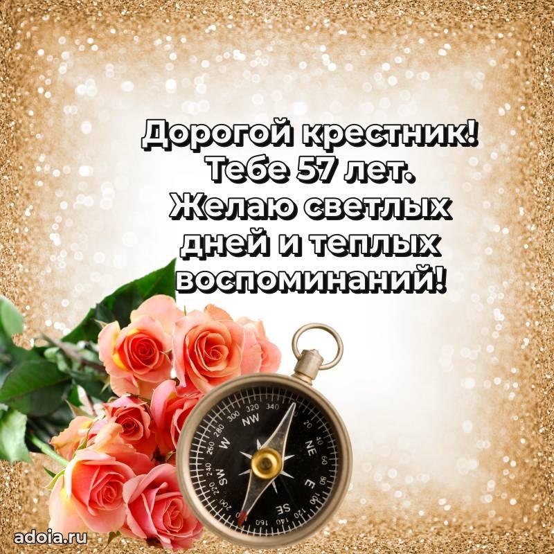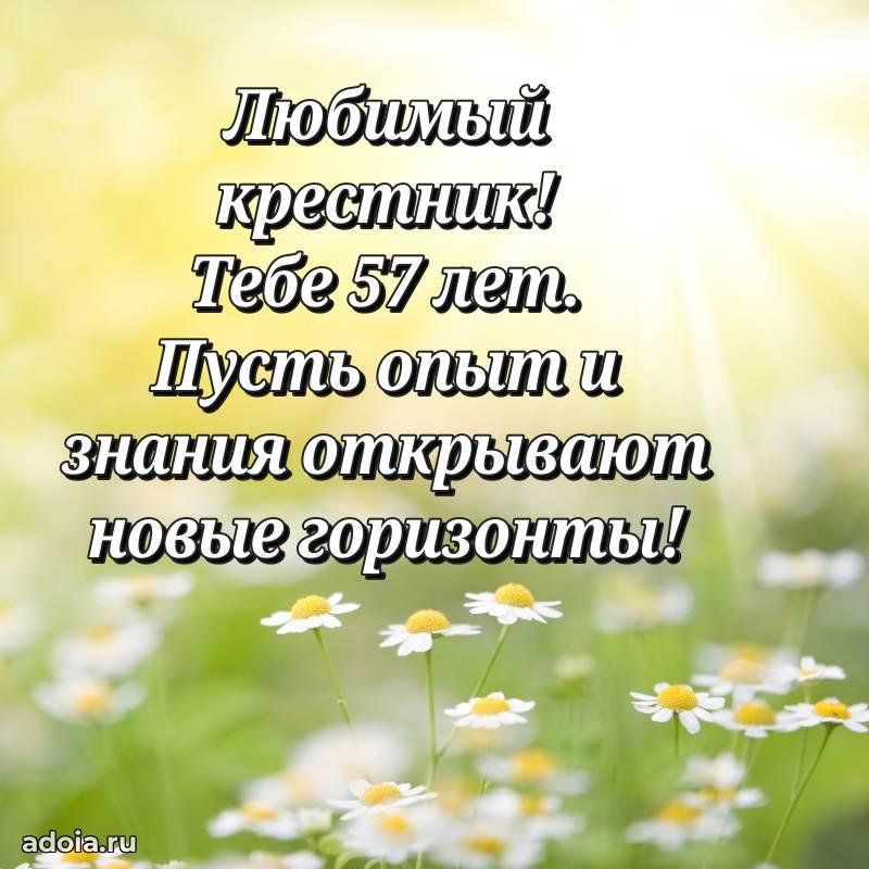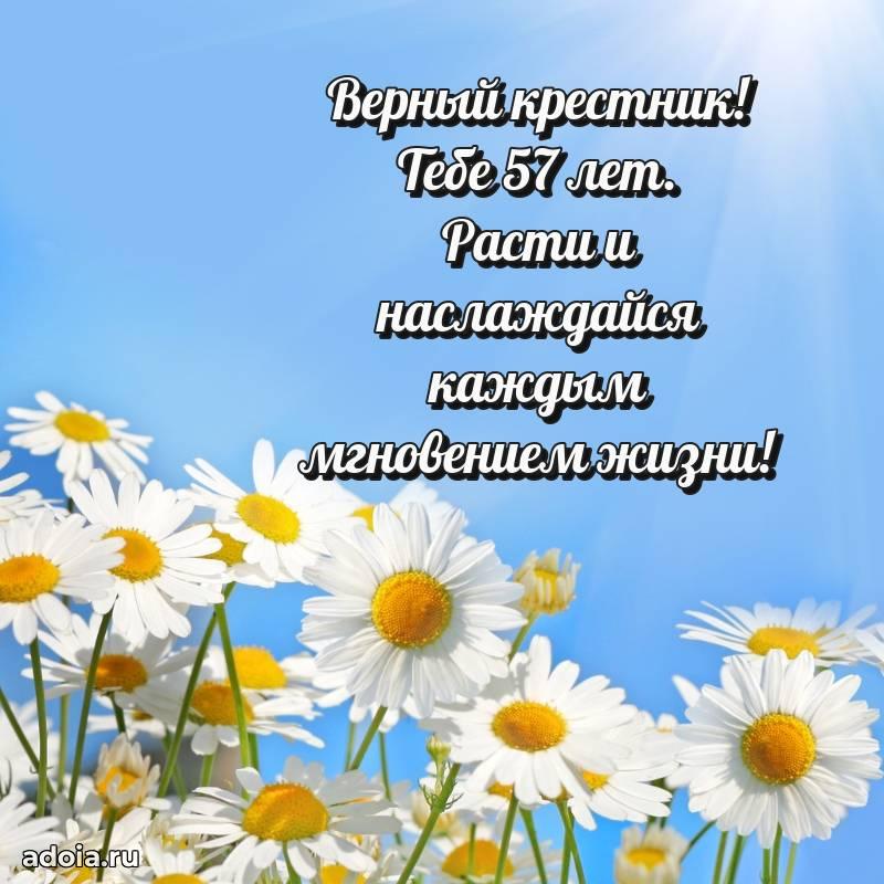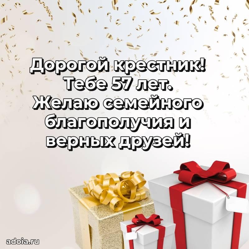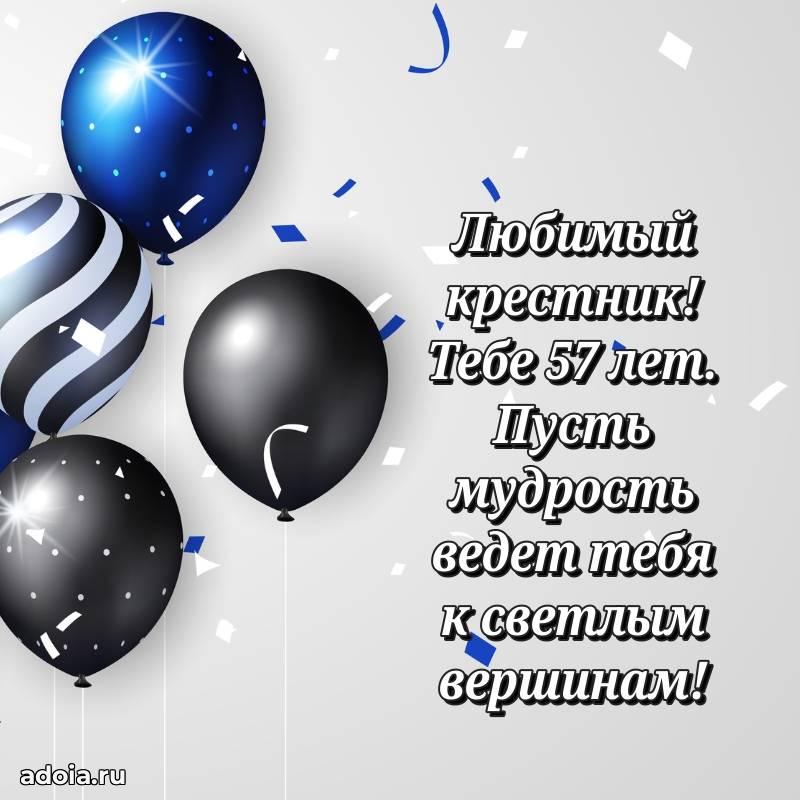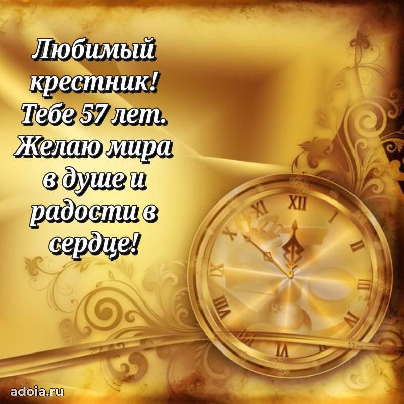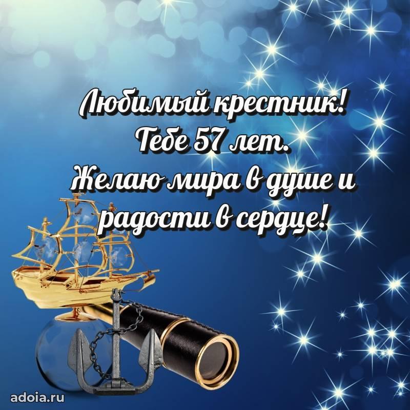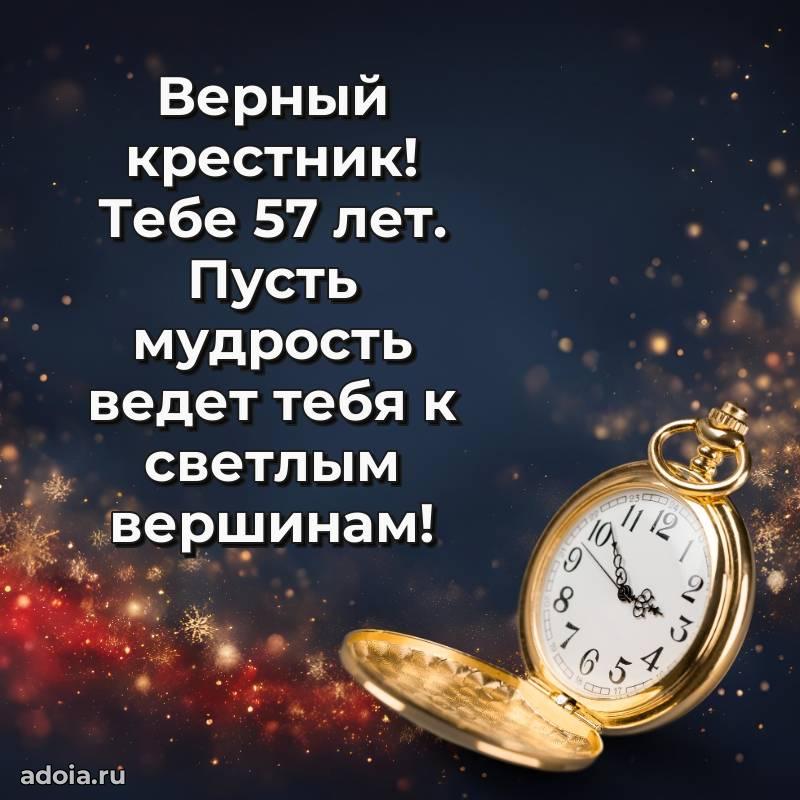 В поисках красивых и современных открыток? Вы попали по адресу! Здесь вы найдете картинки с днем рождения Крестнику на 57 лет! Все картинки в высоком качестве, которые можно скачать или отправить через WhatsApp бесплатно. Также вы найдете много прикольных и мерцающих гифок и анимаций, которые поднимут настроение! Все открытки содержат поздравления в стихах и прозе.