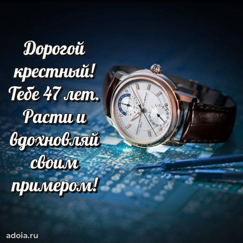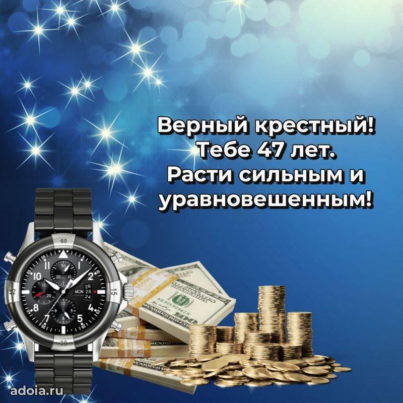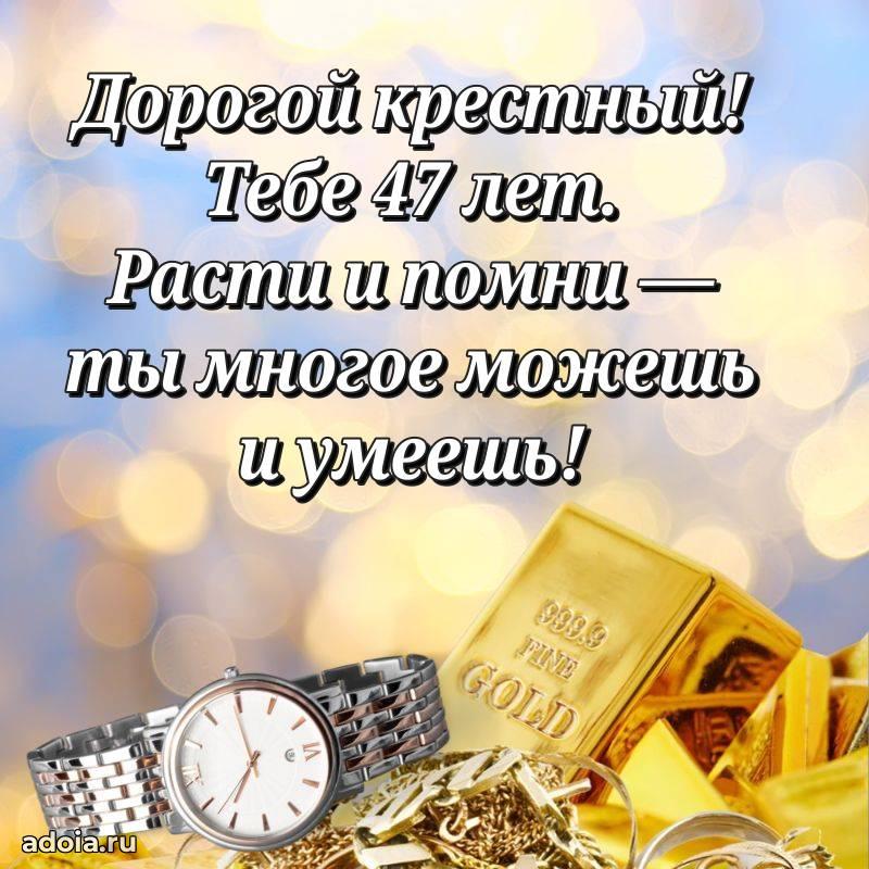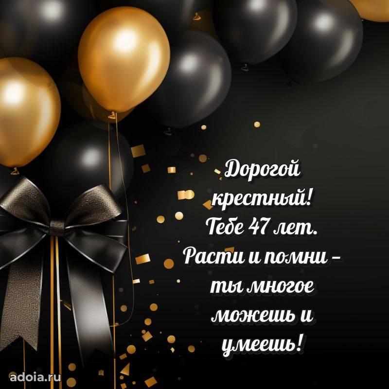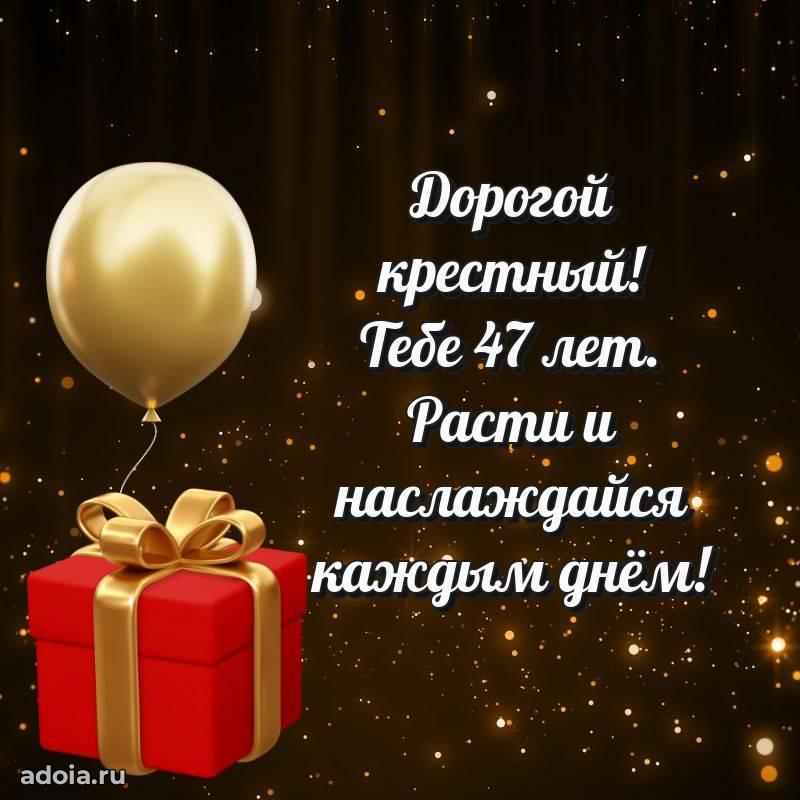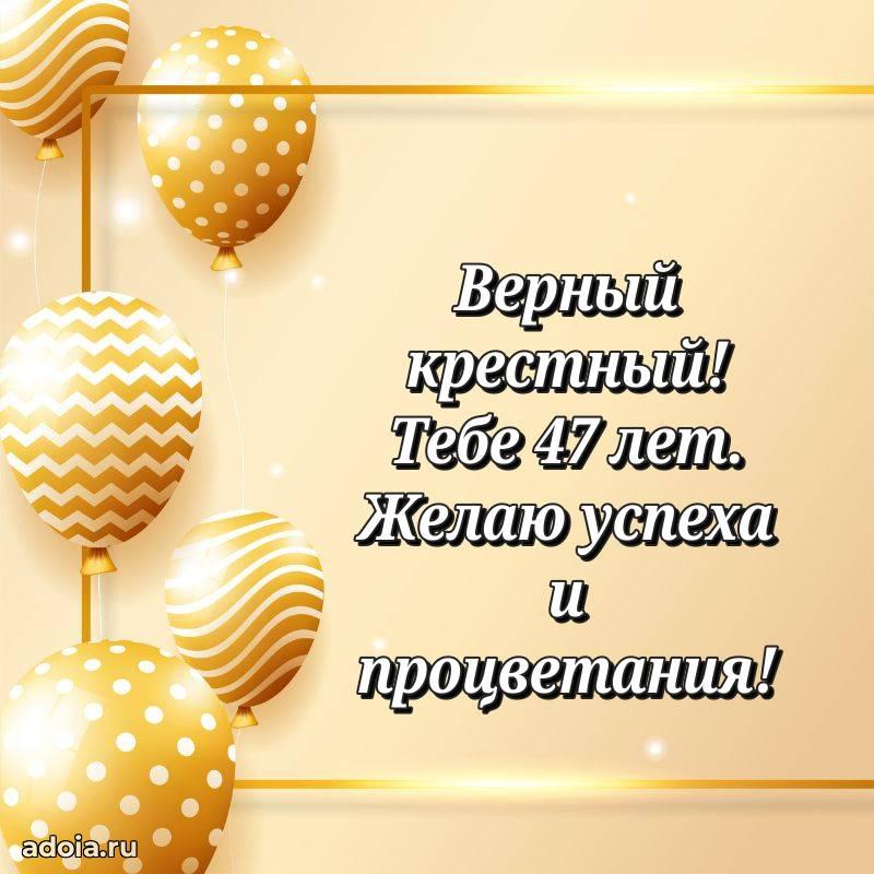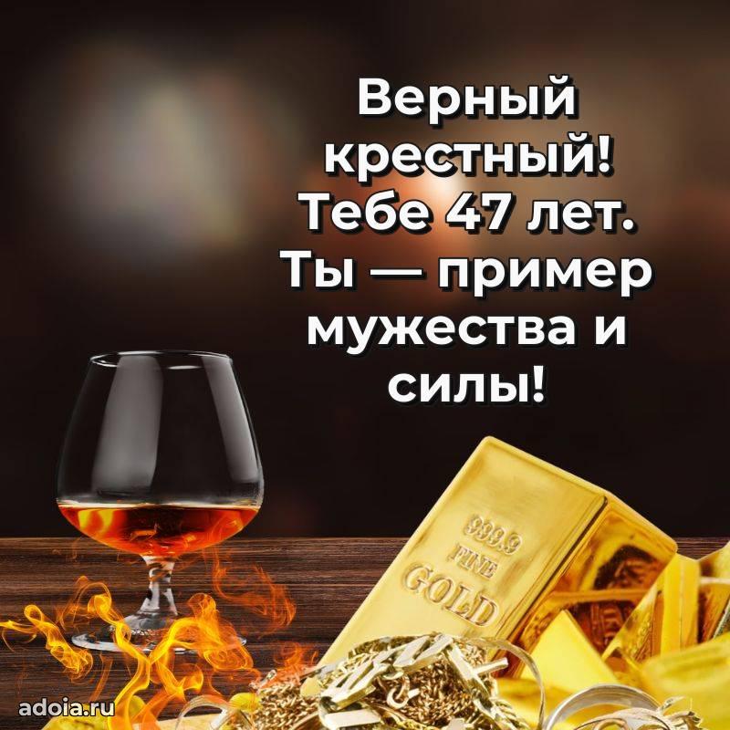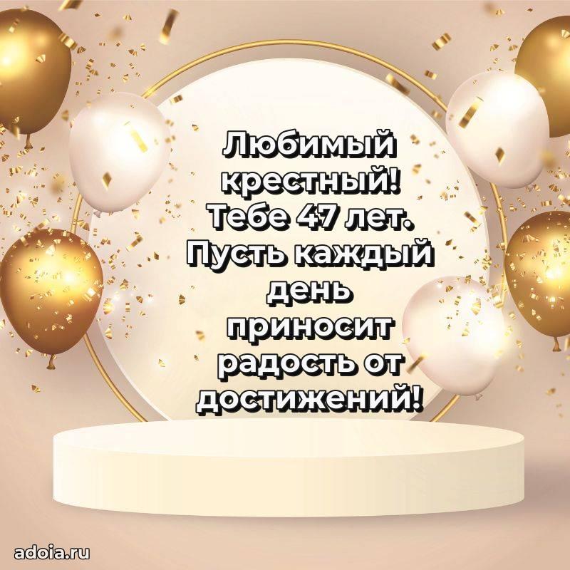 В поисках красивых и современных открыток? Вы попали по адресу! Здесь вы найдете картинки с днем рождения Крестному на 47 лет! Все картинки в высоком качестве, которые можно скачать или отправить через WhatsApp бесплатно. Также вы найдете много прикольных и мерцающих гифок и анимаций, которые поднимут настроение! Все открытки содержат поздравления в стихах и прозе.