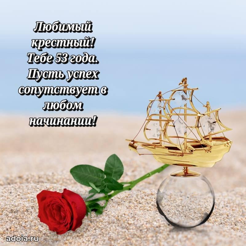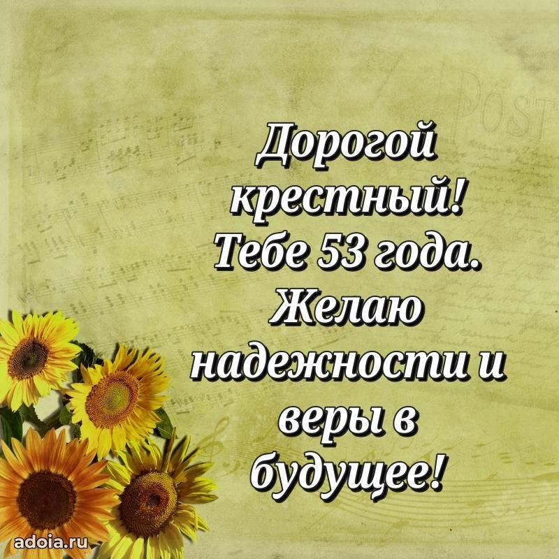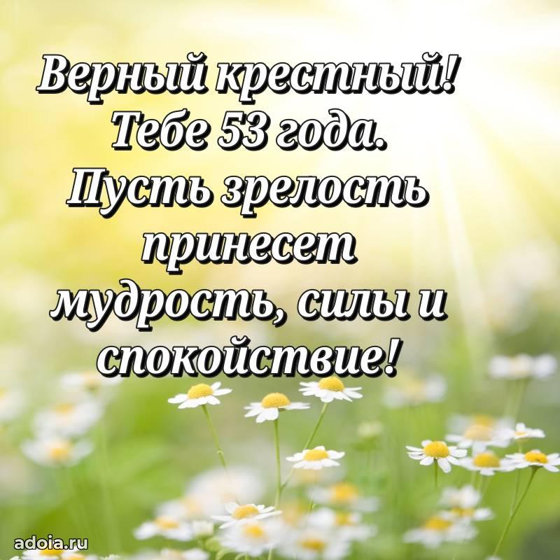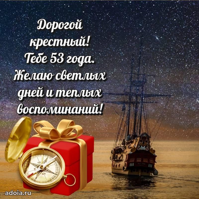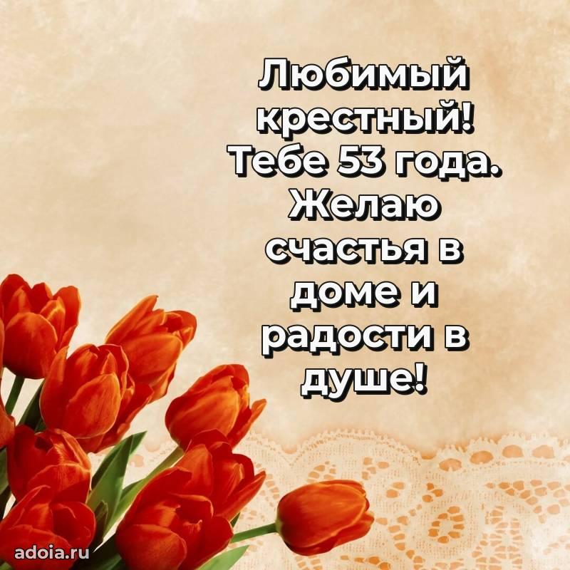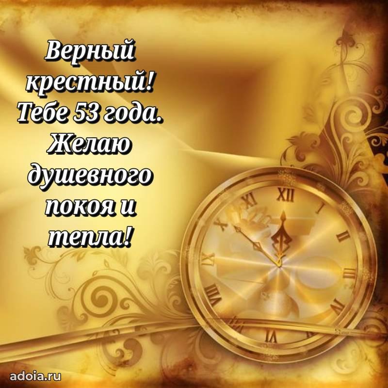 В поисках красивых и современных открыток? Вы попали по адресу! Здесь вы найдете картинки с днем рождения Крестному на 53 года! Все картинки в высоком качестве, которые можно скачать или отправить через WhatsApp бесплатно. Также вы найдете много прикольных и мерцающих гифок и анимаций, которые поднимут настроение! Все открытки содержат поздравления в стихах и прозе.