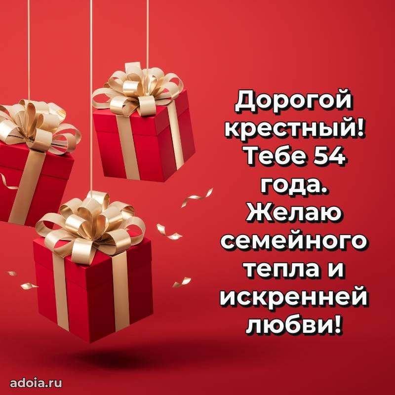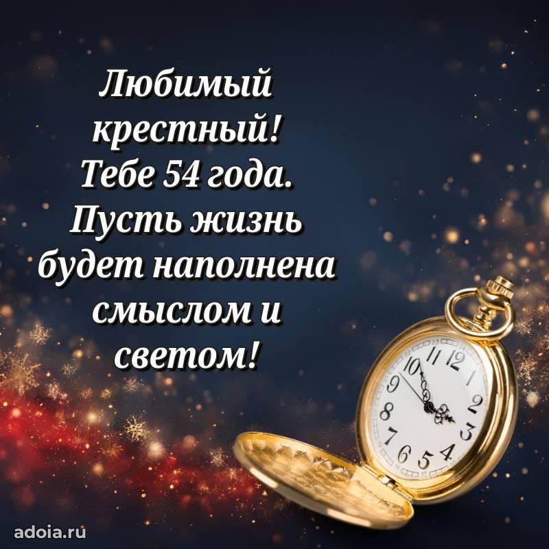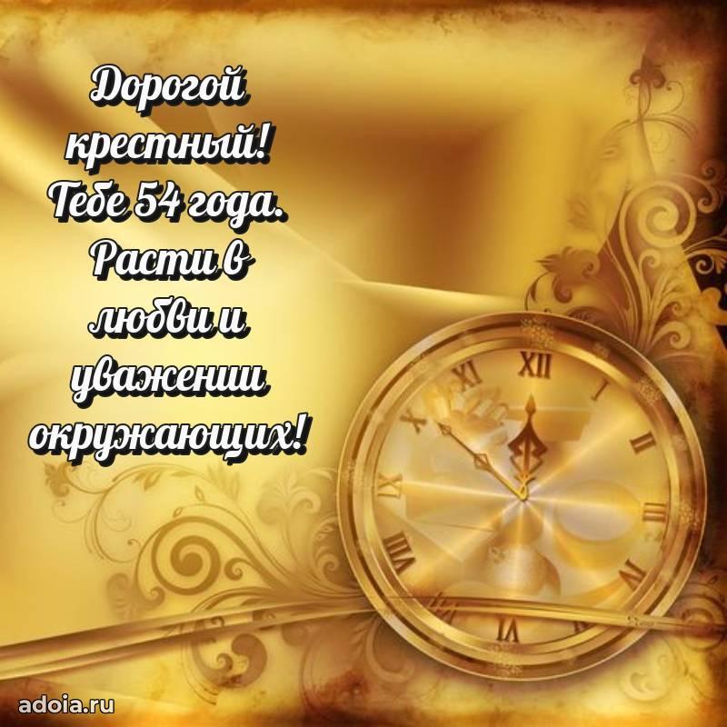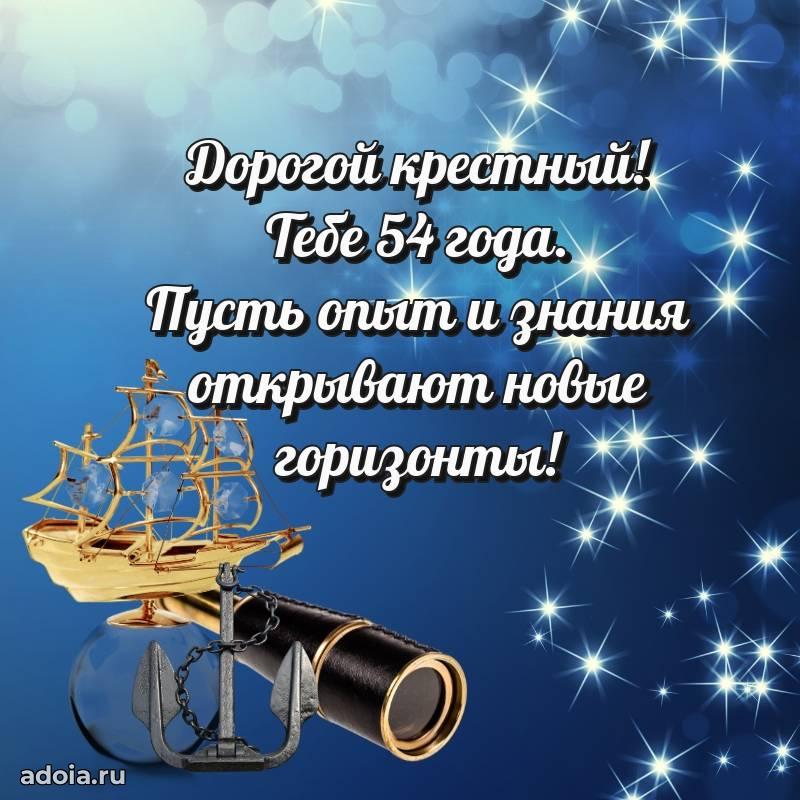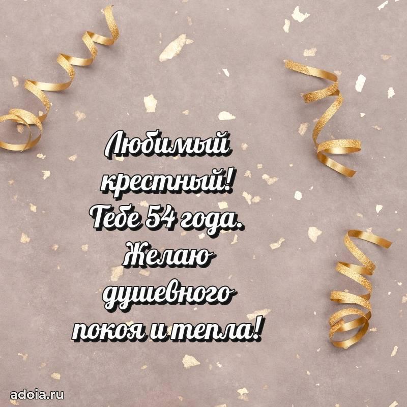 В поисках красивых и современных открыток? Вы попали по адресу! Здесь вы найдете картинки с днем рождения Крестному на 54 года! Все картинки в высоком качестве, которые можно скачать или отправить через WhatsApp бесплатно. Также вы найдете много прикольных и мерцающих гифок и анимаций, которые поднимут настроение! Все открытки содержат поздравления в стихах и прозе.