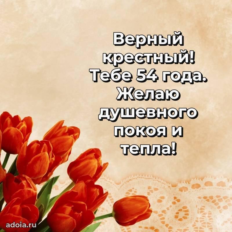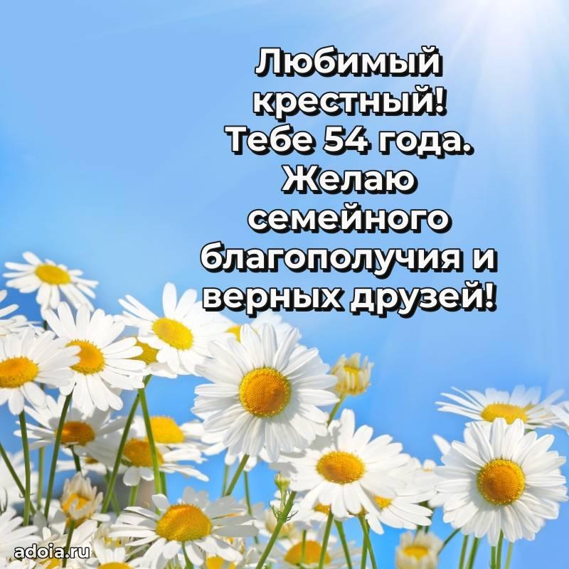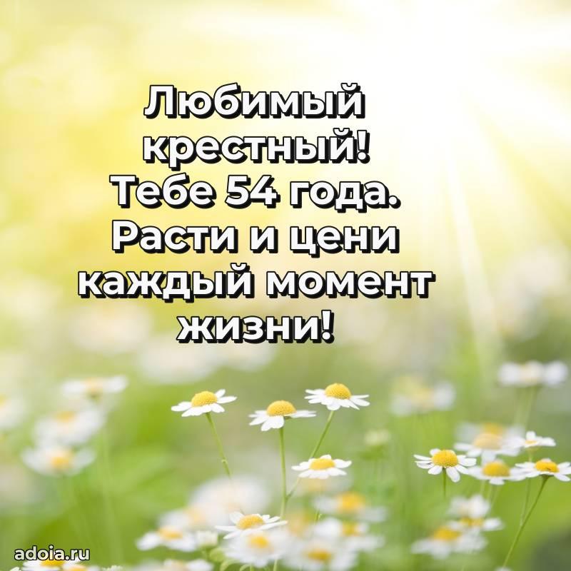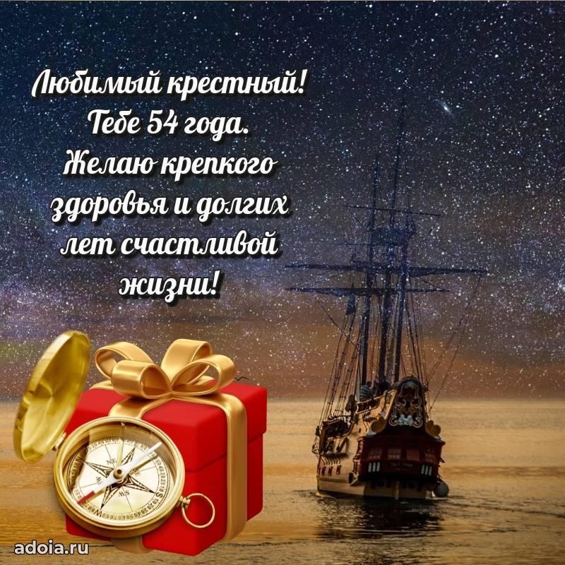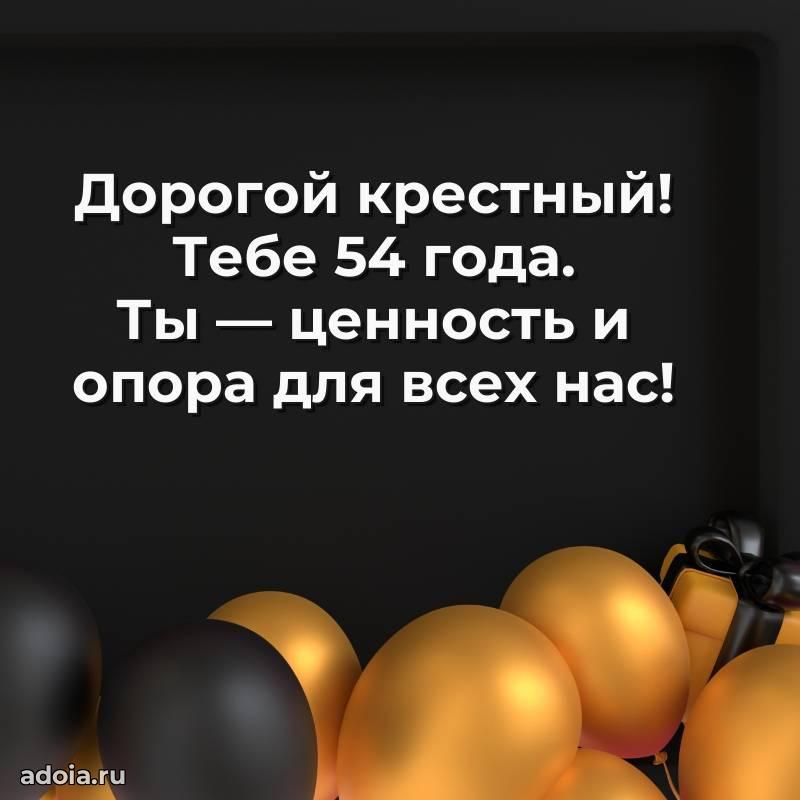 В поисках красивых и современных открыток? Вы попали по адресу! Здесь вы найдете картинки с днем рождения Крестному на 54 года! Все картинки в высоком качестве, которые можно скачать или отправить через WhatsApp бесплатно. Также вы найдете много прикольных и мерцающих гифок и анимаций, которые поднимут настроение! Все открытки содержат поздравления в стихах и прозе.