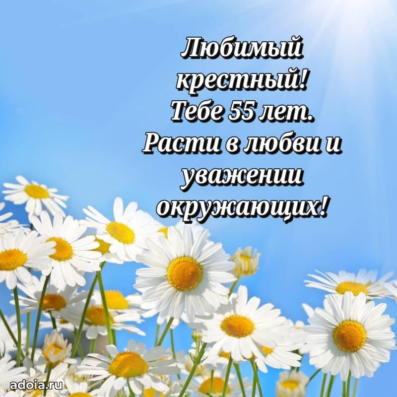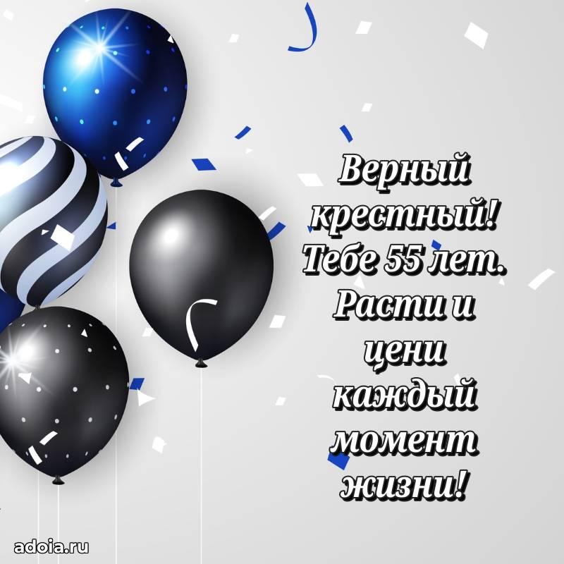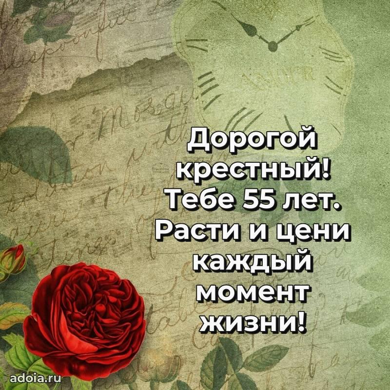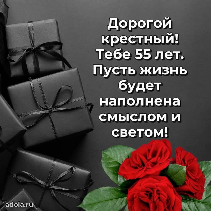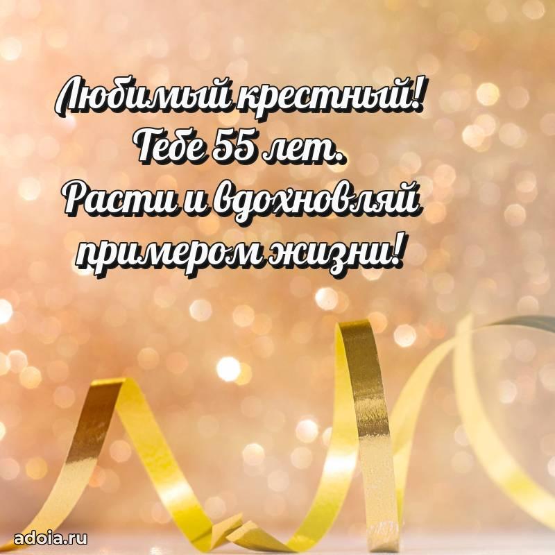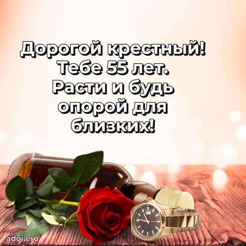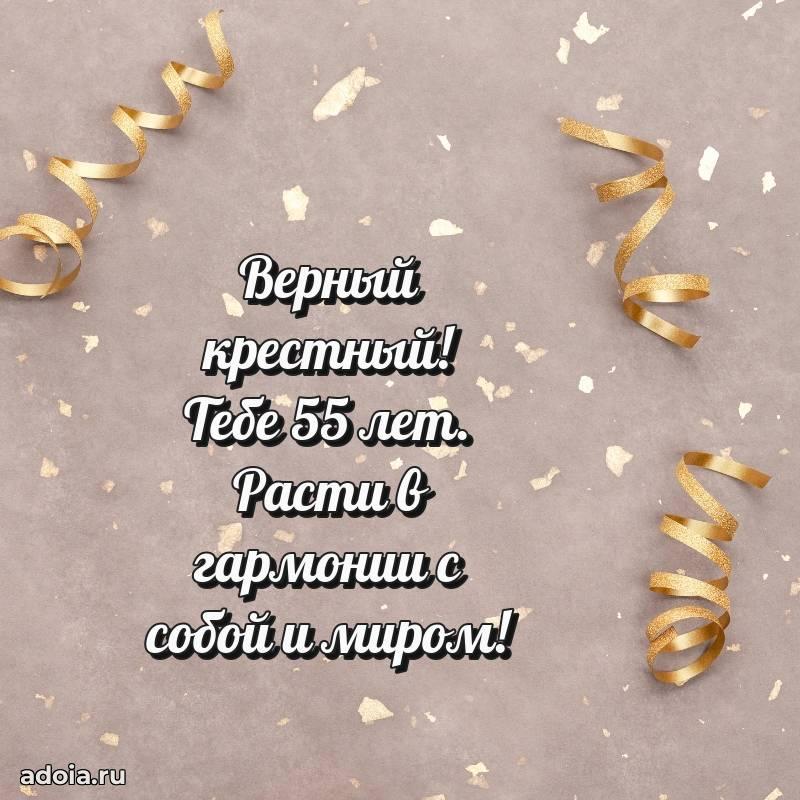 В поисках красивых и современных открыток? Вы попали по адресу! Здесь вы найдете картинки с днем рождения Крестному на 55 лет! Все картинки в высоком качестве, которые можно скачать или отправить через WhatsApp бесплатно. Также вы найдете много прикольных и мерцающих гифок и анимаций, которые поднимут настроение! Все открытки содержат поздравления в стихах и прозе.