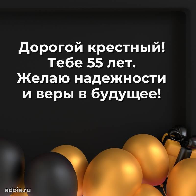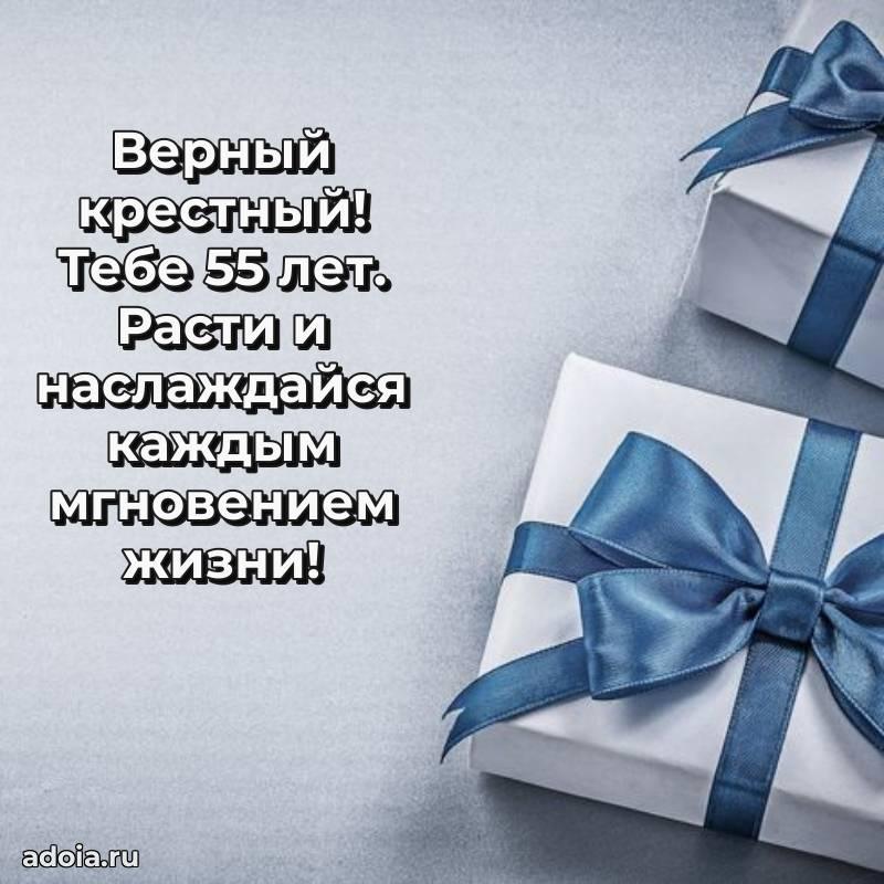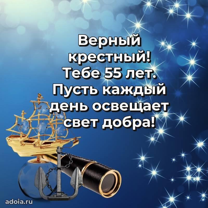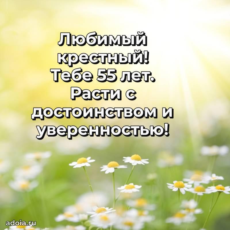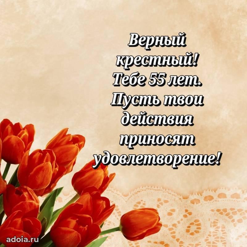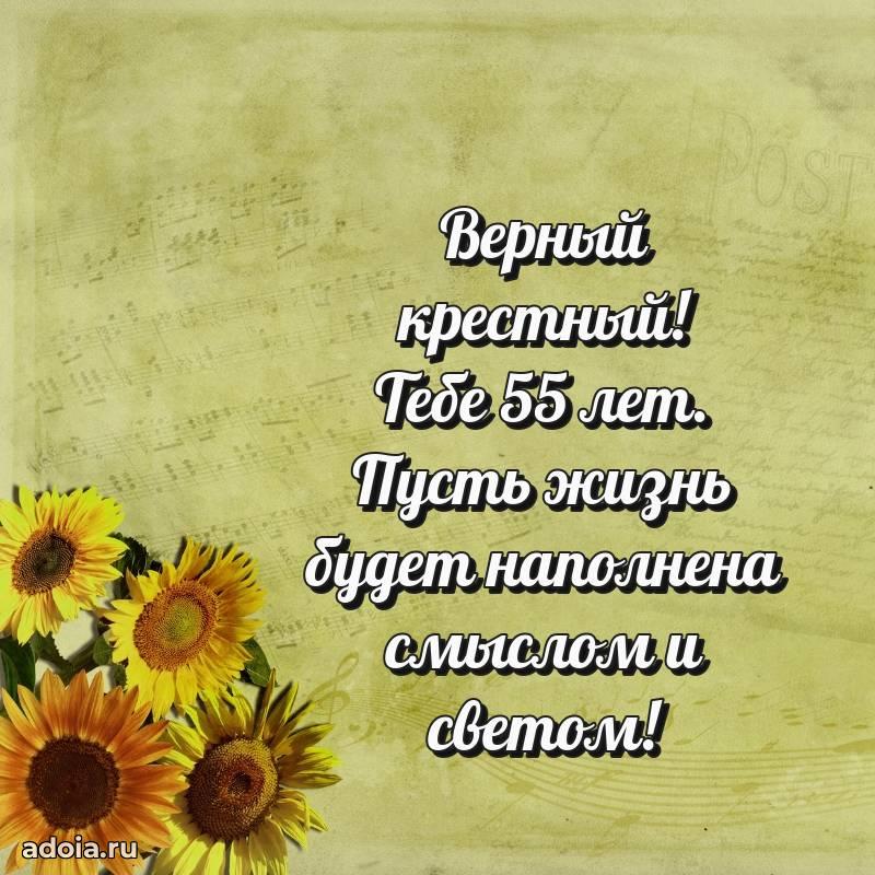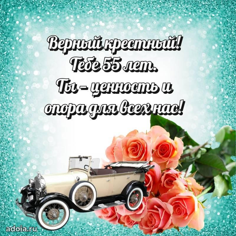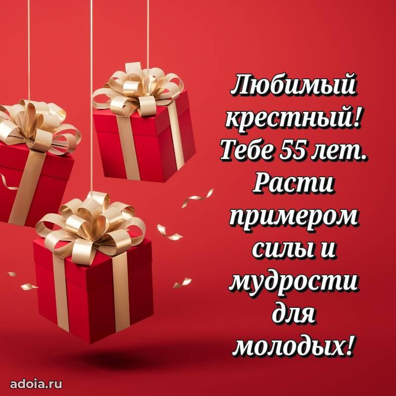 В поисках красивых и современных открыток? Вы попали по адресу! Здесь вы найдете картинки с днем рождения Крестному на 55 лет! Все картинки в высоком качестве, которые можно скачать или отправить через WhatsApp бесплатно. Также вы найдете много прикольных и мерцающих гифок и анимаций, которые поднимут настроение! Все открытки содержат поздравления в стихах и прозе.