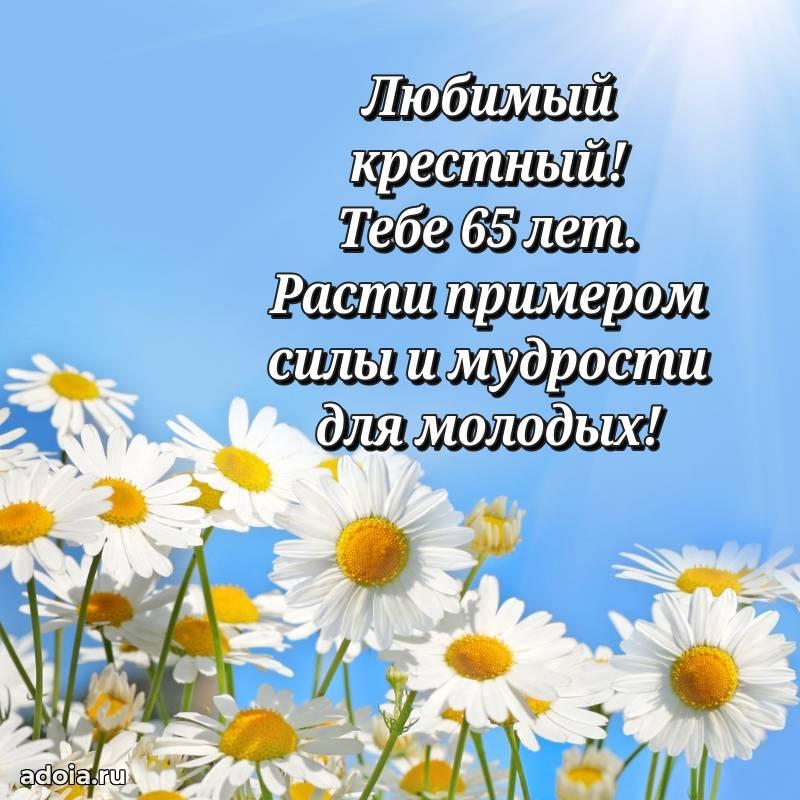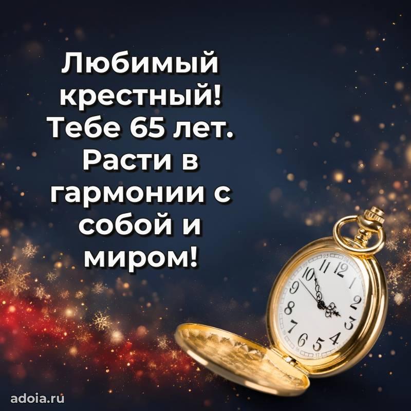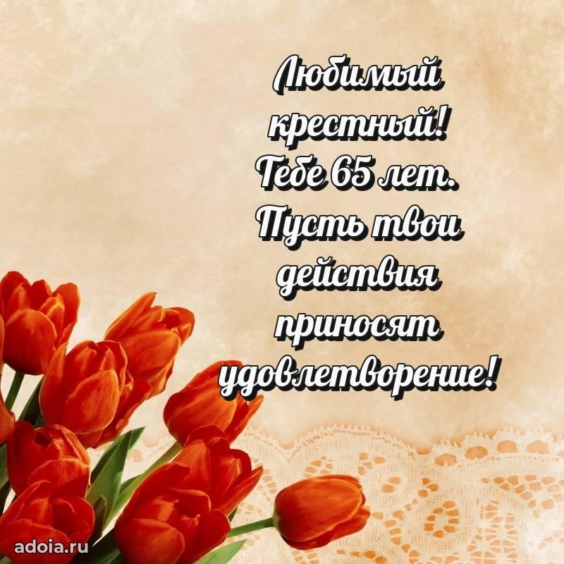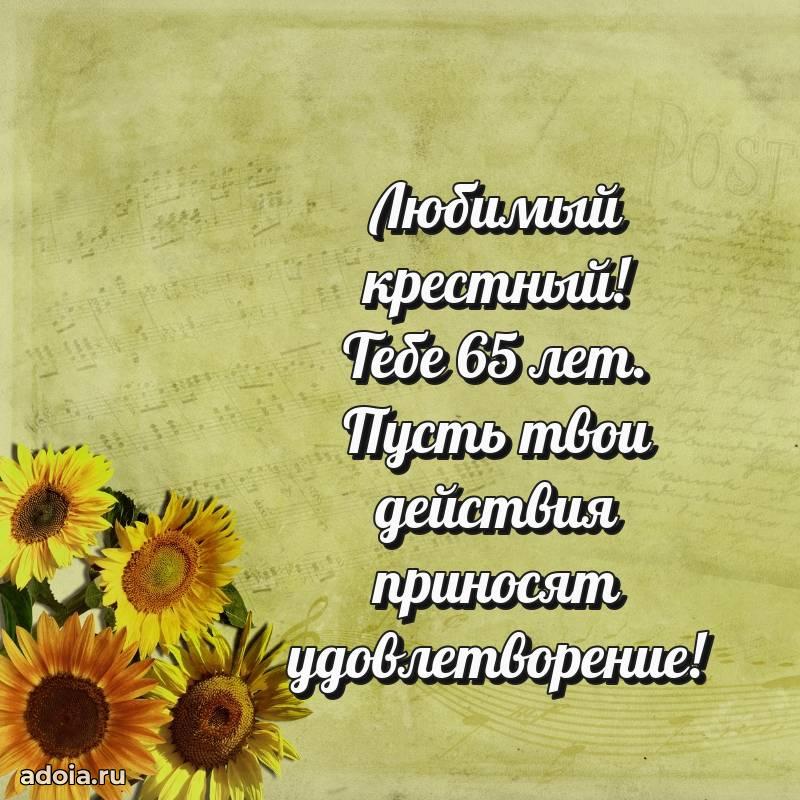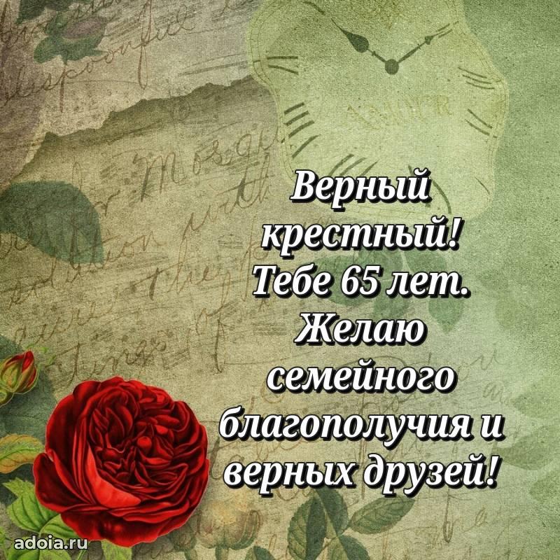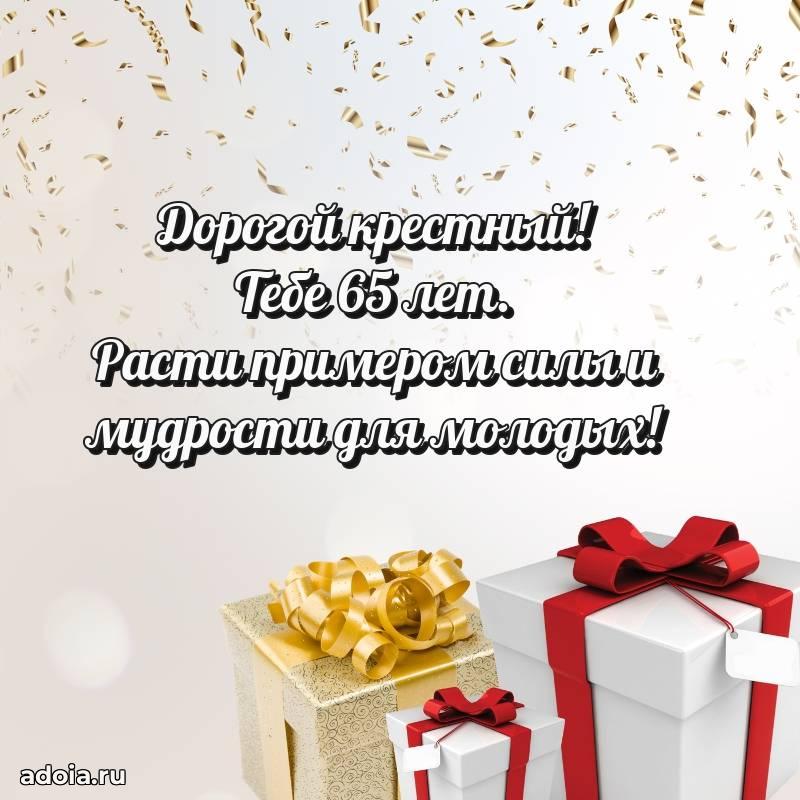 В поисках красивых и современных открыток? Вы попали по адресу! Здесь вы найдете картинки с днем рождения Крестному на 65 лет! Все картинки в высоком качестве, которые можно скачать или отправить через WhatsApp бесплатно. Также вы найдете много прикольных и мерцающих гифок и анимаций, которые поднимут настроение! Все открытки содержат поздравления в стихах и прозе.