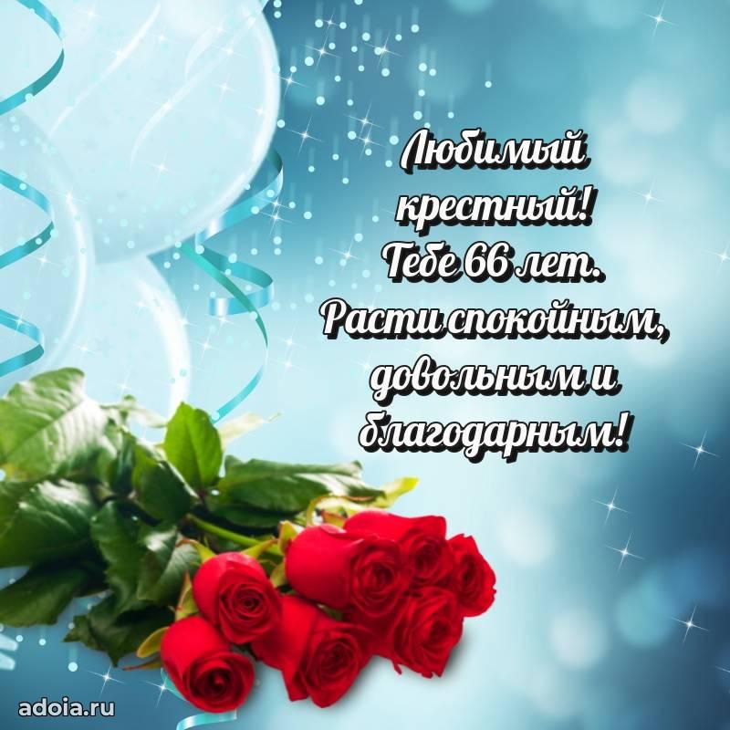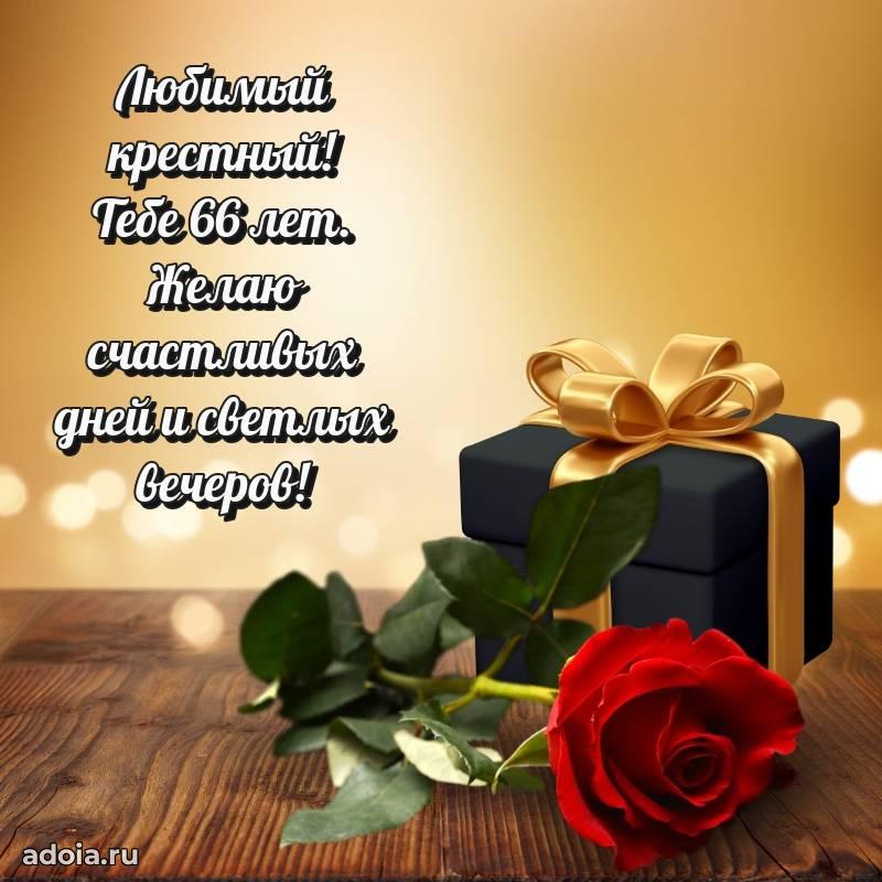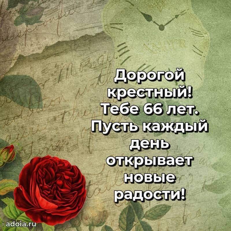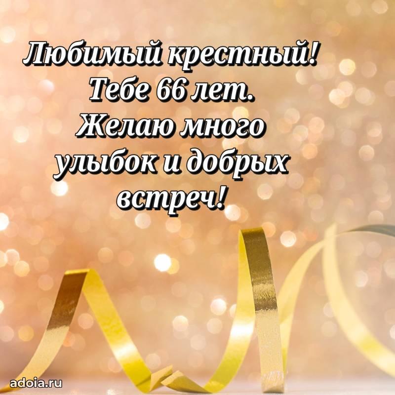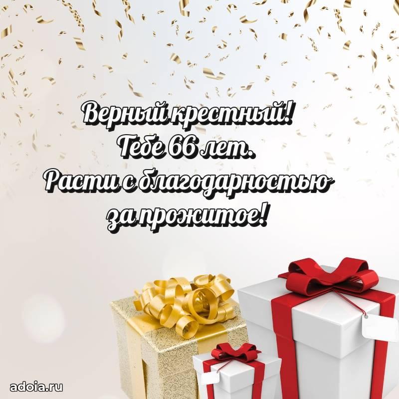 В поисках красивых и современных открыток? Вы попали по адресу! Здесь вы найдете картинки с днем рождения Крестному на 66 лет! Все картинки в высоком качестве, которые можно скачать или отправить через WhatsApp бесплатно. Также вы найдете много прикольных и мерцающих гифок и анимаций, которые поднимут настроение! Все открытки содержат поздравления в стихах и прозе.