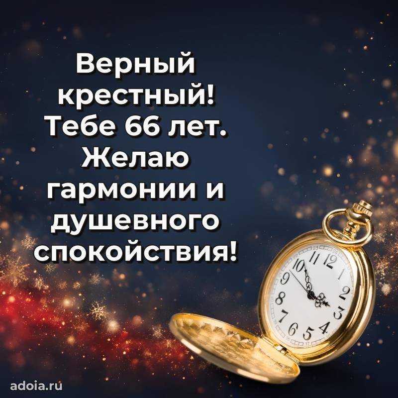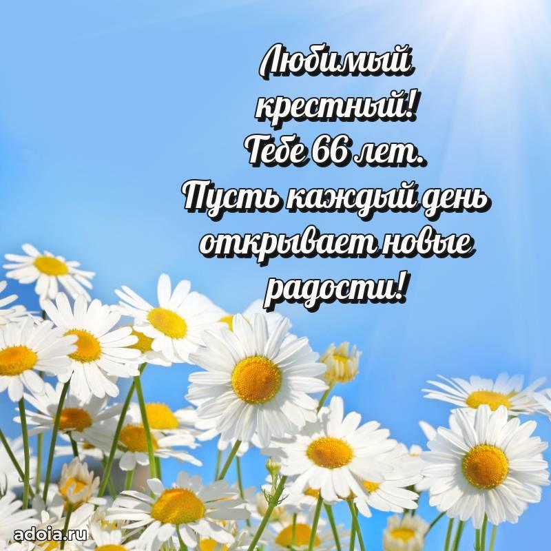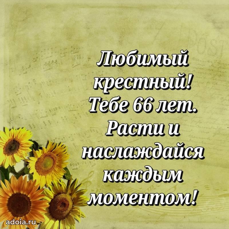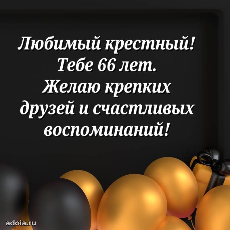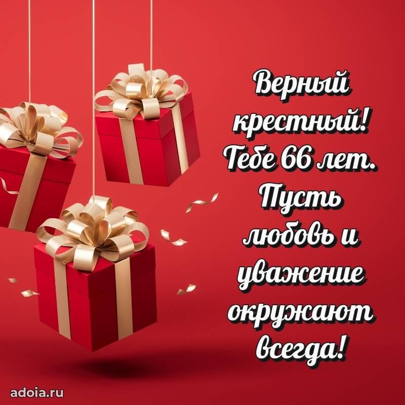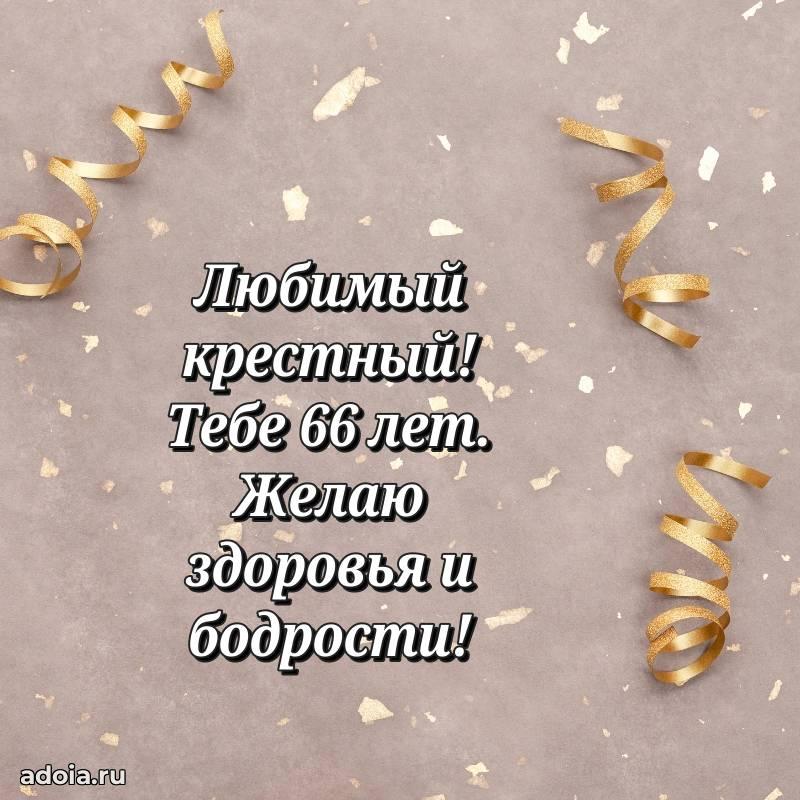 В поисках красивых и современных открыток? Вы попали по адресу! Здесь вы найдете картинки с днем рождения Крестному на 66 лет! Все картинки в высоком качестве, которые можно скачать или отправить через WhatsApp бесплатно. Также вы найдете много прикольных и мерцающих гифок и анимаций, которые поднимут настроение! Все открытки содержат поздравления в стихах и прозе.