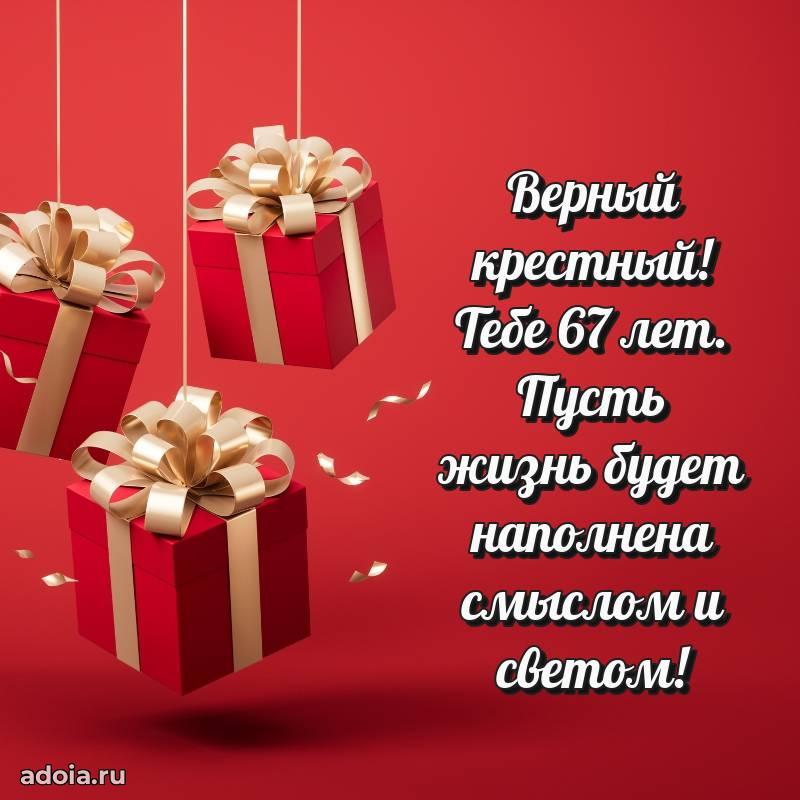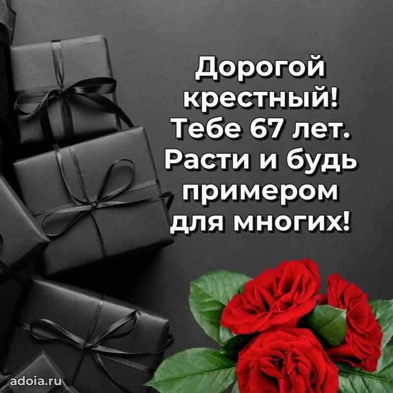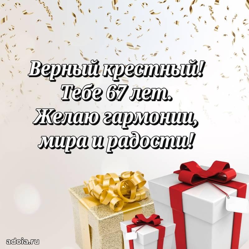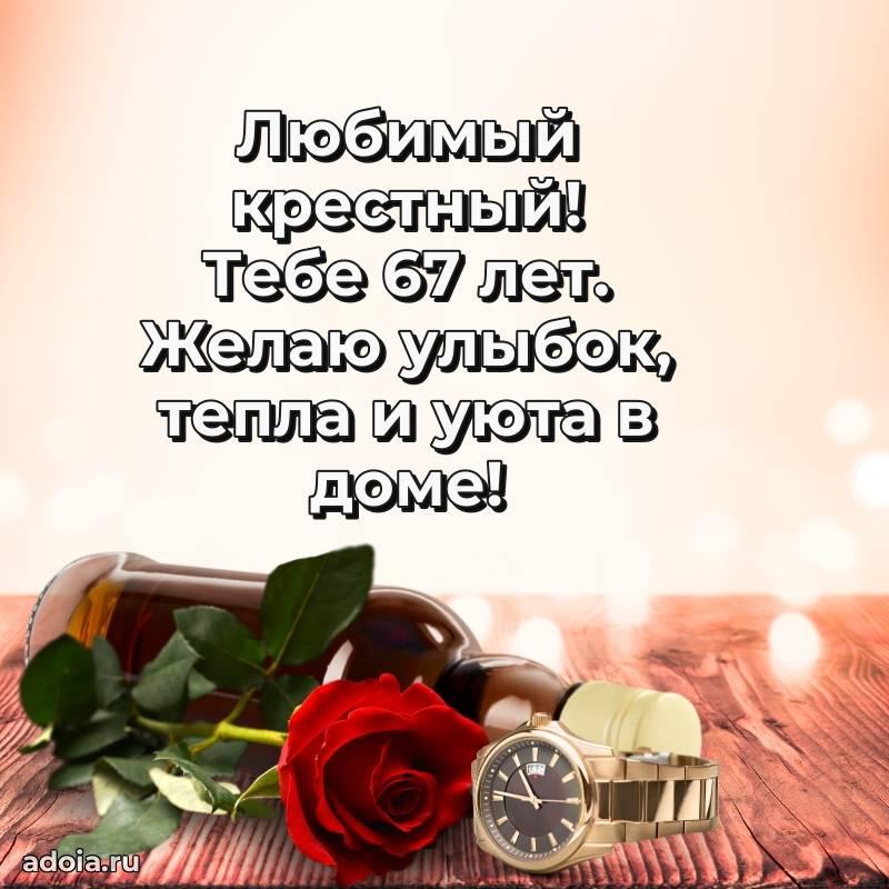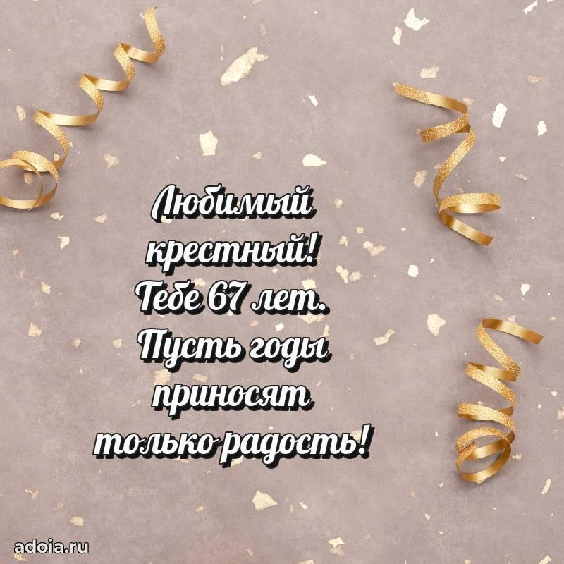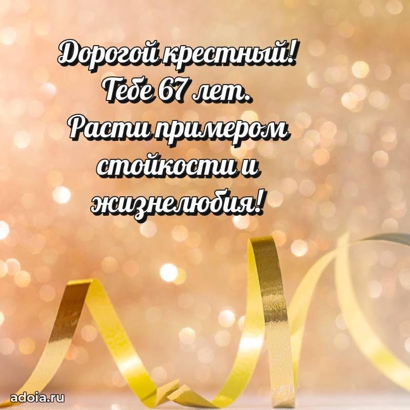 В поисках красивых и современных открыток? Вы попали по адресу! Здесь вы найдете картинки с днем рождения Крестному на 67 лет! Все картинки в высоком качестве, которые можно скачать или отправить через WhatsApp бесплатно. Также вы найдете много прикольных и мерцающих гифок и анимаций, которые поднимут настроение! Все открытки содержат поздравления в стихах и прозе.