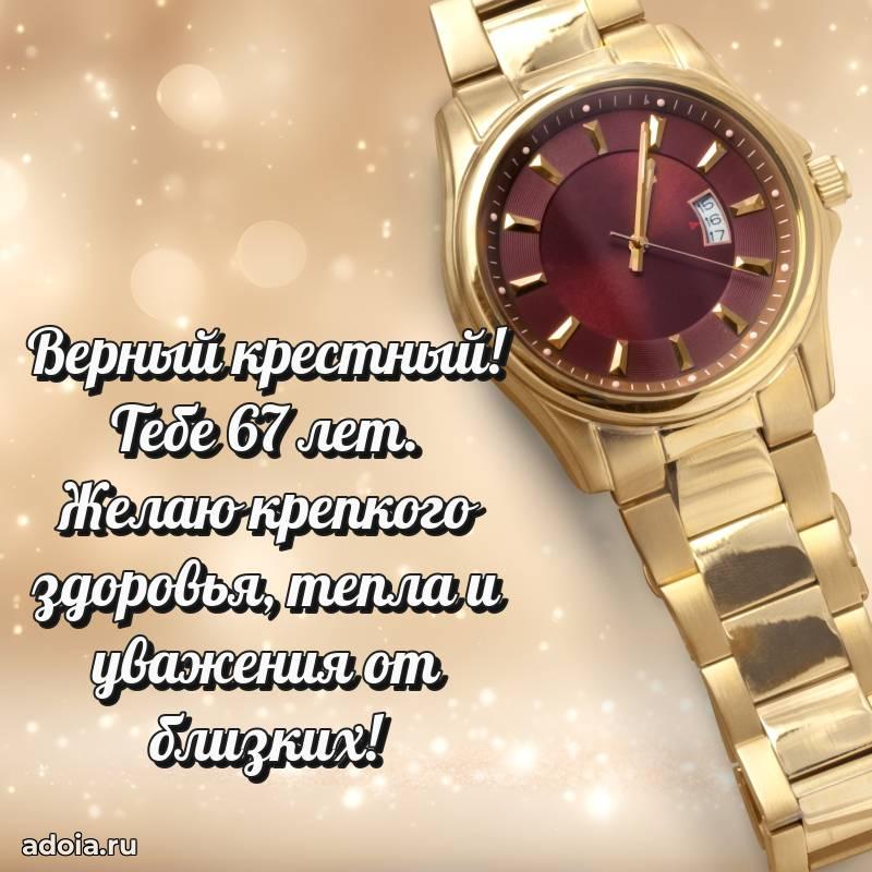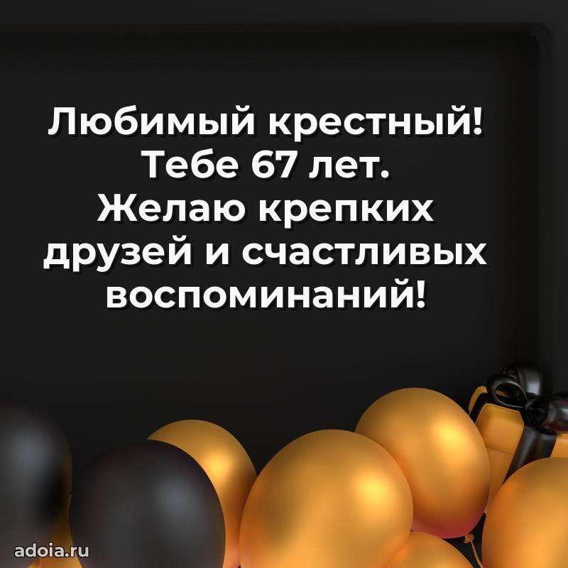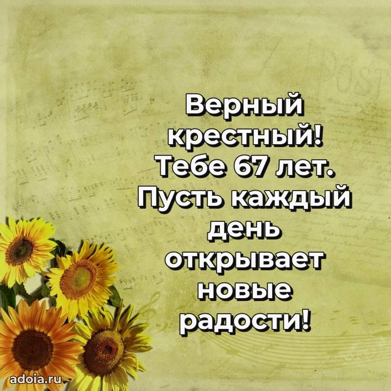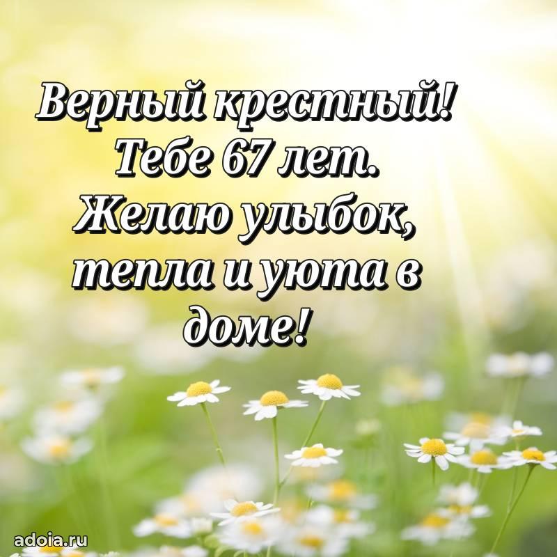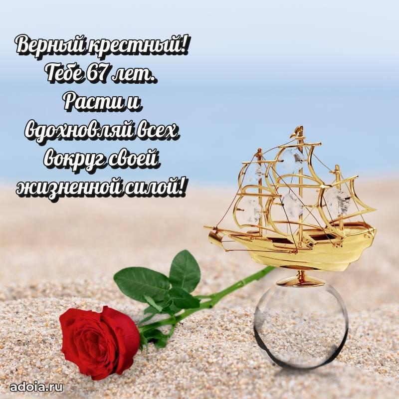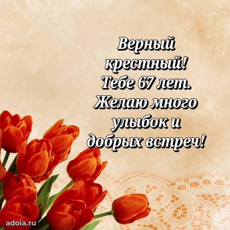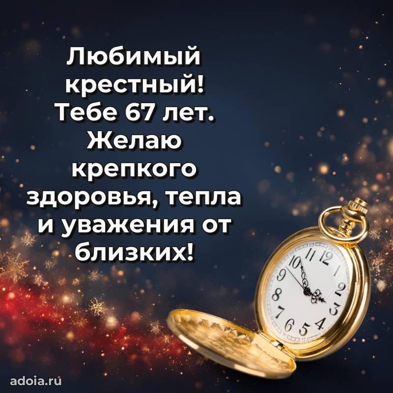 В поисках красивых и современных открыток? Вы попали по адресу! Здесь вы найдете картинки с днем рождения Крестному на 67 лет! Все картинки в высоком качестве, которые можно скачать или отправить через WhatsApp бесплатно. Также вы найдете много прикольных и мерцающих гифок и анимаций, которые поднимут настроение! Все открытки содержат поздравления в стихах и прозе.
