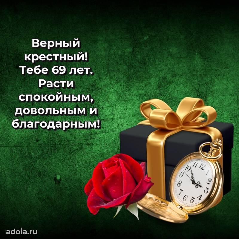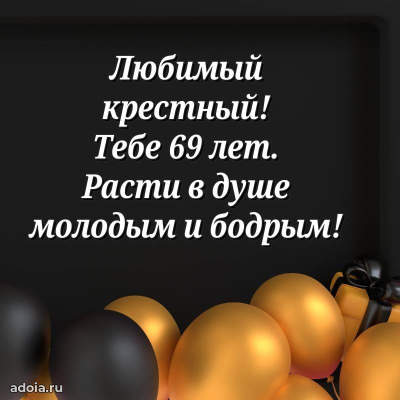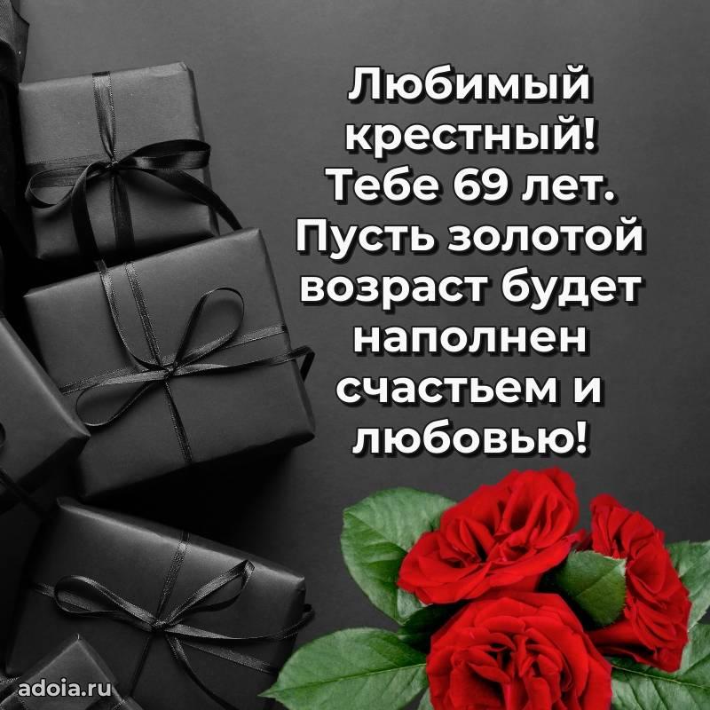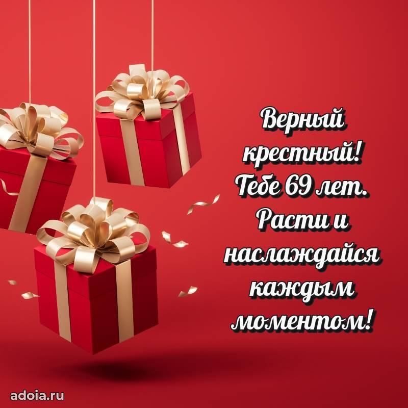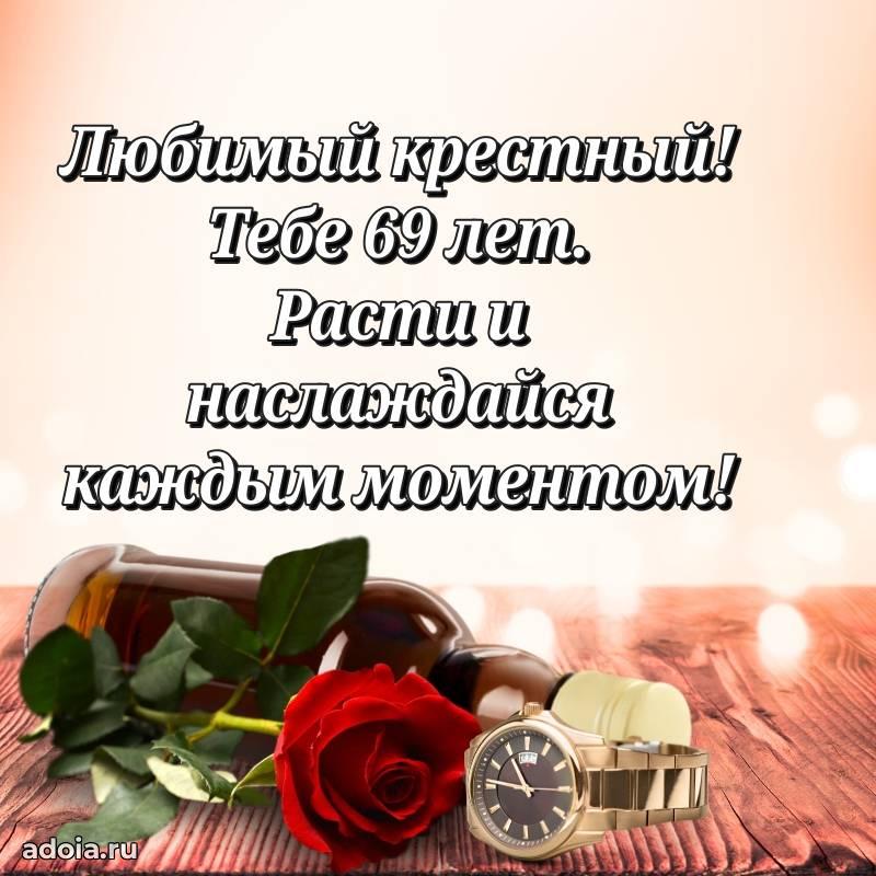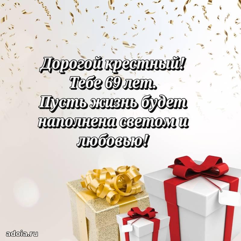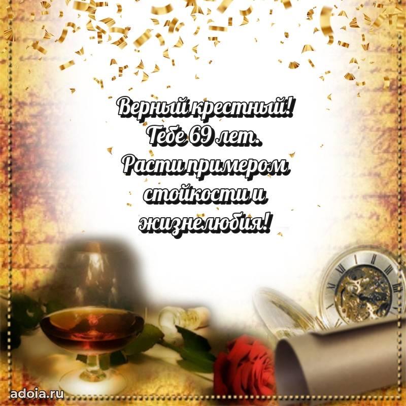 В поисках красивых и современных открыток? Вы попали по адресу! Здесь вы найдете картинки с днем рождения Крестному на 69 лет! Все картинки в высоком качестве, которые можно скачать или отправить через WhatsApp бесплатно. Также вы найдете много прикольных и мерцающих гифок и анимаций, которые поднимут настроение! Все открытки содержат поздравления в стихах и прозе.