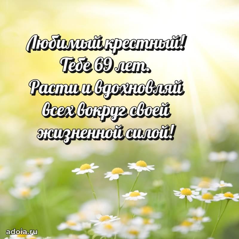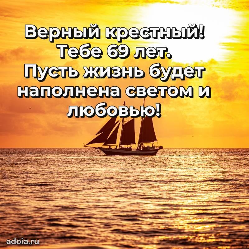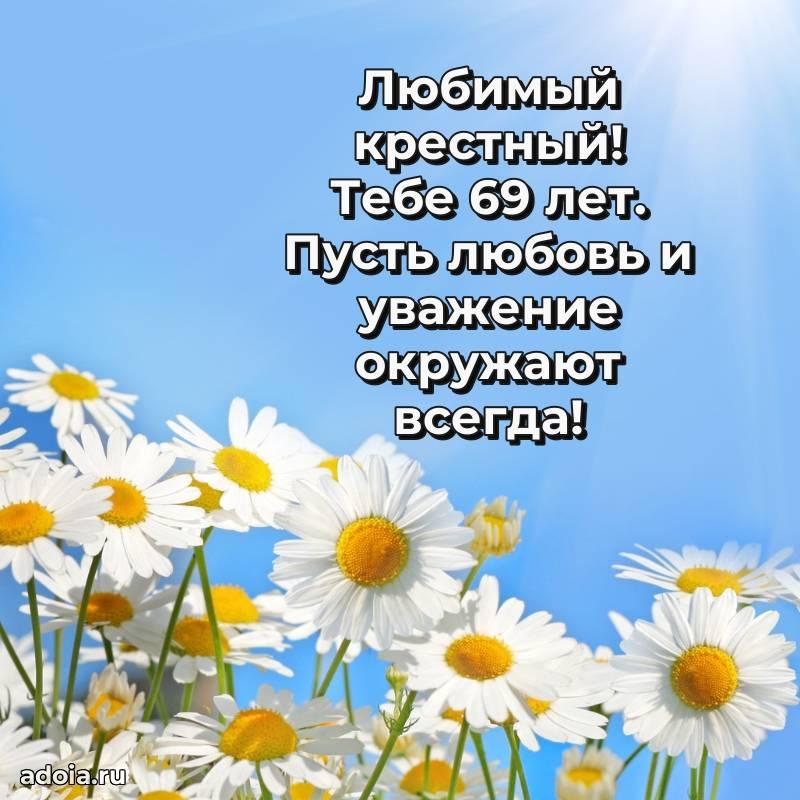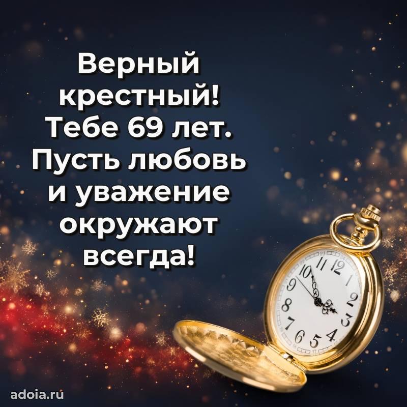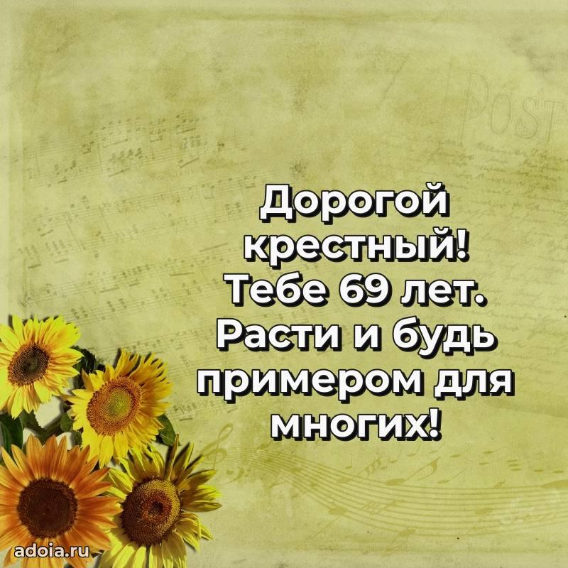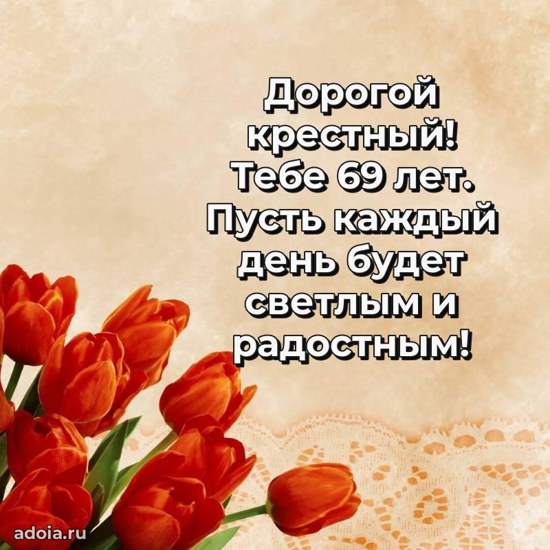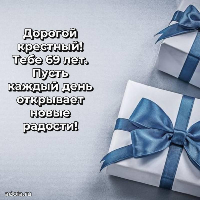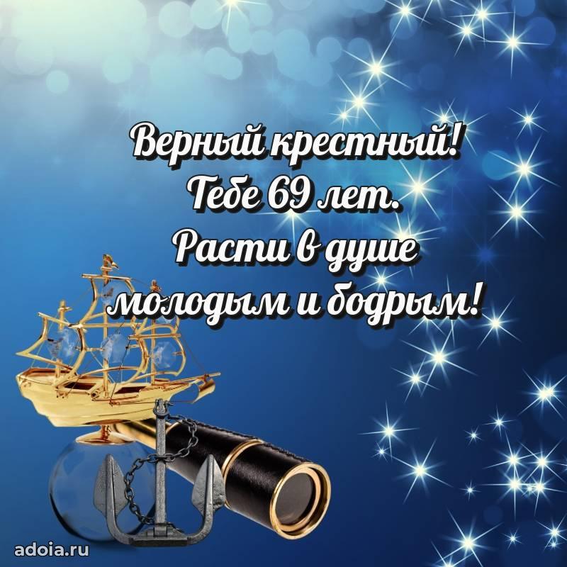 В поисках красивых и современных открыток? Вы попали по адресу! Здесь вы найдете картинки с днем рождения Крестному на 69 лет! Все картинки в высоком качестве, которые можно скачать или отправить через WhatsApp бесплатно. Также вы найдете много прикольных и мерцающих гифок и анимаций, которые поднимут настроение! Все открытки содержат поздравления в стихах и прозе.