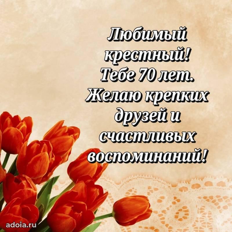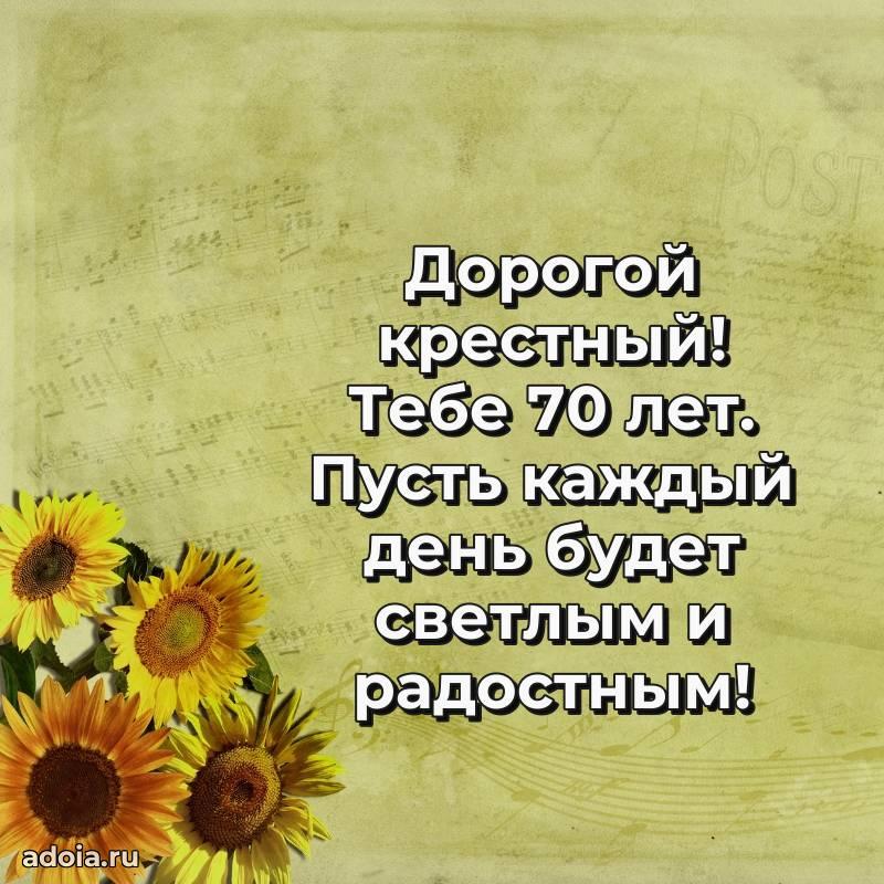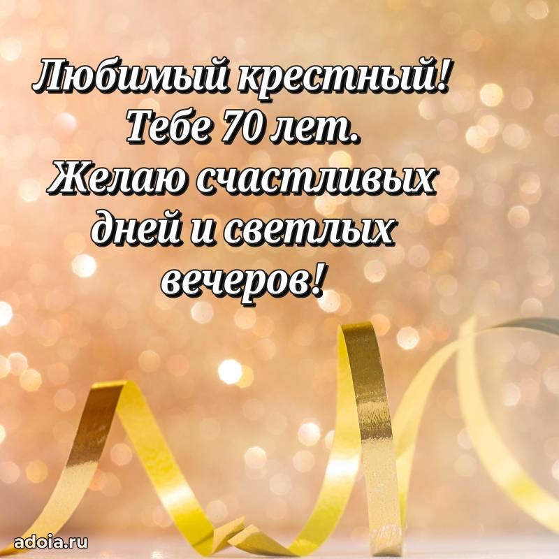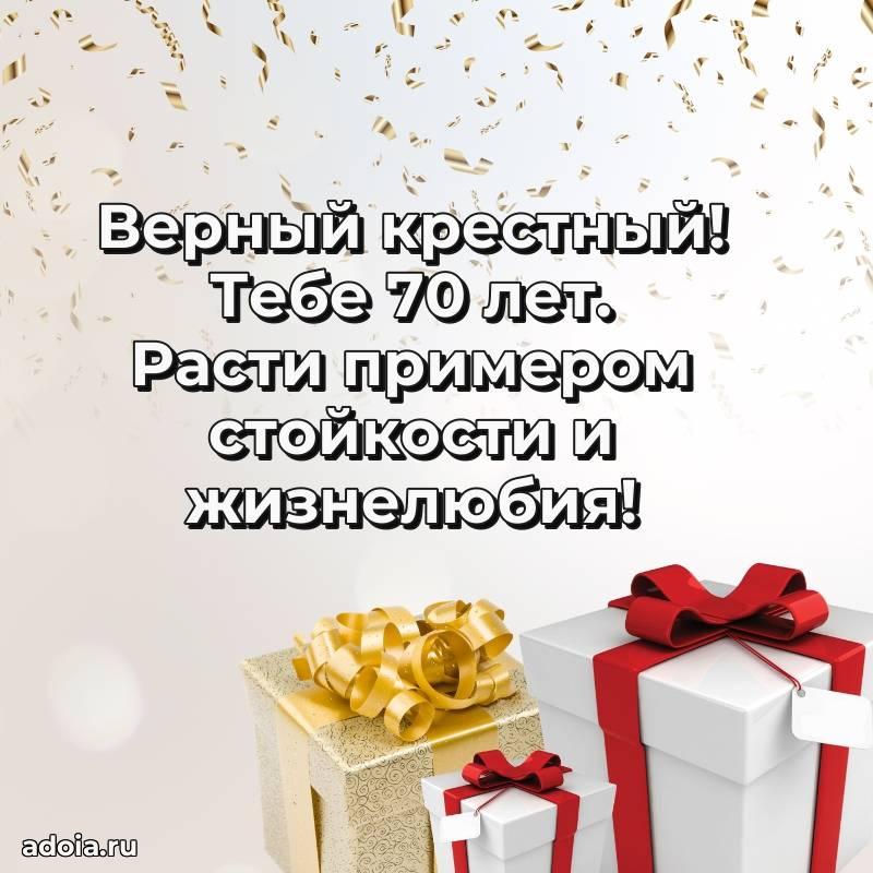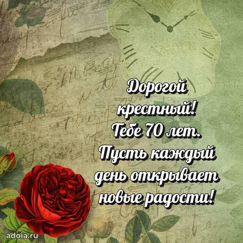 В поисках красивых и современных открыток? Вы попали по адресу! Здесь вы найдете картинки с днем рождения Крестному на 70 лет! Все картинки в высоком качестве, которые можно скачать или отправить через WhatsApp бесплатно. Также вы найдете много прикольных и мерцающих гифок и анимаций, которые поднимут настроение! Все открытки содержат поздравления в стихах и прозе.