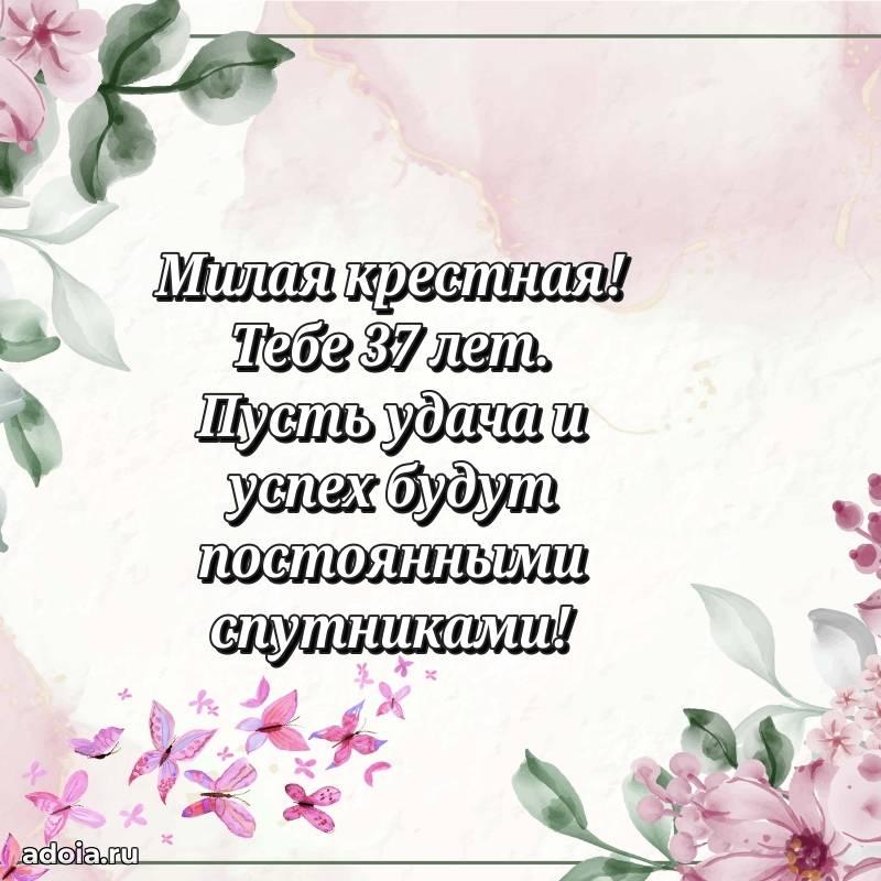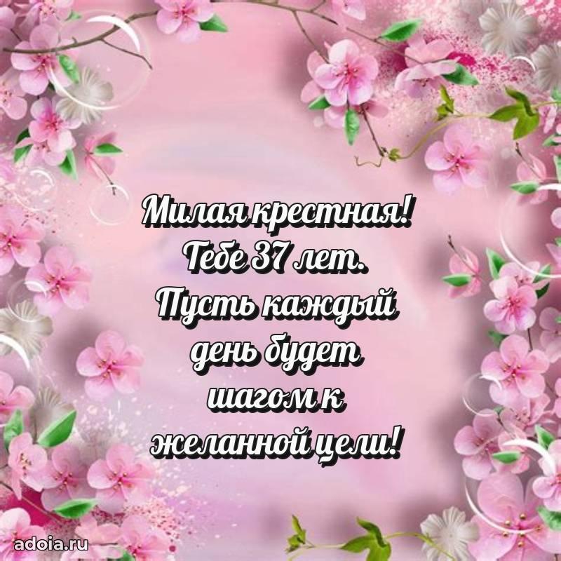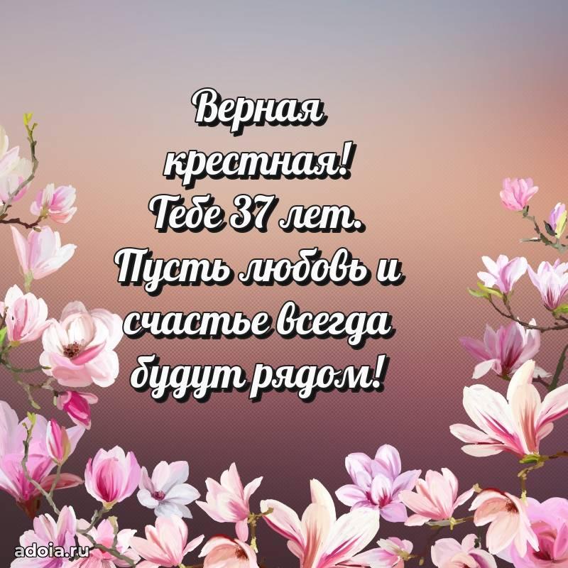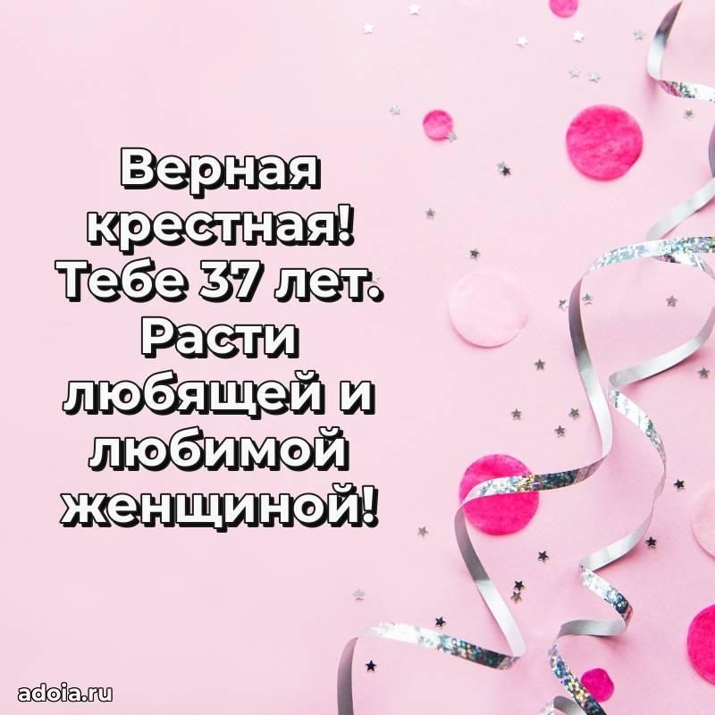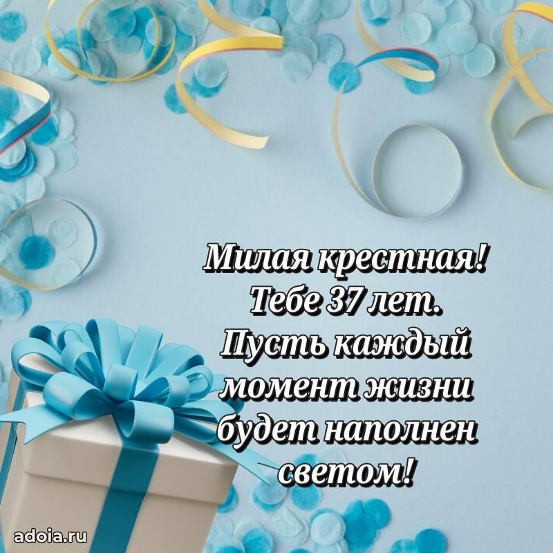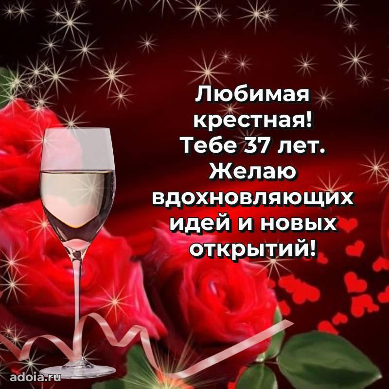 В поисках красивых и современных открыток? Вы попали по адресу! Здесь вы найдете картинки с днем рождения Крестной на 37 лет! Все картинки в высоком качестве, которые можно скачать или отправить через WhatsApp бесплатно. Также вы найдете много прикольных и мерцающих гифок и анимаций, которые поднимут настроение! Все открытки содержат поздравления в стихах и прозе.