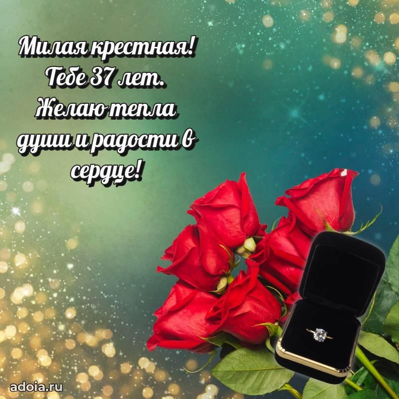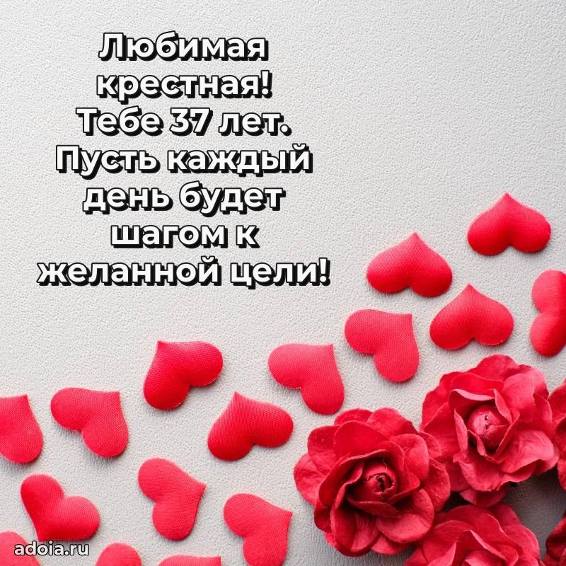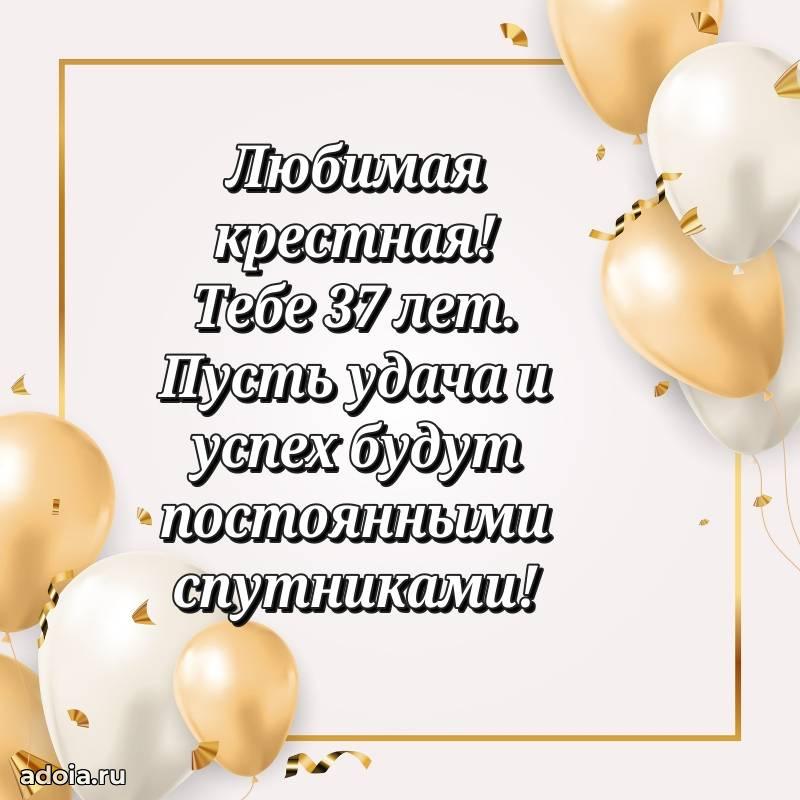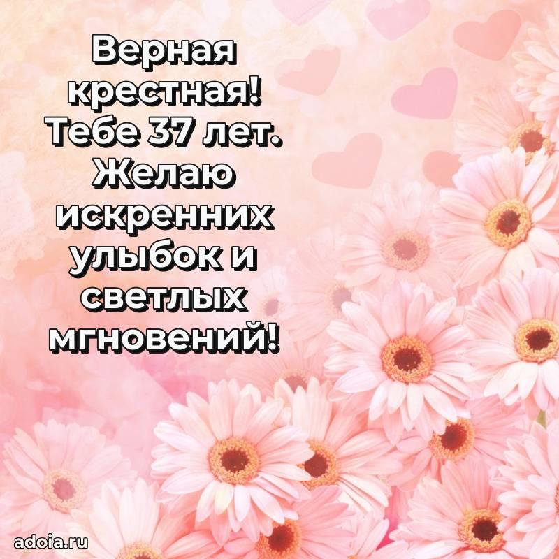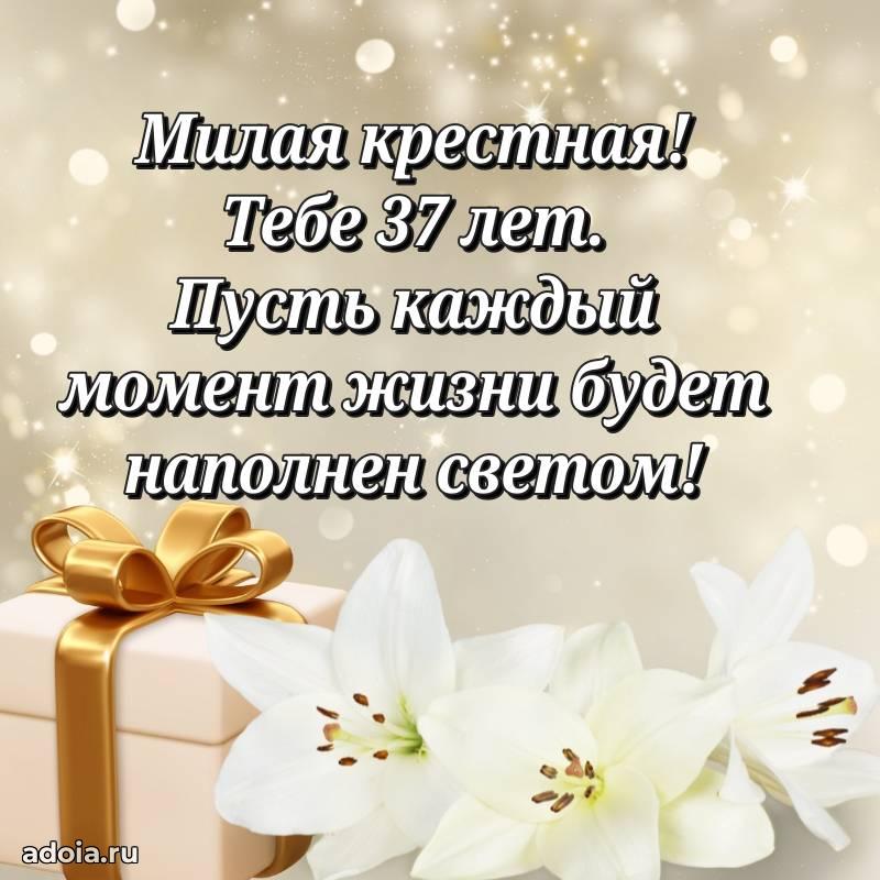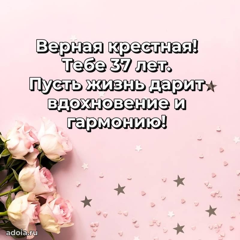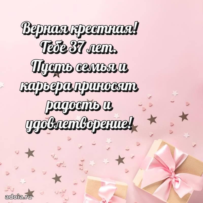 В поисках красивых и современных открыток? Вы попали по адресу! Здесь вы найдете картинки с днем рождения Крестной на 37 лет! Все картинки в высоком качестве, которые можно скачать или отправить через WhatsApp бесплатно. Также вы найдете много прикольных и мерцающих гифок и анимаций, которые поднимут настроение! Все открытки содержат поздравления в стихах и прозе.