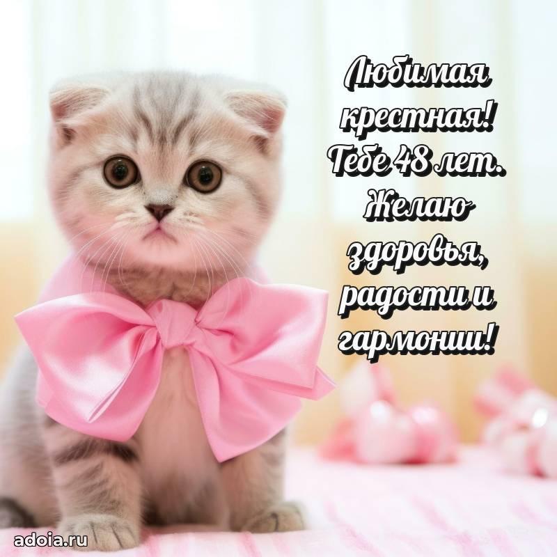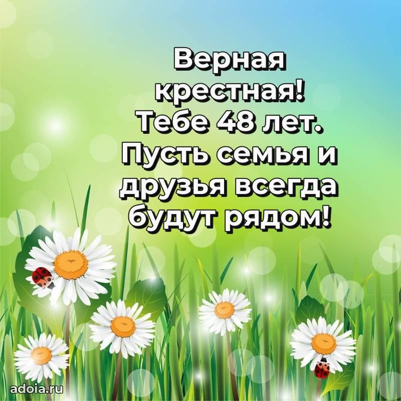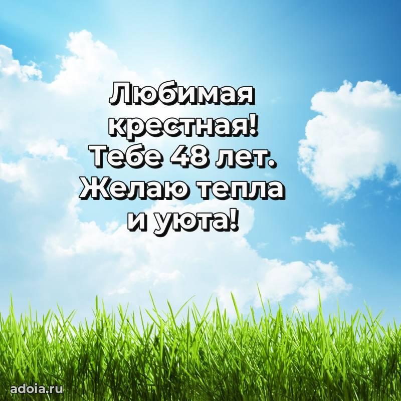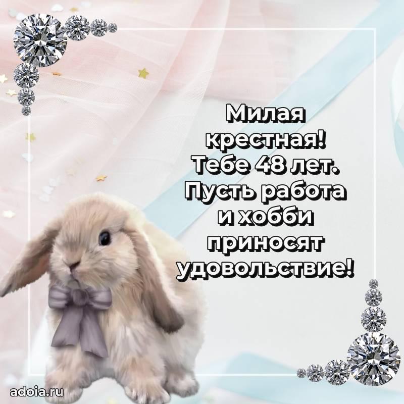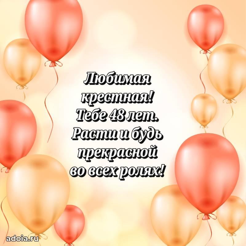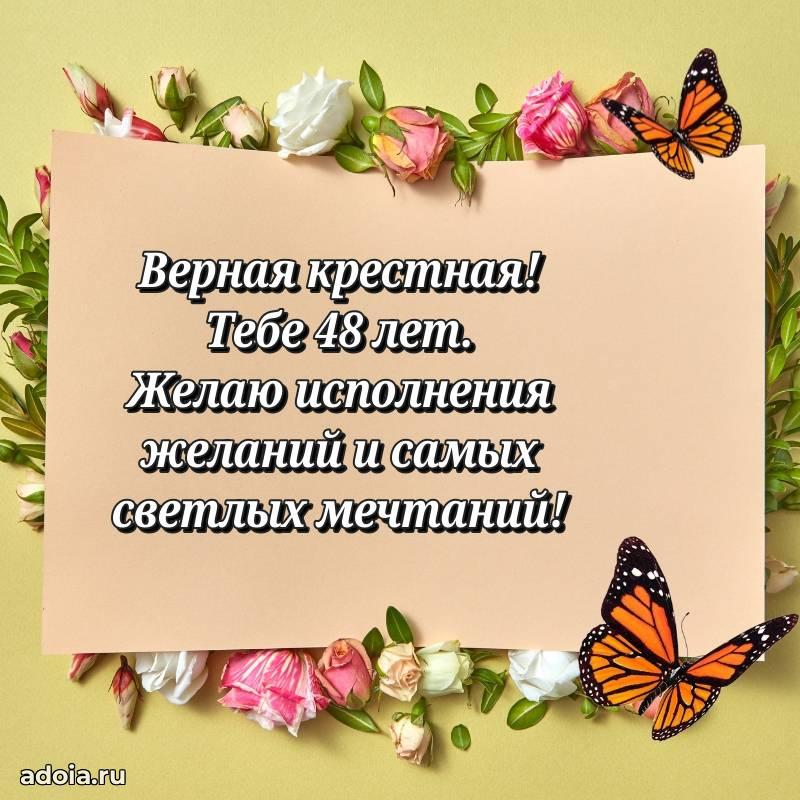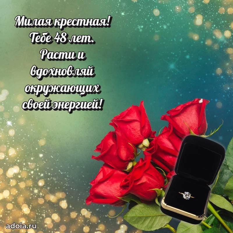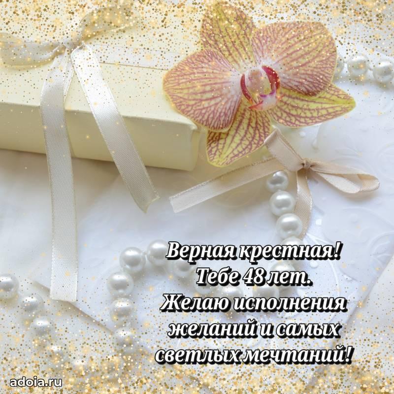 В поисках красивых и современных открыток? Вы попали по адресу! Здесь вы найдете картинки с днем рождения Крестной на 48 лет! Все картинки в высоком качестве, которые можно скачать или отправить через WhatsApp бесплатно. Также вы найдете много прикольных и мерцающих гифок и анимаций, которые поднимут настроение! Все открытки содержат поздравления в стихах и прозе.