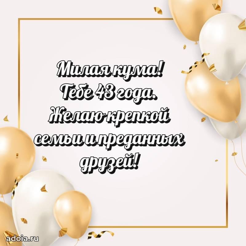 В поисках красивых и современных открыток? Вы попали по адресу! Здесь вы найдете картинки с днем рождения Куме на 43 года! Все картинки в высоком качестве, которые можно скачать или отправить через WhatsApp бесплатно. Также вы найдете много прикольных и мерцающих гифок и анимаций, которые поднимут настроение! Все открытки содержат поздравления в стихах и прозе.