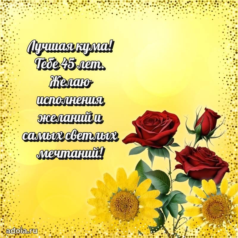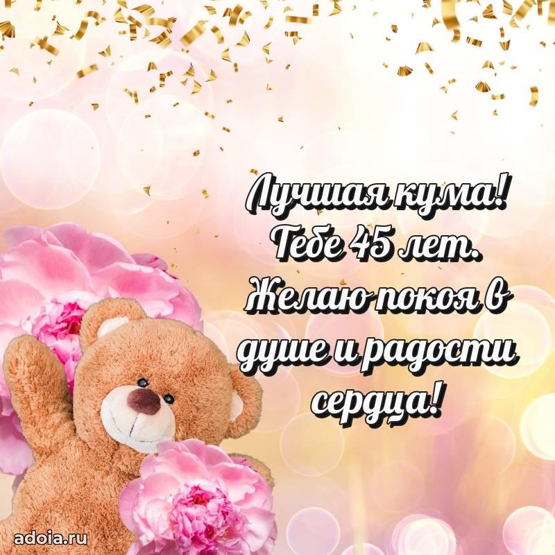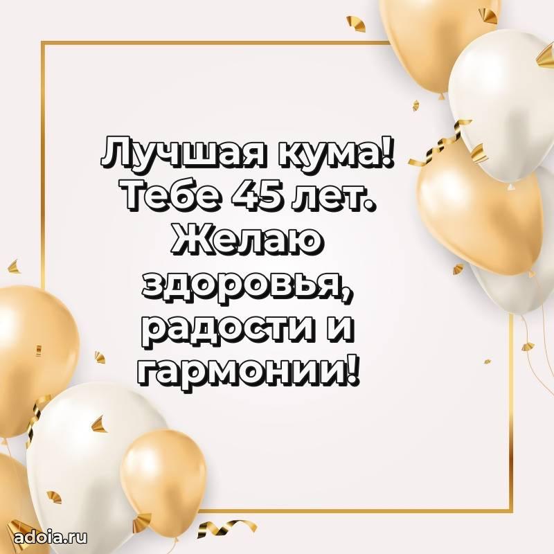 В поисках красивых и современных открыток? Вы попали по адресу! Здесь вы найдете картинки с днем рождения Куме на 45 лет! Все картинки в высоком качестве, которые можно скачать или отправить через WhatsApp бесплатно. Также вы найдете много прикольных и мерцающих гифок и анимаций, которые поднимут настроение! Все открытки содержат поздравления в стихах и прозе.