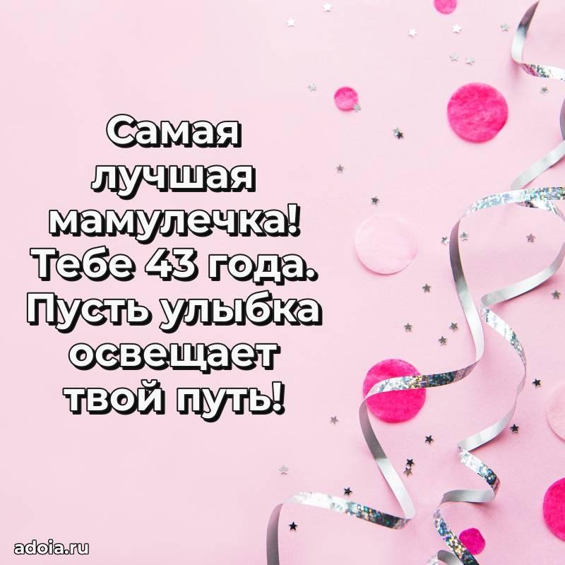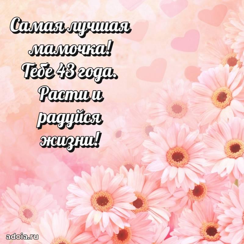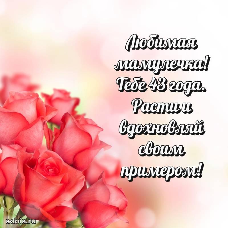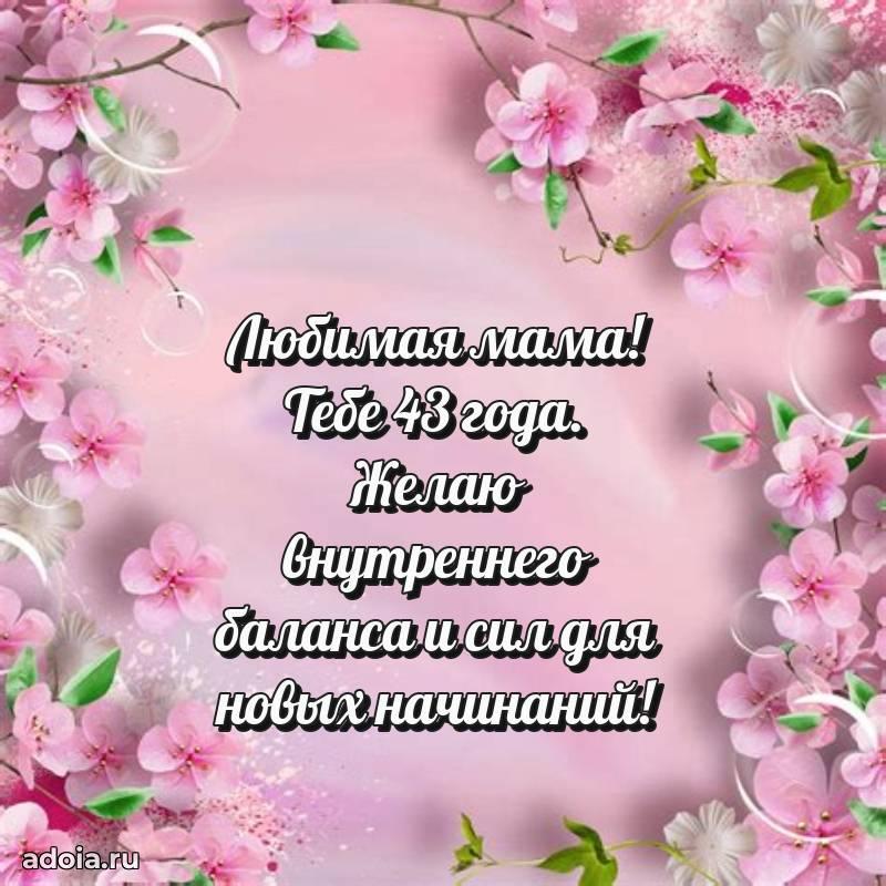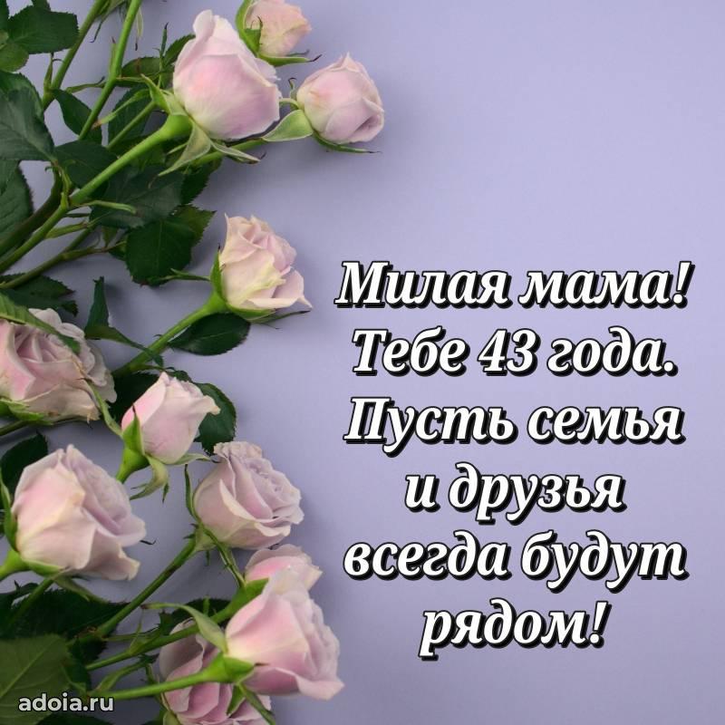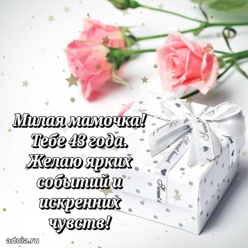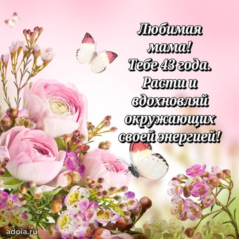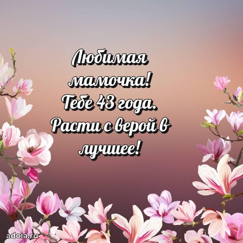 В поисках красивых и современных открыток? Вы попали по адресу! Здесь вы найдете картинки с днем рождения Маме на 43 года! Все картинки в высоком качестве, которые можно скачать или отправить через WhatsApp бесплатно. Также вы найдете много прикольных и мерцающих гифок и анимаций, которые поднимут настроение! Все открытки содержат поздравления в стихах и прозе.