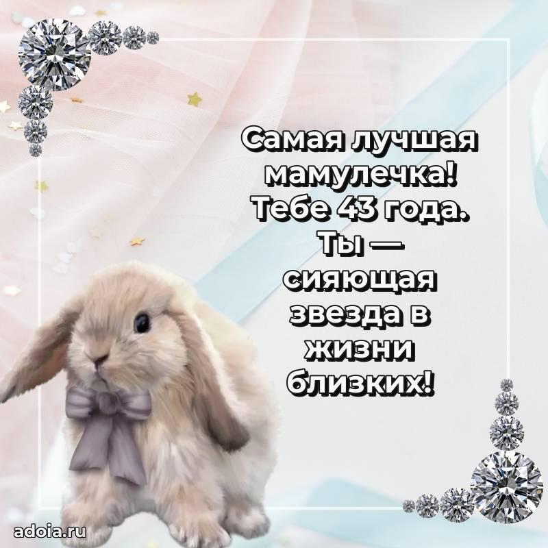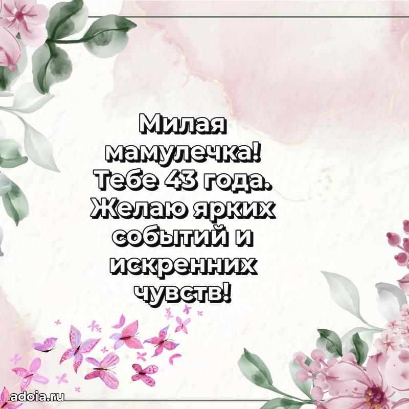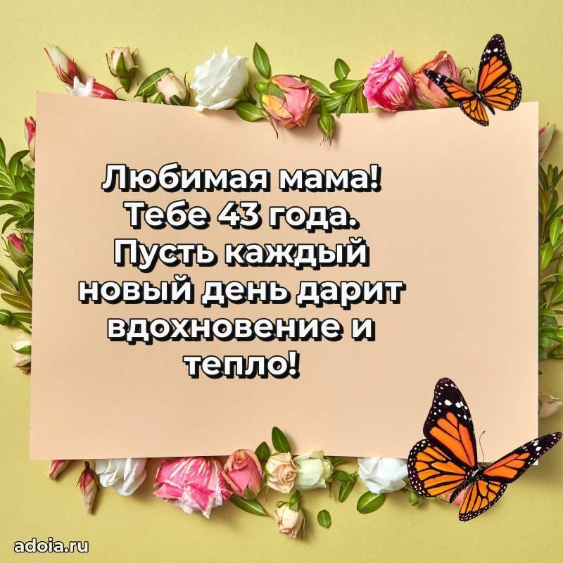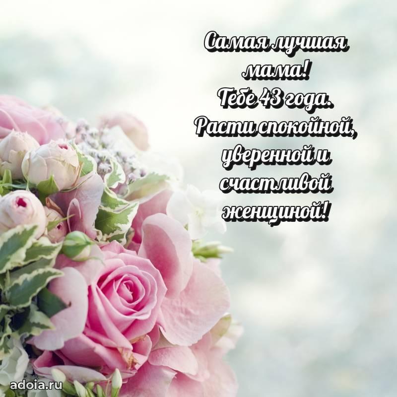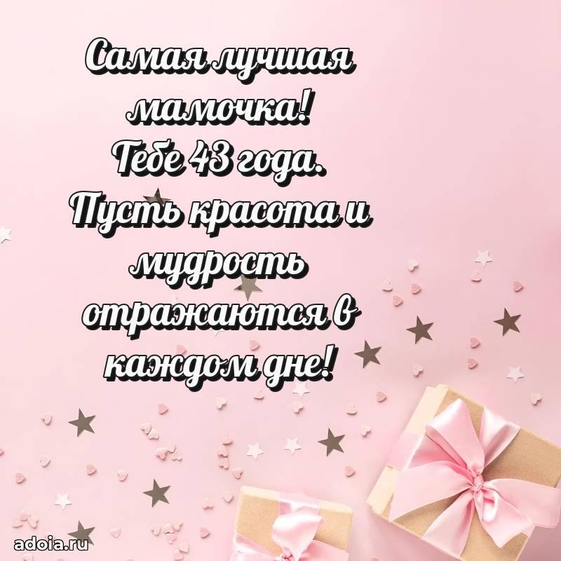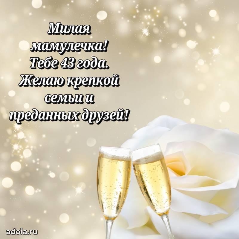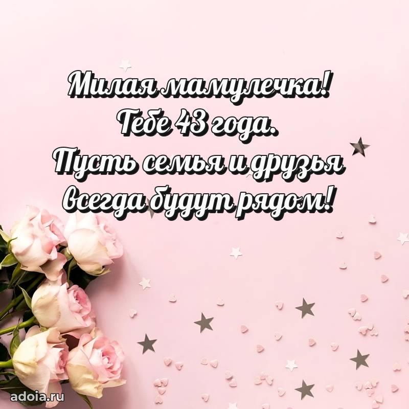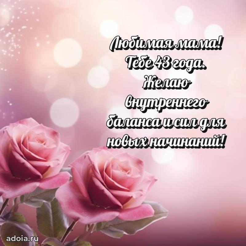 В поисках красивых и современных открыток? Вы попали по адресу! Здесь вы найдете картинки с днем рождения Маме на 43 года! Все картинки в высоком качестве, которые можно скачать или отправить через WhatsApp бесплатно. Также вы найдете много прикольных и мерцающих гифок и анимаций, которые поднимут настроение! Все открытки содержат поздравления в стихах и прозе.