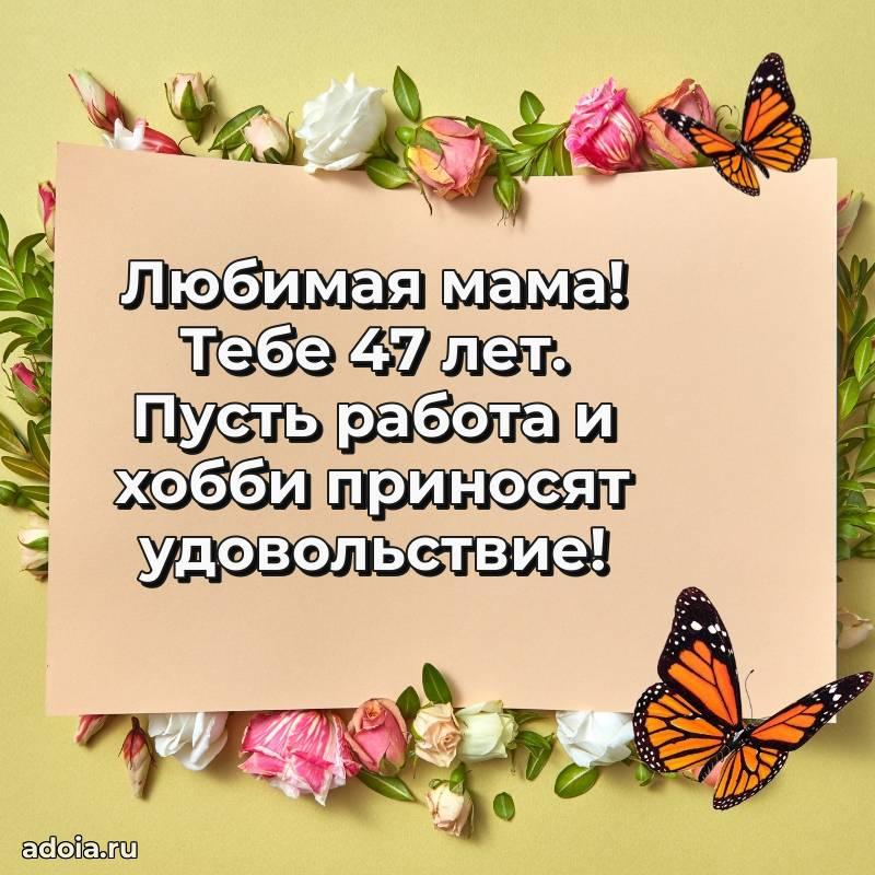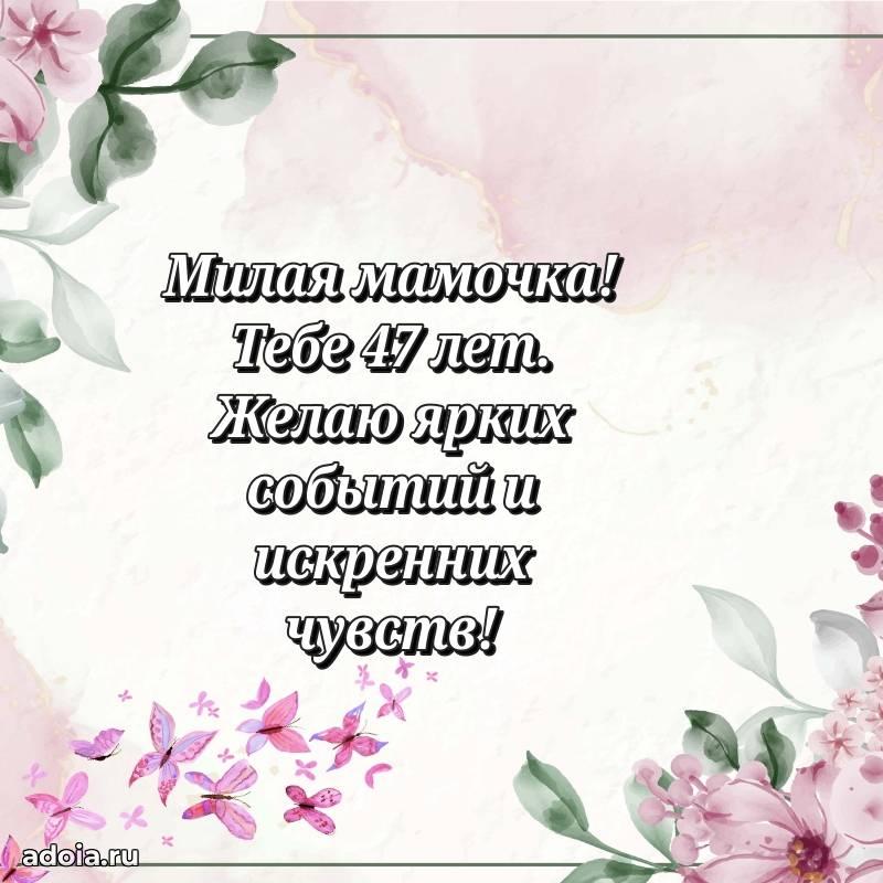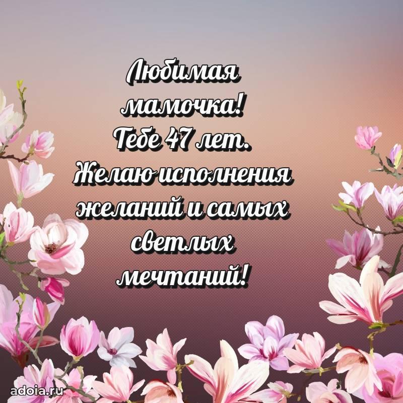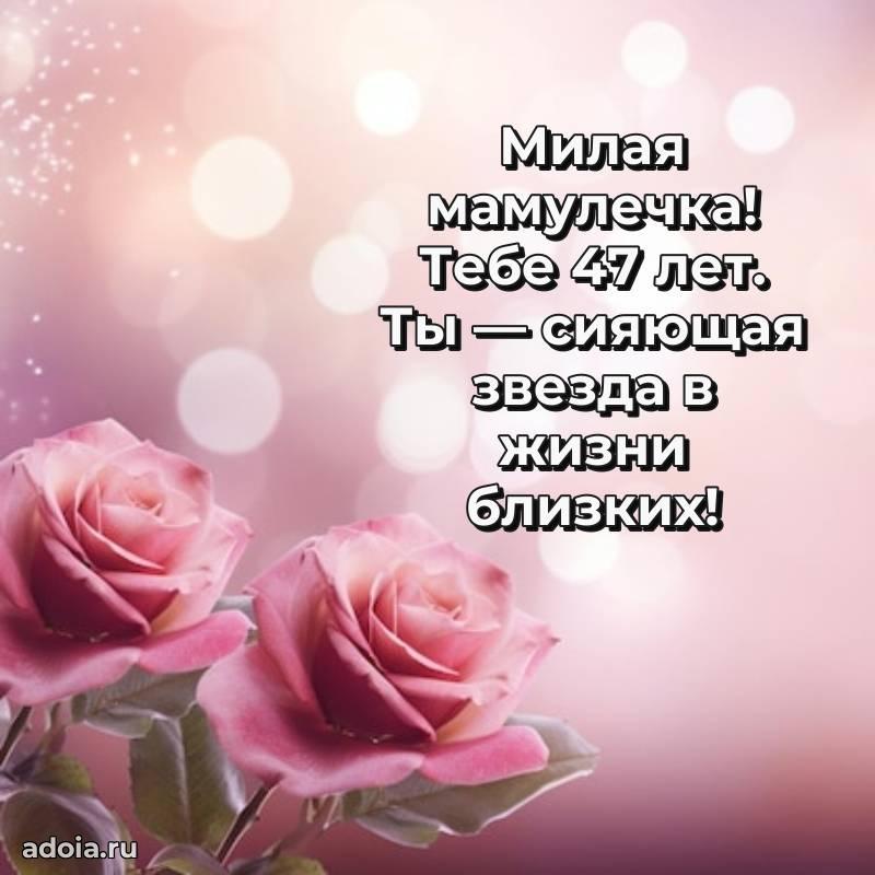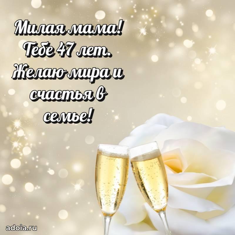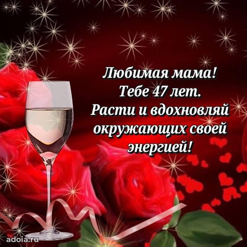 В поисках красивых и современных открыток? Вы попали по адресу! Здесь вы найдете картинки с днем рождения Маме на 47 лет! Все картинки в высоком качестве, которые можно скачать или отправить через WhatsApp бесплатно. Также вы найдете много прикольных и мерцающих гифок и анимаций, которые поднимут настроение! Все открытки содержат поздравления в стихах и прозе.