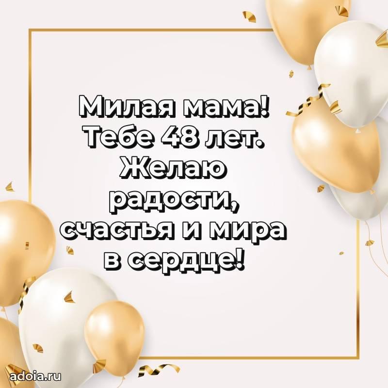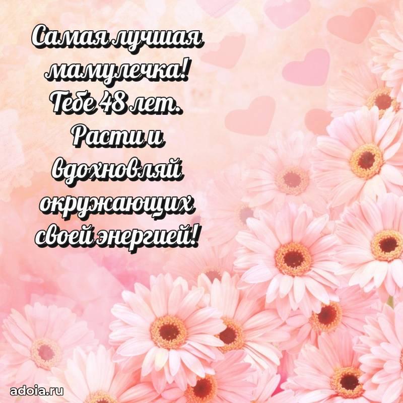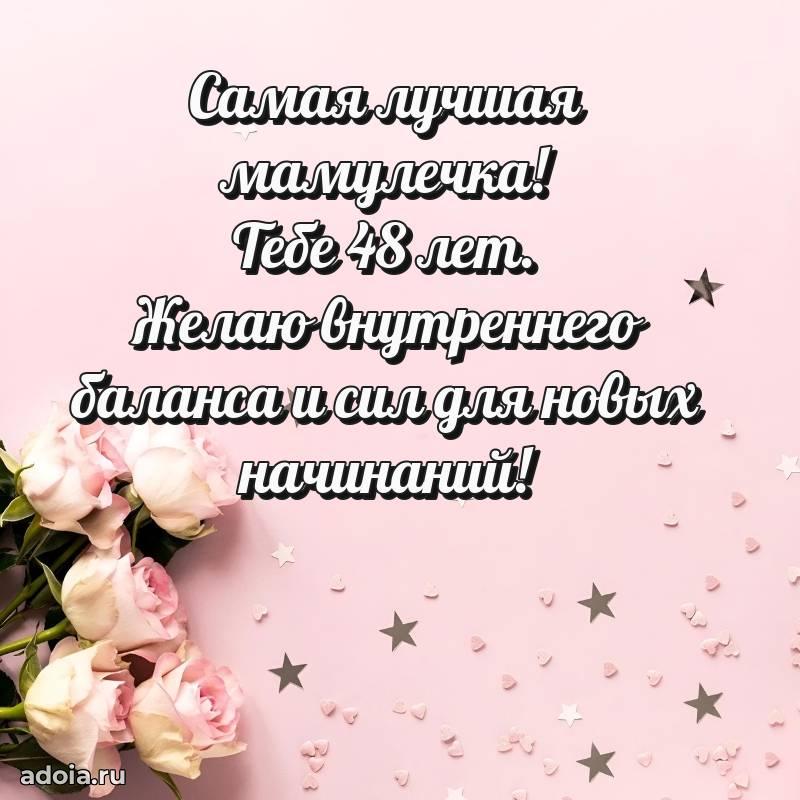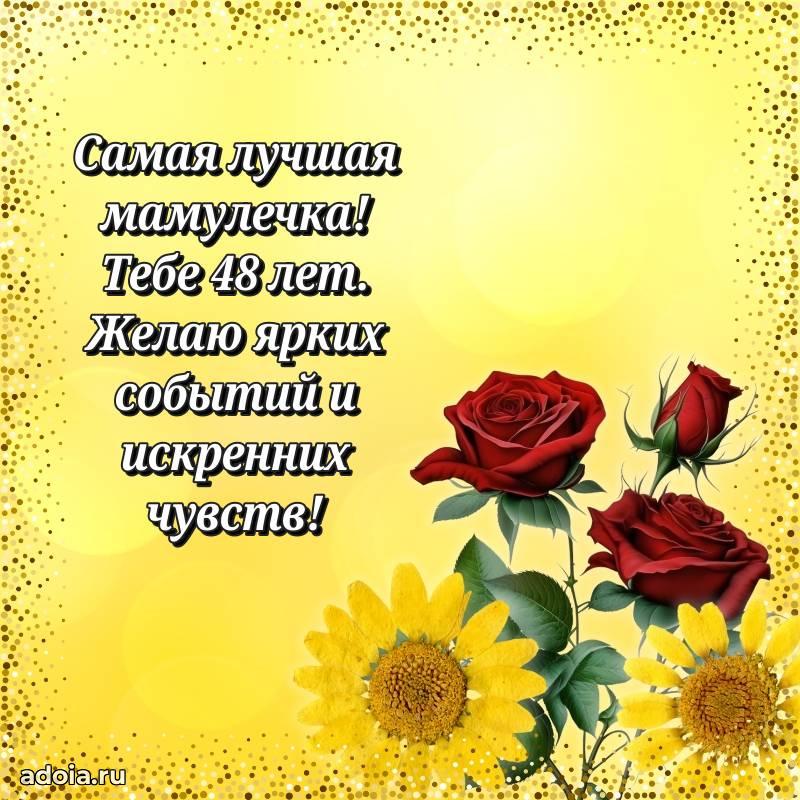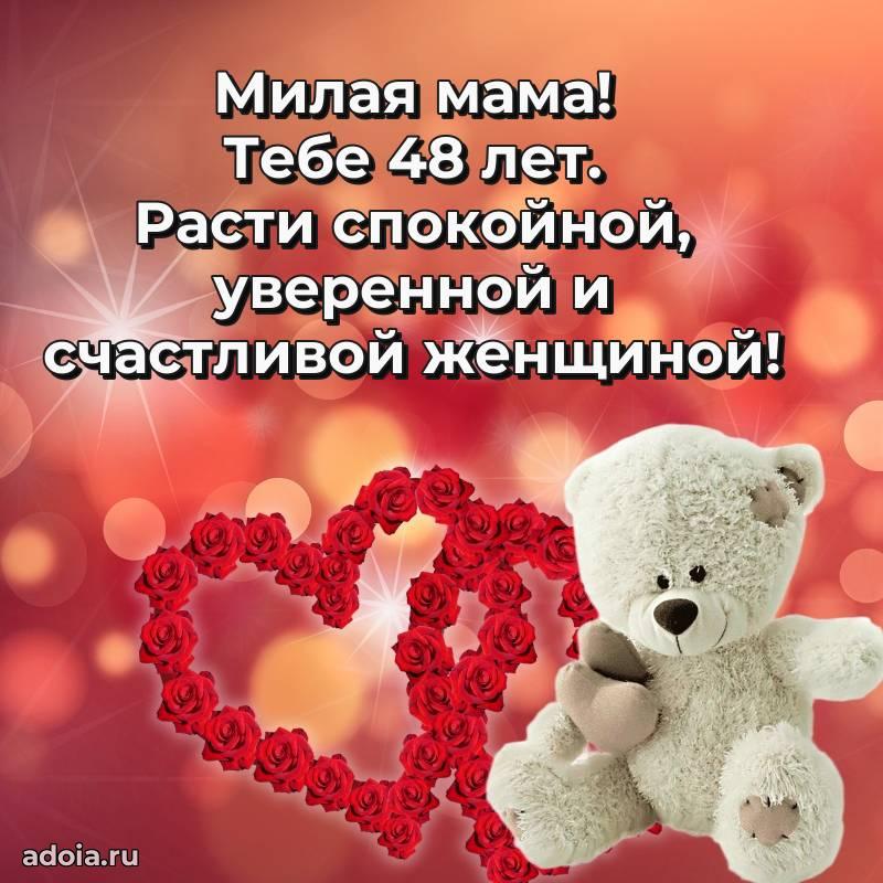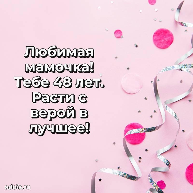 В поисках красивых и современных открыток? Вы попали по адресу! Здесь вы найдете картинки с днем рождения Маме на 48 лет! Все картинки в высоком качестве, которые можно скачать или отправить через WhatsApp бесплатно. Также вы найдете много прикольных и мерцающих гифок и анимаций, которые поднимут настроение! Все открытки содержат поздравления в стихах и прозе.