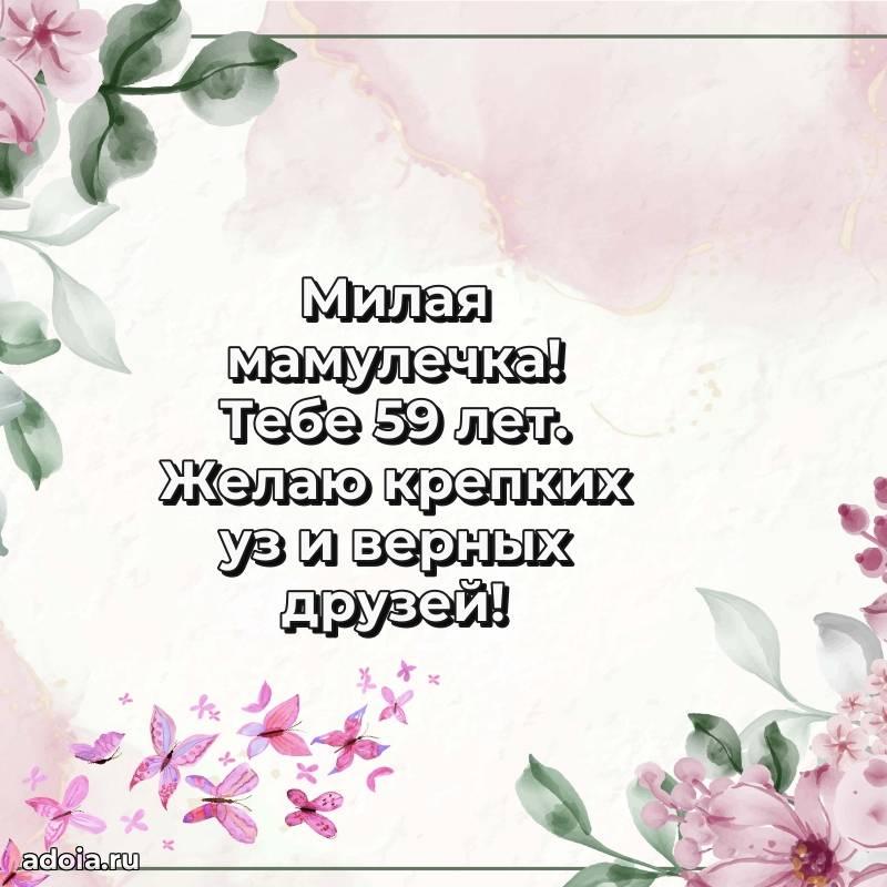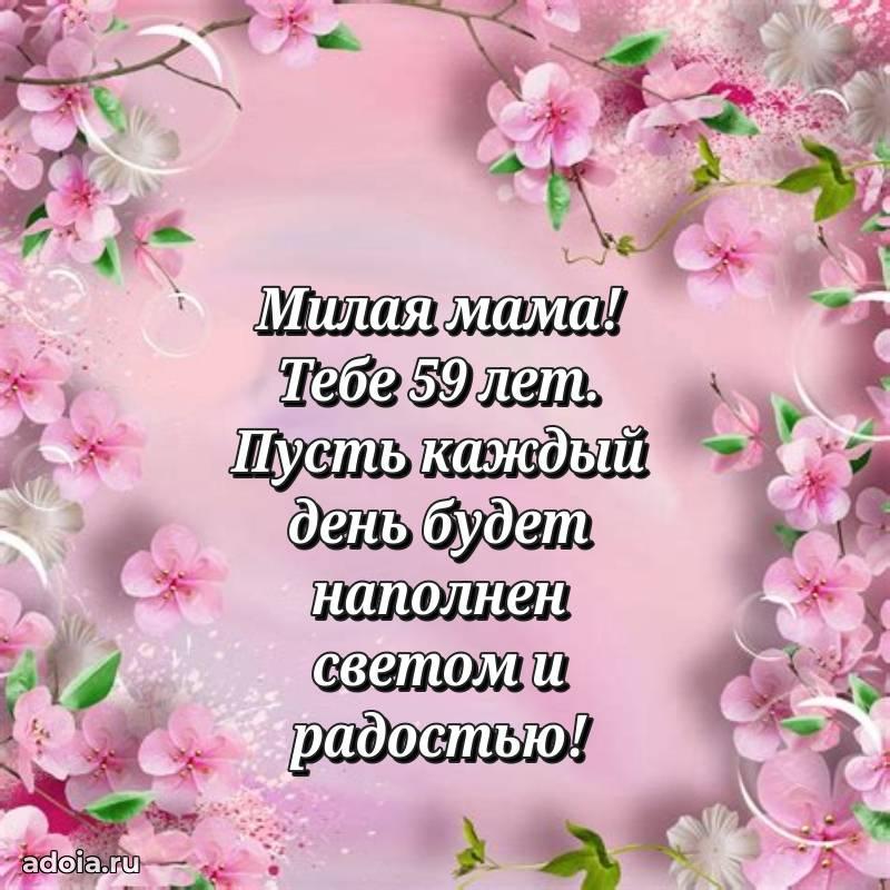 В поисках красивых и современных открыток? Вы попали по адресу! Здесь вы найдете картинки с днем рождения Маме на 59 лет! Все картинки в высоком качестве, которые можно скачать или отправить через WhatsApp бесплатно. Также вы найдете много прикольных и мерцающих гифок и анимаций, которые поднимут настроение! Все открытки содержат поздравления в стихах и прозе.