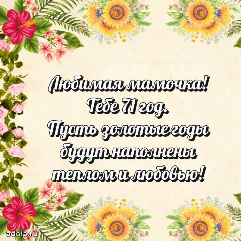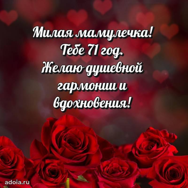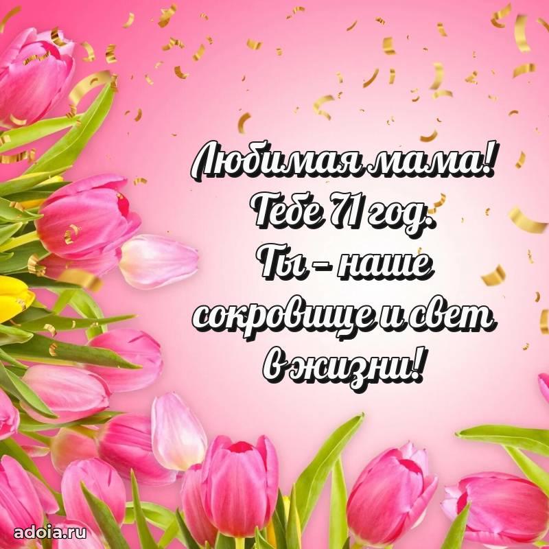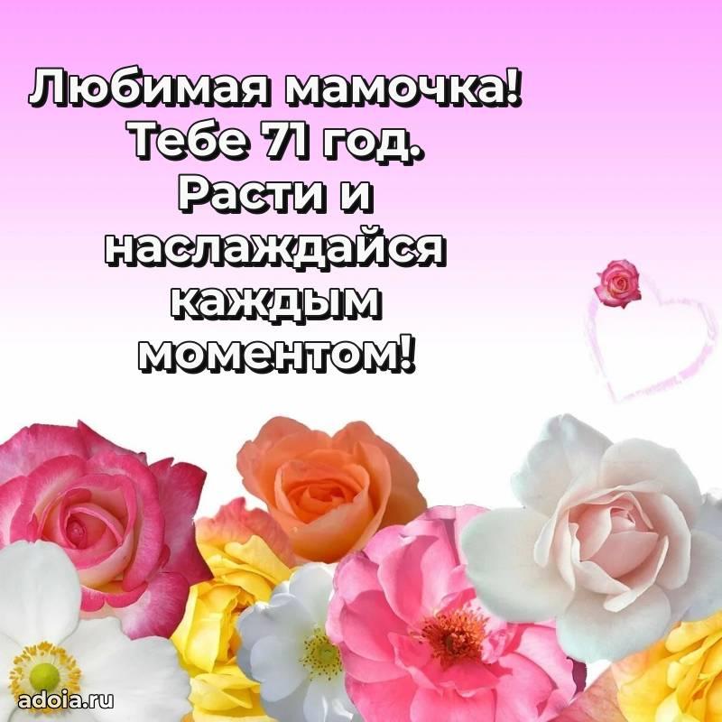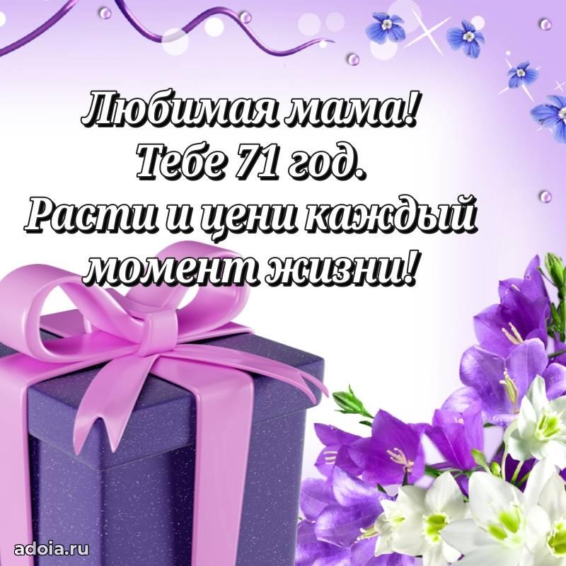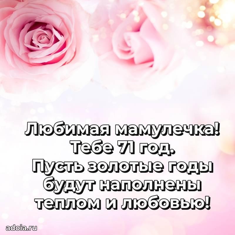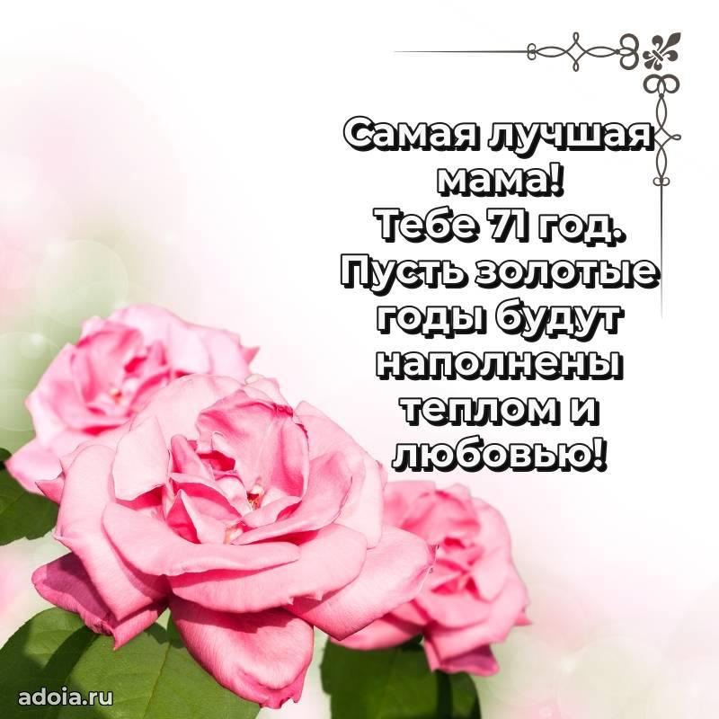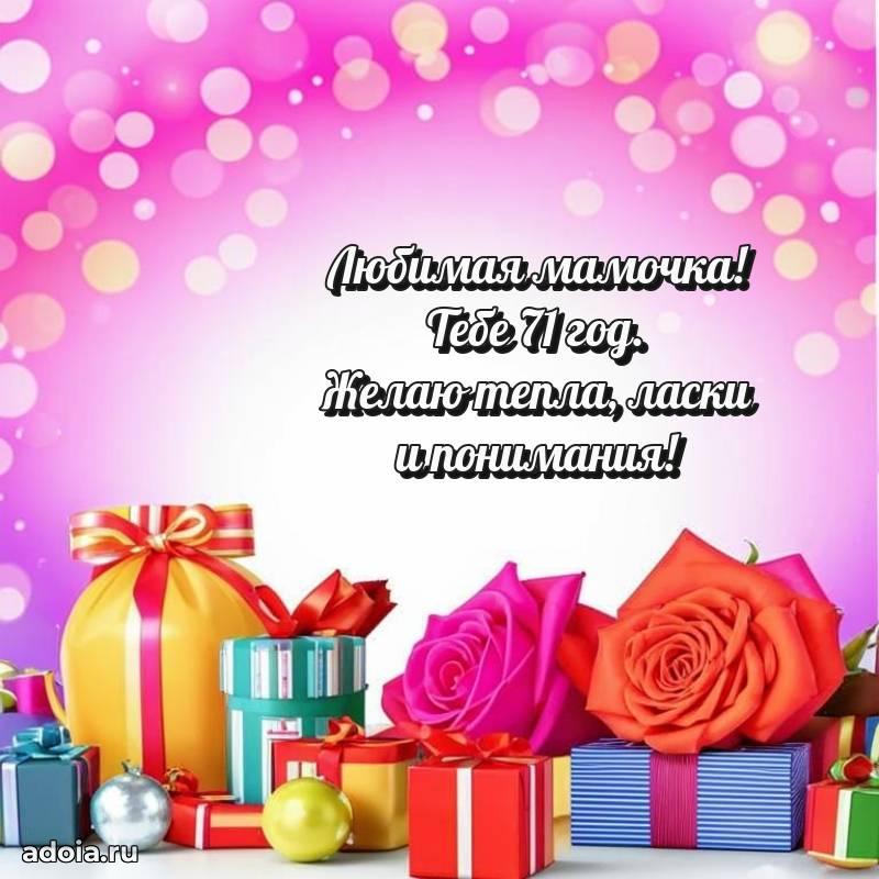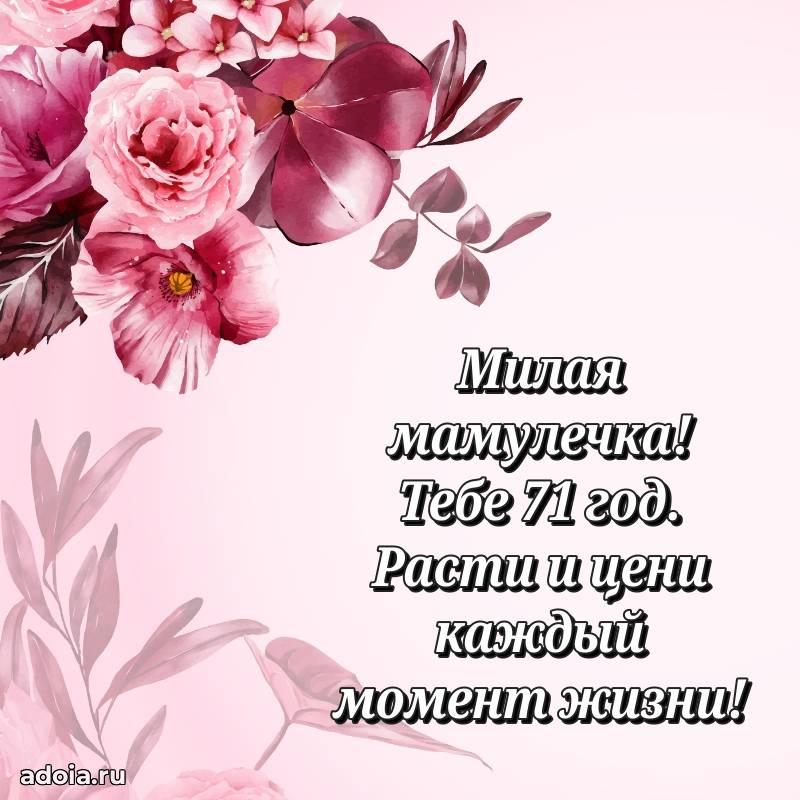 В поисках красивых и современных открыток? Вы попали по адресу! Здесь вы найдете картинки с днем рождения Маме на 71 год! Все картинки в высоком качестве, которые можно скачать или отправить через WhatsApp бесплатно. Также вы найдете много прикольных и мерцающих гифок и анимаций, которые поднимут настроение! Все открытки содержат поздравления в стихах и прозе.
