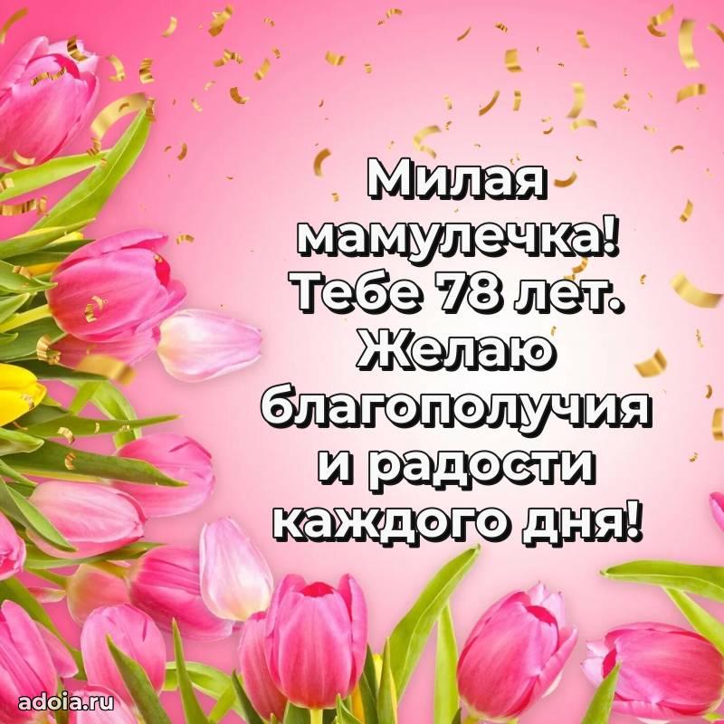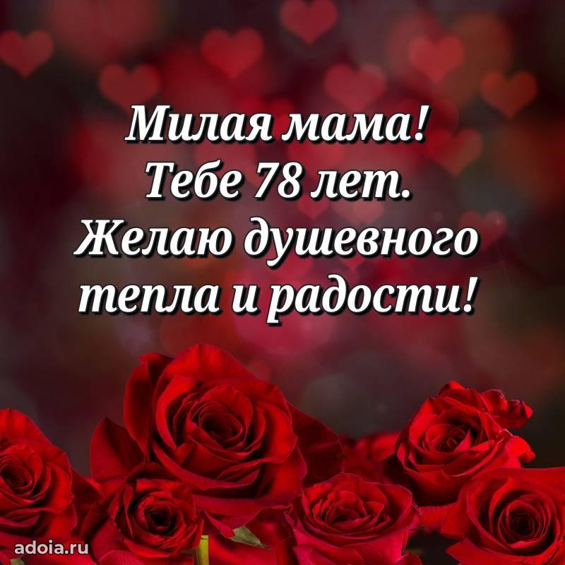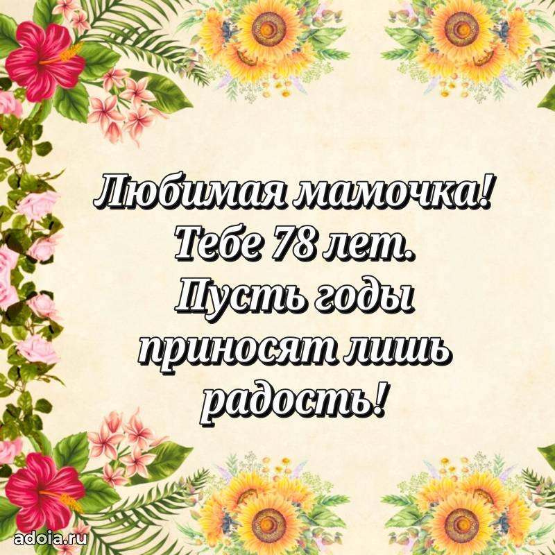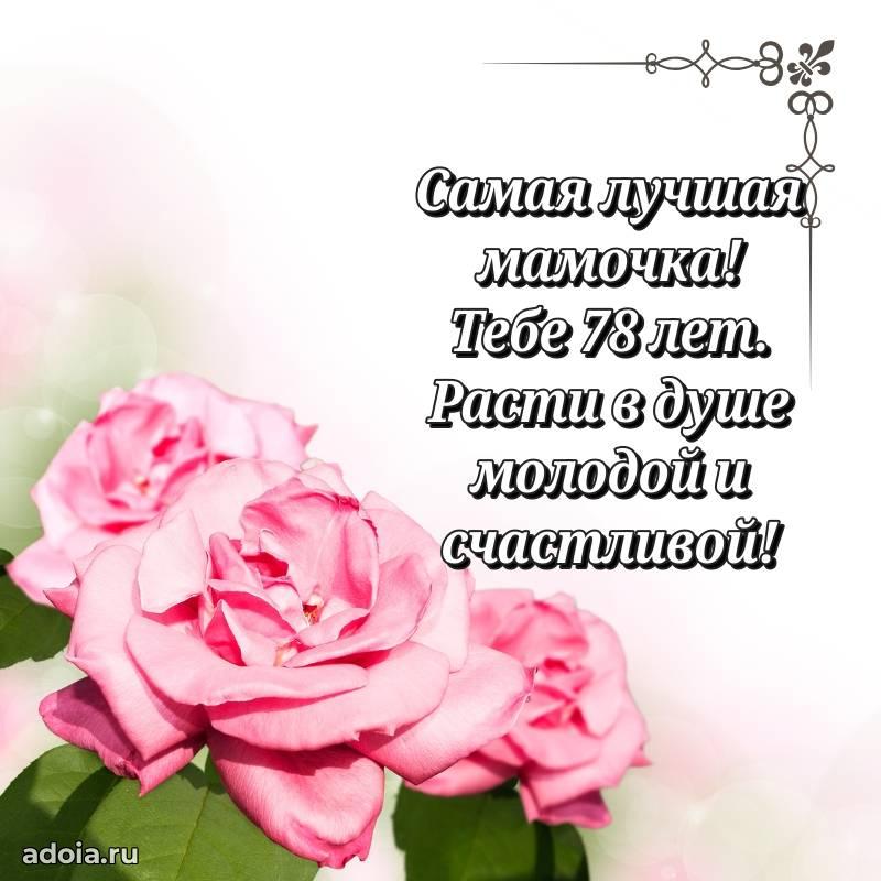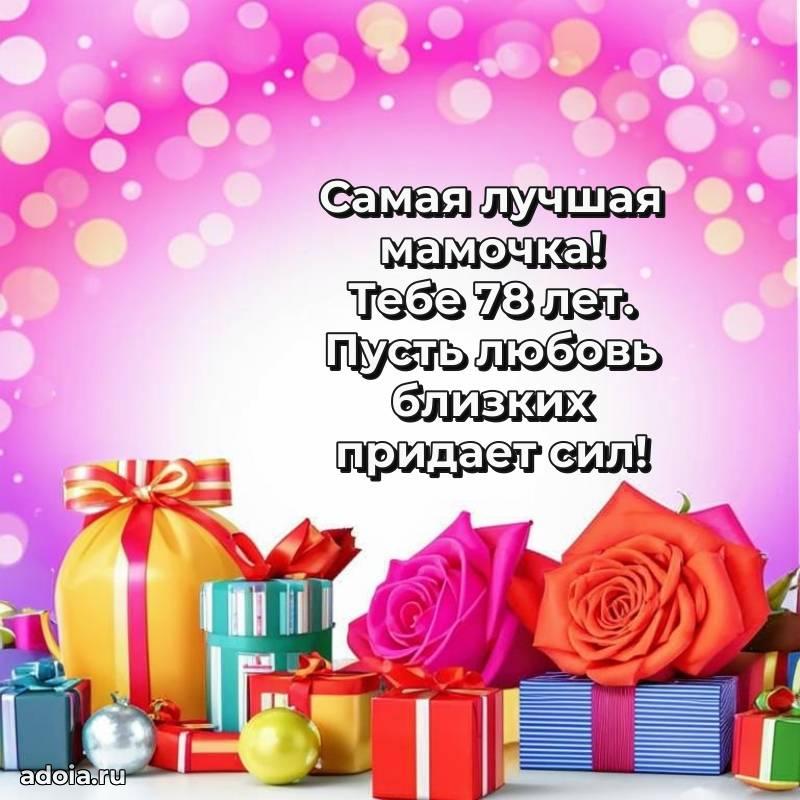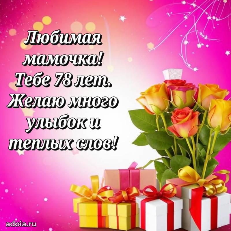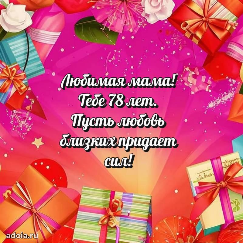 В поисках красивых и современных открыток? Вы попали по адресу! Здесь вы найдете картинки с днем рождения Маме на 78 лет! Все картинки в высоком качестве, которые можно скачать или отправить через WhatsApp бесплатно. Также вы найдете много прикольных и мерцающих гифок и анимаций, которые поднимут настроение! Все открытки содержат поздравления в стихах и прозе.