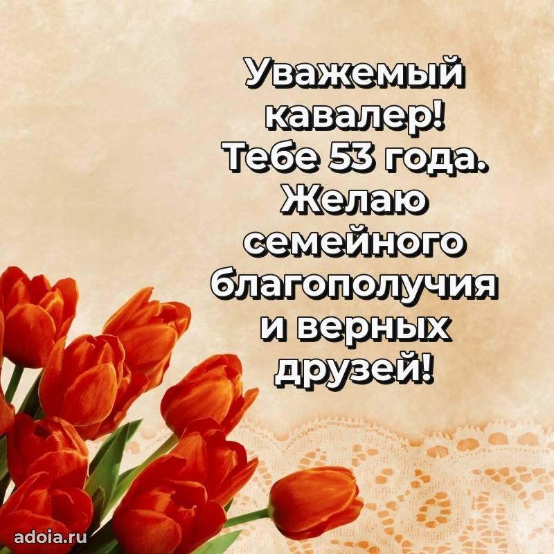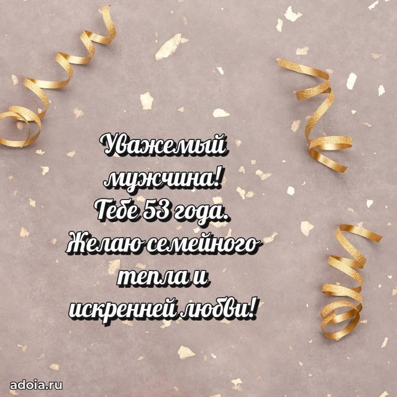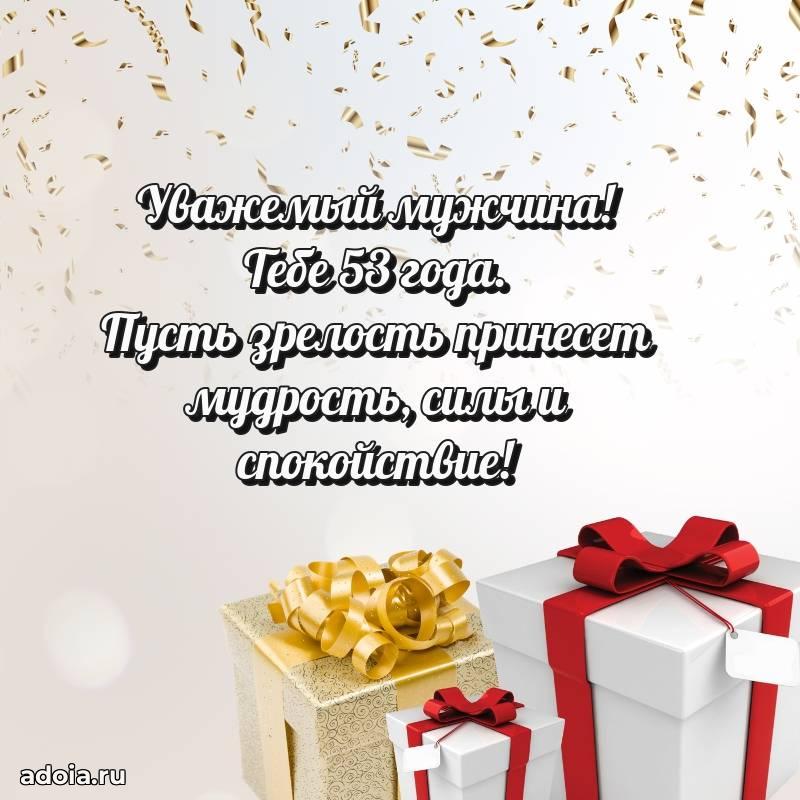 В поисках красивых и современных открыток? Вы попали по адресу! Здесь вы найдете картинки с днем рождения Мужчине на 53 года! Все картинки в высоком качестве, которые можно скачать или отправить через WhatsApp бесплатно. Также вы найдете много прикольных и мерцающих гифок и анимаций, которые поднимут настроение! Все открытки содержат поздравления в стихах и прозе.