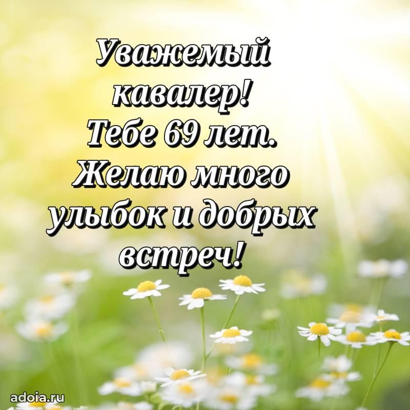 В поисках красивых и современных открыток? Вы попали по адресу! Здесь вы найдете картинки с днем рождения Мужчине на 69 лет! Все картинки в высоком качестве, которые можно скачать или отправить через WhatsApp бесплатно. Также вы найдете много прикольных и мерцающих гифок и анимаций, которые поднимут настроение! Все открытки содержат поздравления в стихах и прозе.