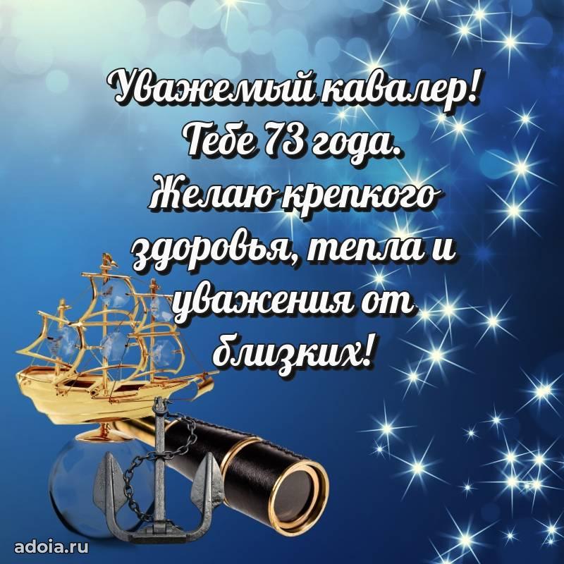 В поисках красивых и современных открыток? Вы попали по адресу! Здесь вы найдете картинки с днем рождения Мужчине на 73 года! Все картинки в высоком качестве, которые можно скачать или отправить через WhatsApp бесплатно. Также вы найдете много прикольных и мерцающих гифок и анимаций, которые поднимут настроение! Все открытки содержат поздравления в стихах и прозе.