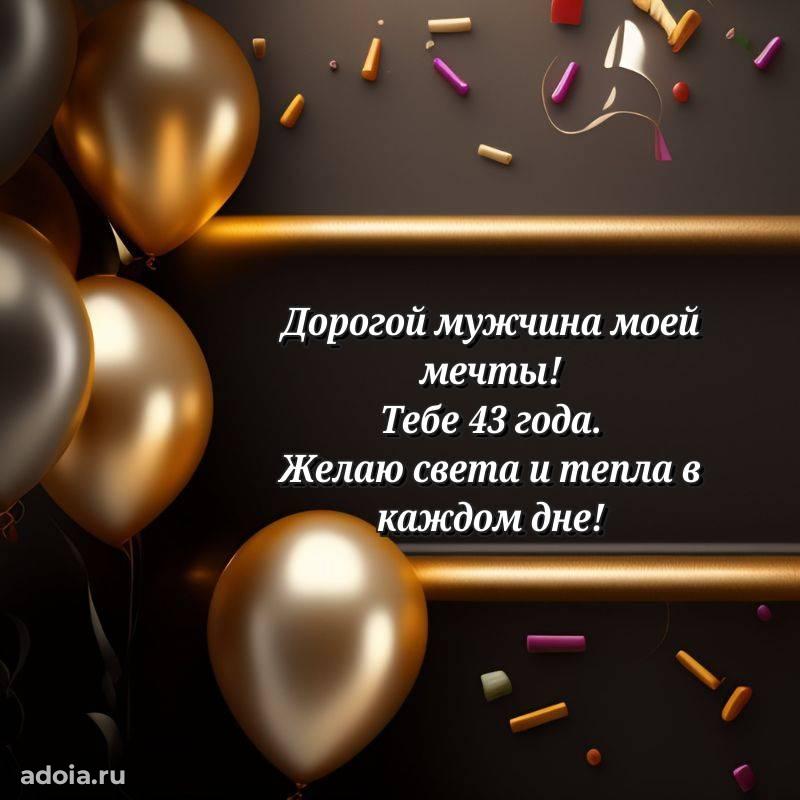 В поисках красивых и современных открыток? Вы попали по адресу! Здесь вы найдете картинки с днем рождения Мужу на 43 года! Все картинки в высоком качестве, которые можно скачать или отправить через WhatsApp бесплатно. Также вы найдете много прикольных и мерцающих гифок и анимаций, которые поднимут настроение! Все открытки содержат поздравления в стихах и прозе.