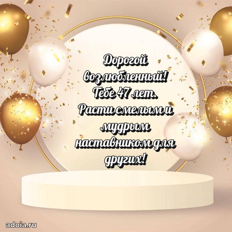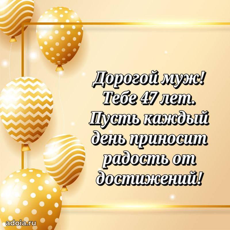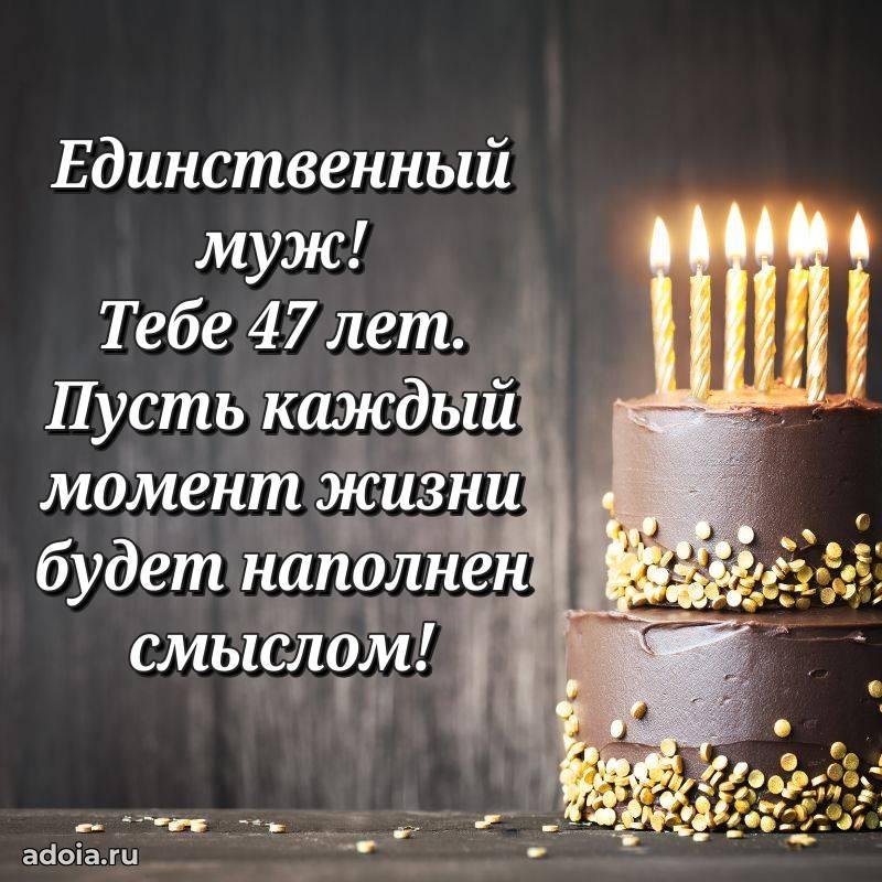 В поисках красивых и современных открыток? Вы попали по адресу! Здесь вы найдете картинки с днем рождения Мужу на 47 лет! Все картинки в высоком качестве, которые можно скачать или отправить через WhatsApp бесплатно. Также вы найдете много прикольных и мерцающих гифок и анимаций, которые поднимут настроение! Все открытки содержат поздравления в стихах и прозе.