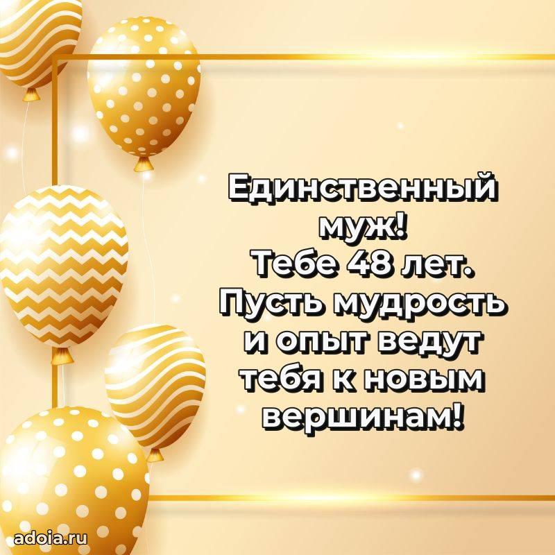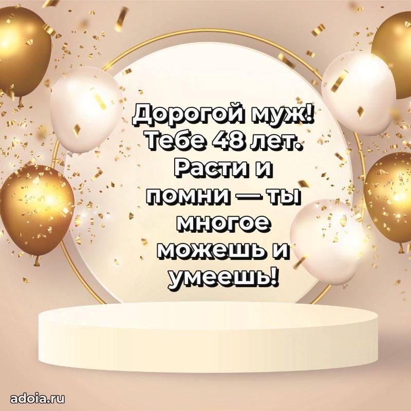 В поисках красивых и современных открыток? Вы попали по адресу! Здесь вы найдете картинки с днем рождения Мужу на 48 лет! Все картинки в высоком качестве, которые можно скачать или отправить через WhatsApp бесплатно. Также вы найдете много прикольных и мерцающих гифок и анимаций, которые поднимут настроение! Все открытки содержат поздравления в стихах и прозе.