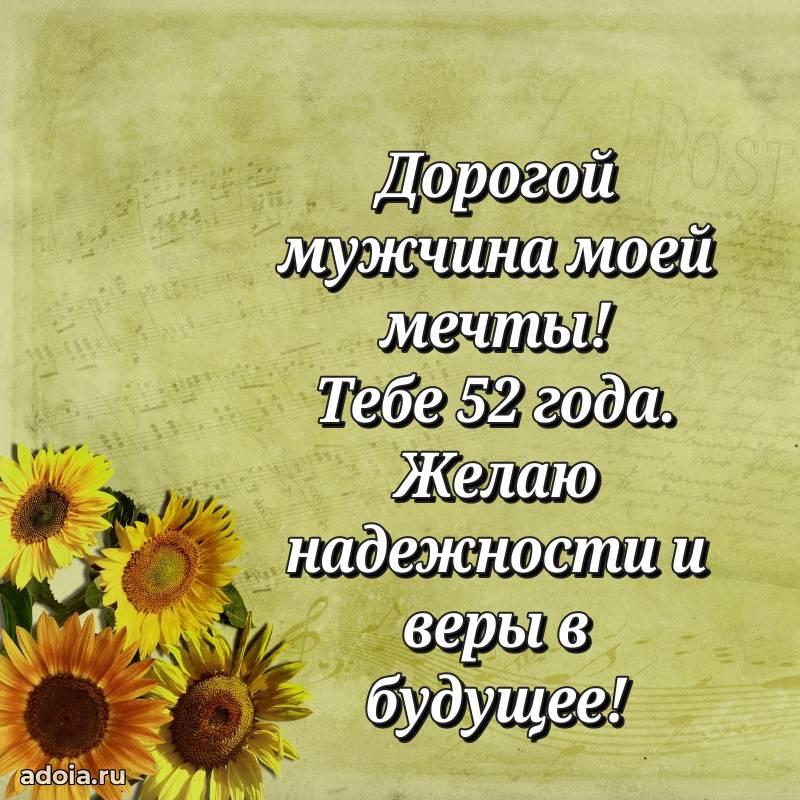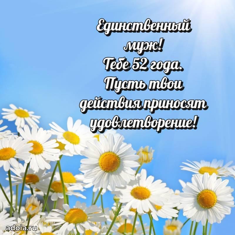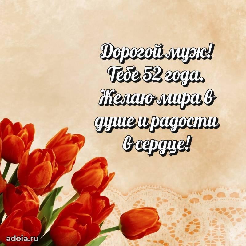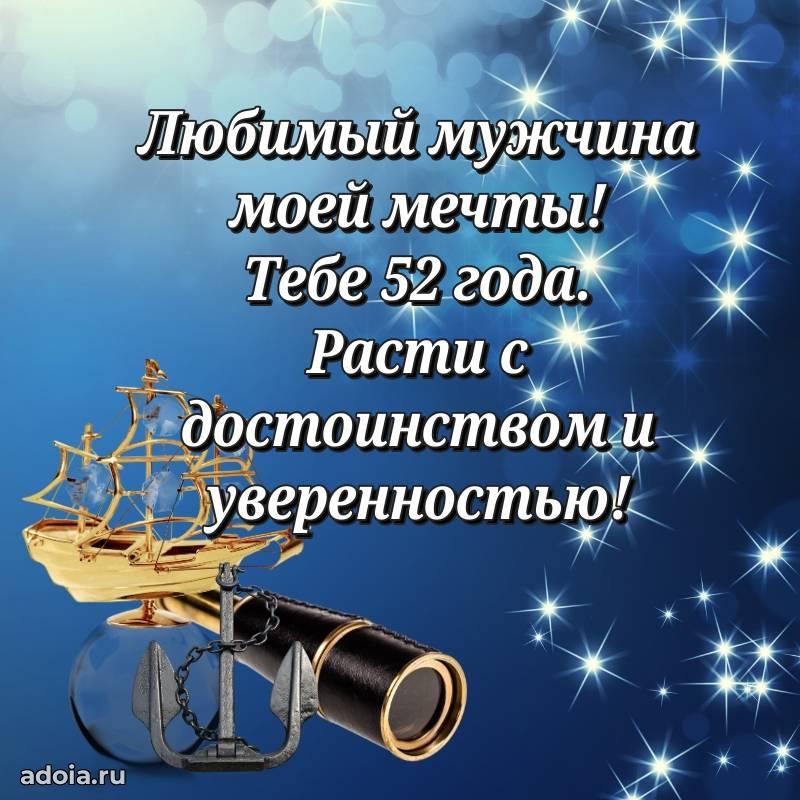 В поисках красивых и современных открыток? Вы попали по адресу! Здесь вы найдете картинки с днем рождения Мужу на 52 года! Все картинки в высоком качестве, которые можно скачать или отправить через WhatsApp бесплатно. Также вы найдете много прикольных и мерцающих гифок и анимаций, которые поднимут настроение! Все открытки содержат поздравления в стихах и прозе.