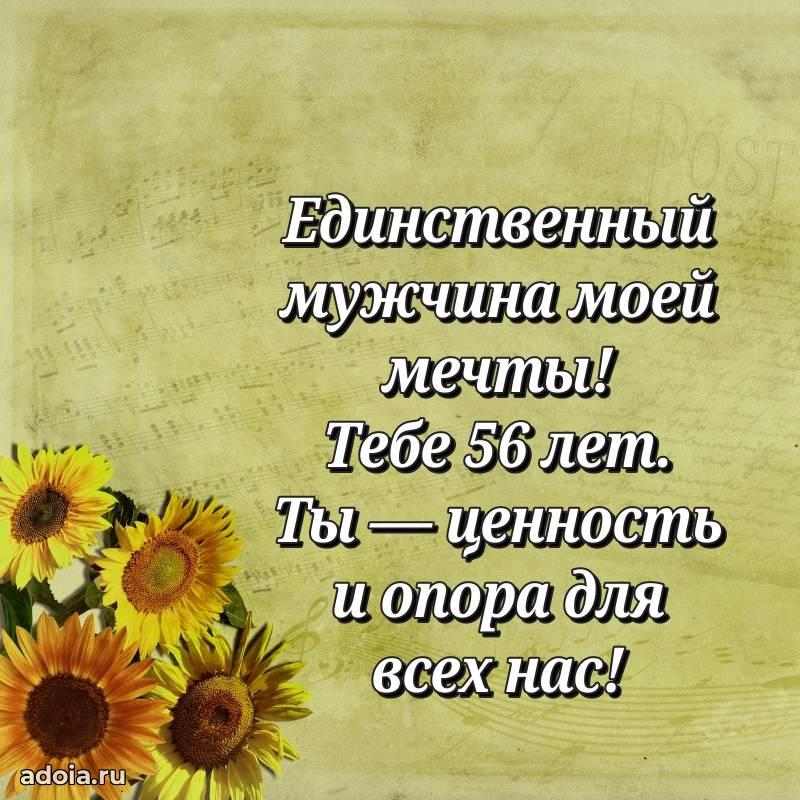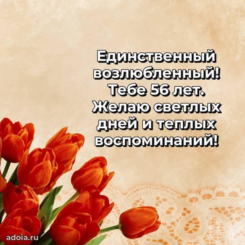 В поисках красивых и современных открыток? Вы попали по адресу! Здесь вы найдете картинки с днем рождения Мужу на 56 лет! Все картинки в высоком качестве, которые можно скачать или отправить через WhatsApp бесплатно. Также вы найдете много прикольных и мерцающих гифок и анимаций, которые поднимут настроение! Все открытки содержат поздравления в стихах и прозе.