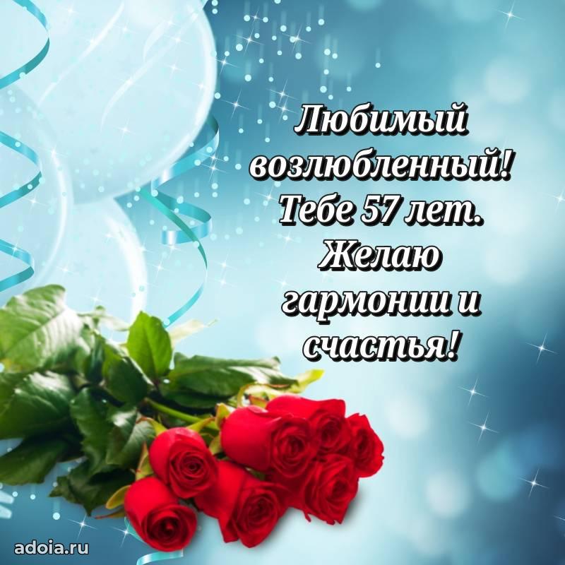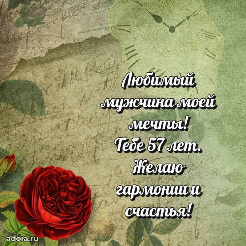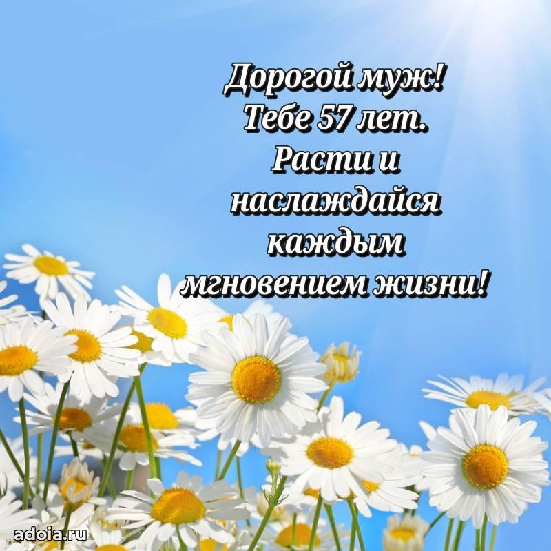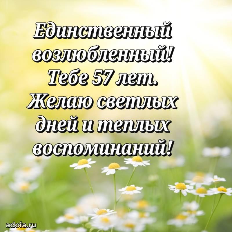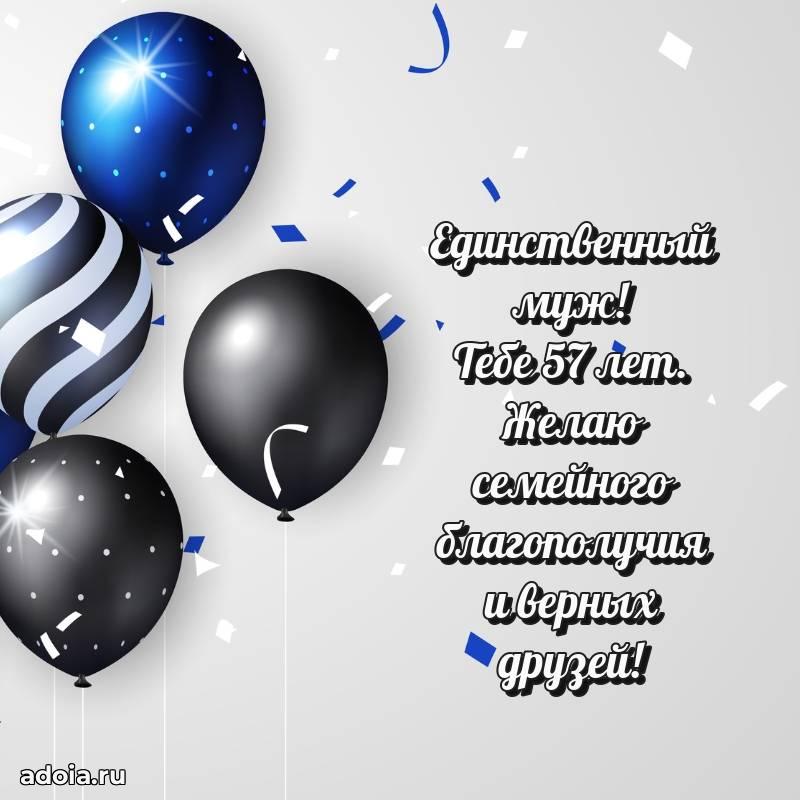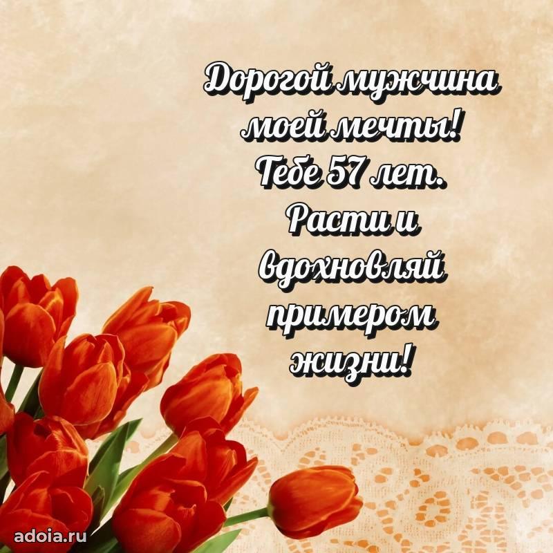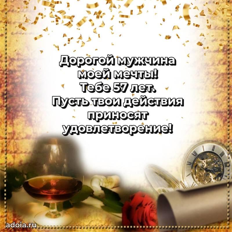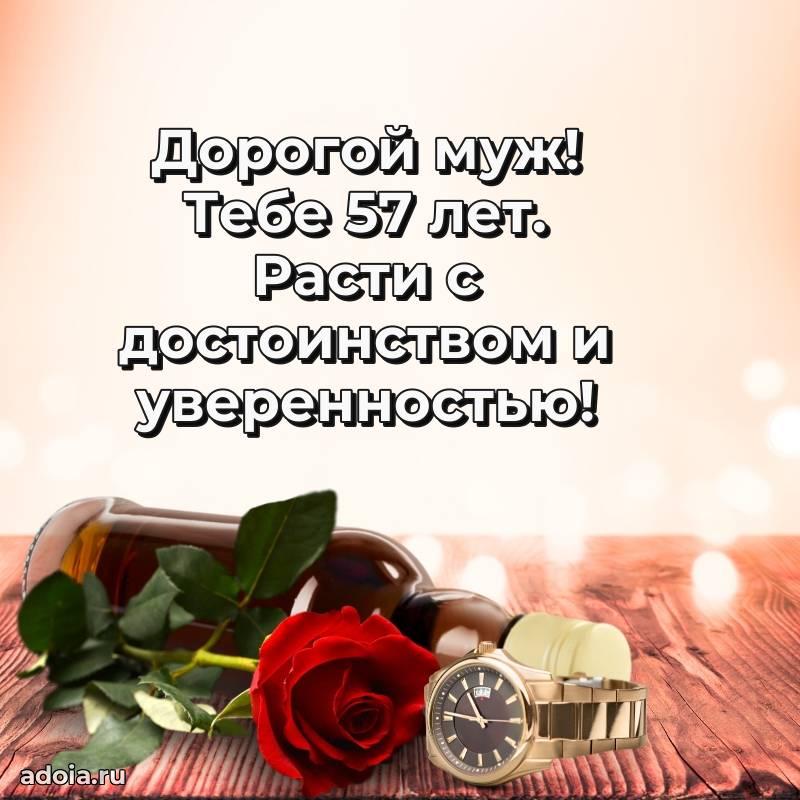 В поисках красивых и современных открыток? Вы попали по адресу! Здесь вы найдете картинки с днем рождения Мужу на 57 лет! Все картинки в высоком качестве, которые можно скачать или отправить через WhatsApp бесплатно. Также вы найдете много прикольных и мерцающих гифок и анимаций, которые поднимут настроение! Все открытки содержат поздравления в стихах и прозе.