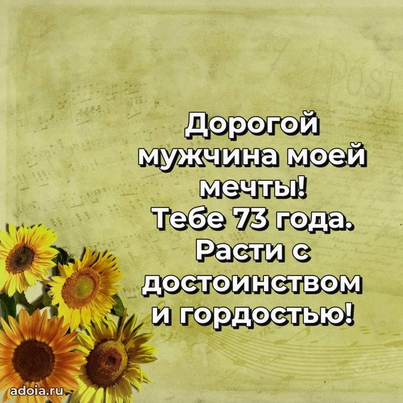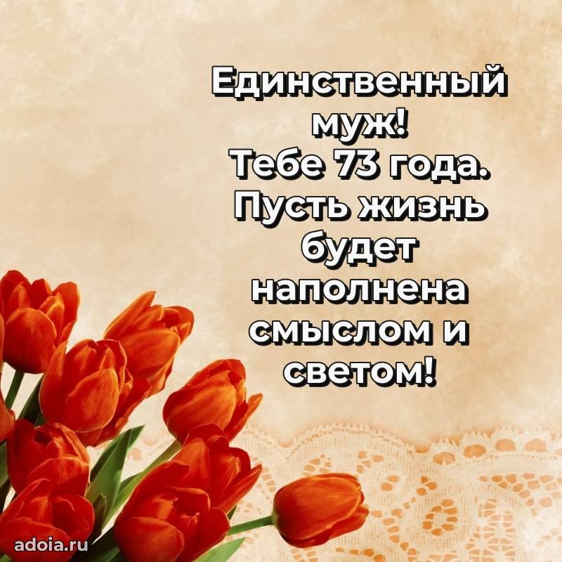 В поисках красивых и современных открыток? Вы попали по адресу! Здесь вы найдете картинки с днем рождения Мужу на 73 года! Все картинки в высоком качестве, которые можно скачать или отправить через WhatsApp бесплатно. Также вы найдете много прикольных и мерцающих гифок и анимаций, которые поднимут настроение! Все открытки содержат поздравления в стихах и прозе.