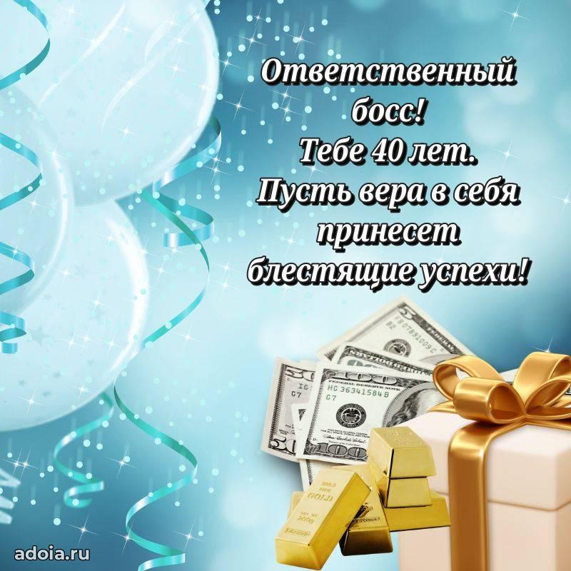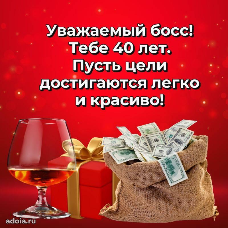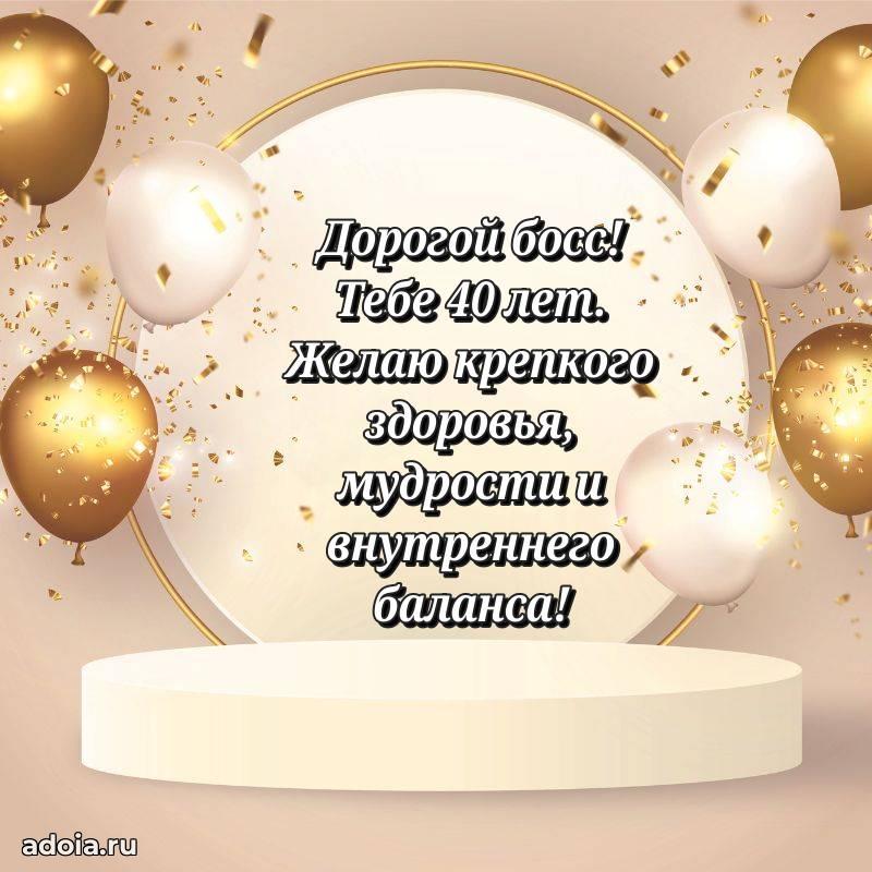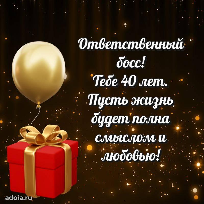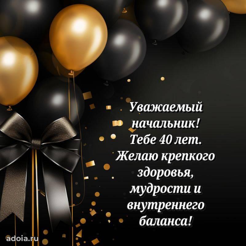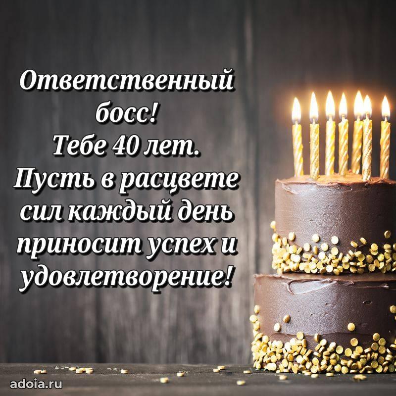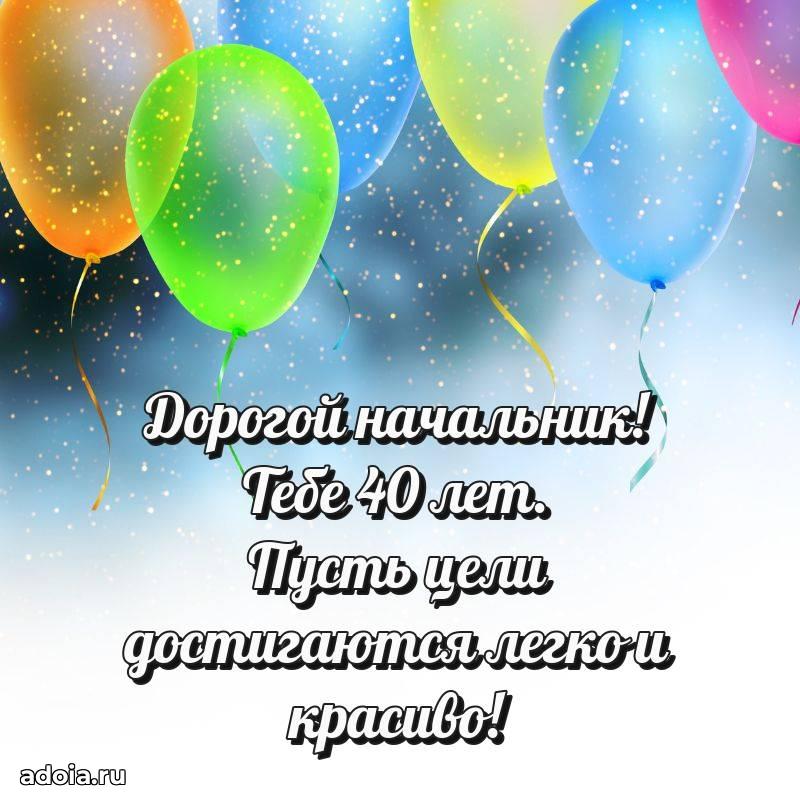 В поисках красивых и современных открыток? Вы попали по адресу! Здесь вы найдете картинки с днем рождения Начальнику на 40 лет! Все картинки в высоком качестве, которые можно скачать или отправить через WhatsApp бесплатно. Также вы найдете много прикольных и мерцающих гифок и анимаций, которые поднимут настроение! Все открытки содержат поздравления в стихах и прозе.