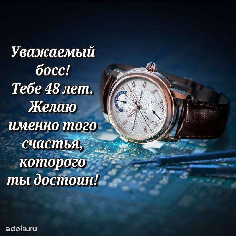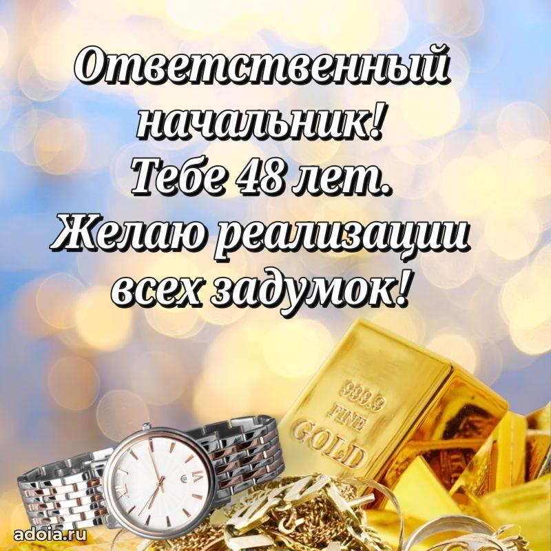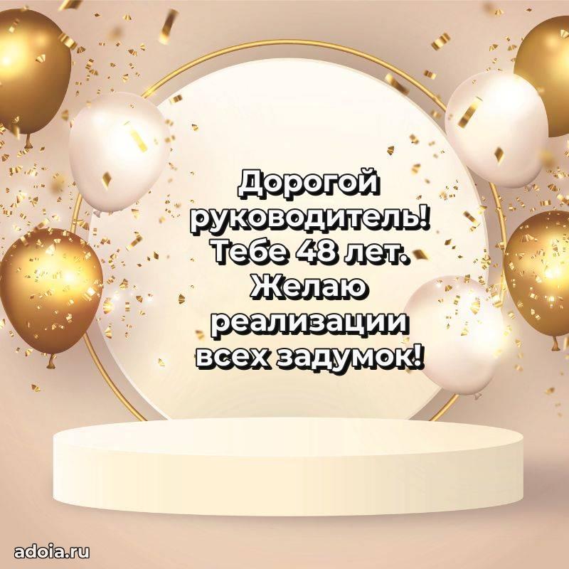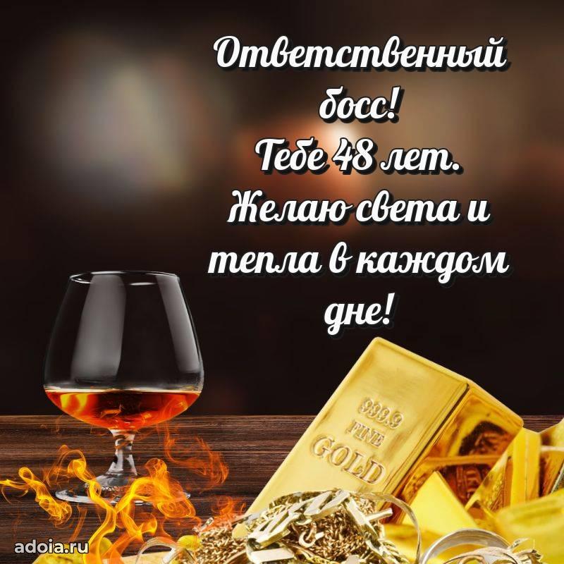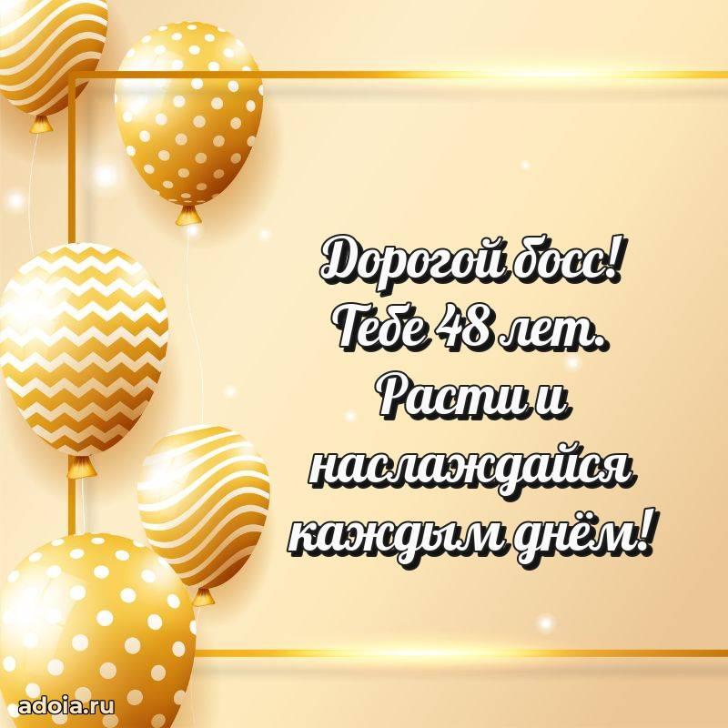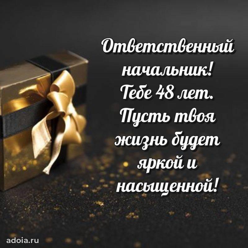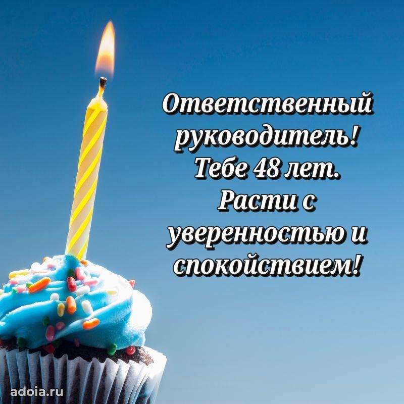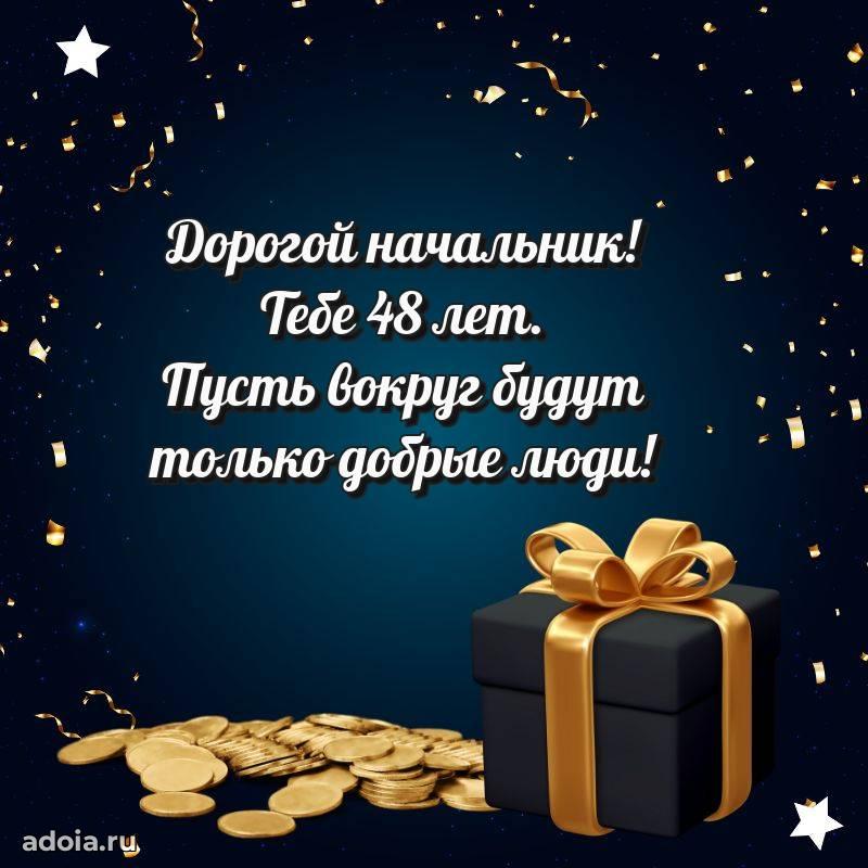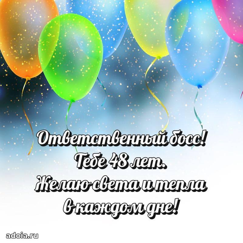 В поисках красивых и современных открыток? Вы попали по адресу! Здесь вы найдете картинки с днем рождения Начальнику на 48 лет! Все картинки в высоком качестве, которые можно скачать или отправить через WhatsApp бесплатно. Также вы найдете много прикольных и мерцающих гифок и анимаций, которые поднимут настроение! Все открытки содержат поздравления в стихах и прозе.