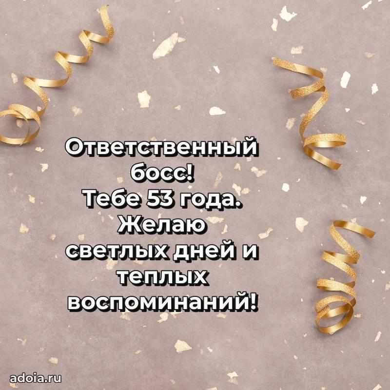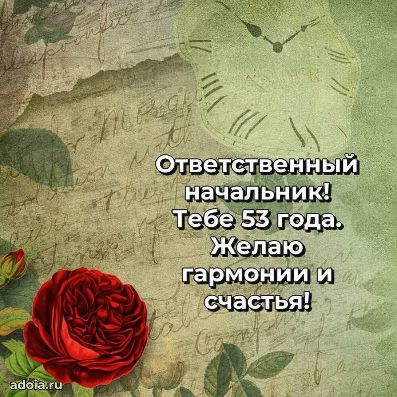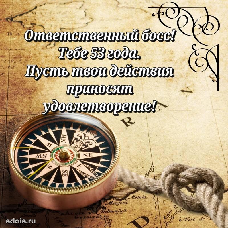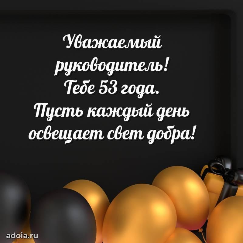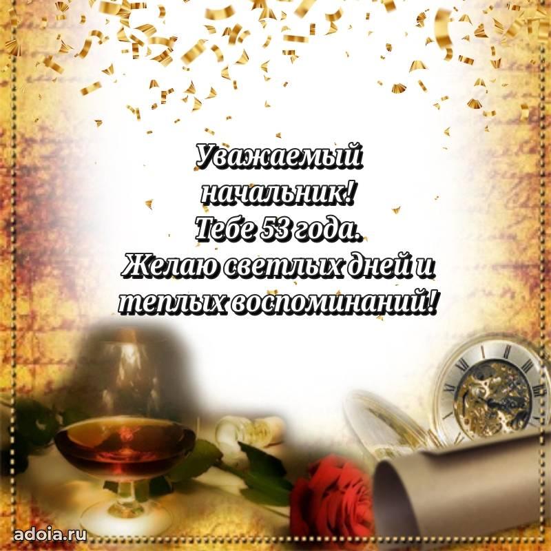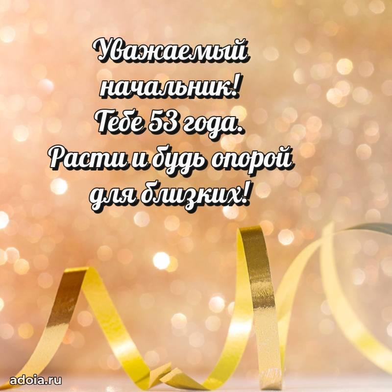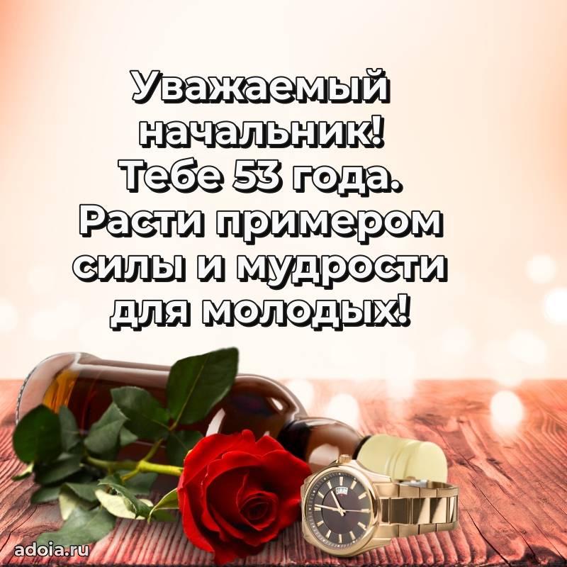 В поисках красивых и современных открыток? Вы попали по адресу! Здесь вы найдете картинки с днем рождения Начальнику на 53 года! Все картинки в высоком качестве, которые можно скачать или отправить через WhatsApp бесплатно. Также вы найдете много прикольных и мерцающих гифок и анимаций, которые поднимут настроение! Все открытки содержат поздравления в стихах и прозе.