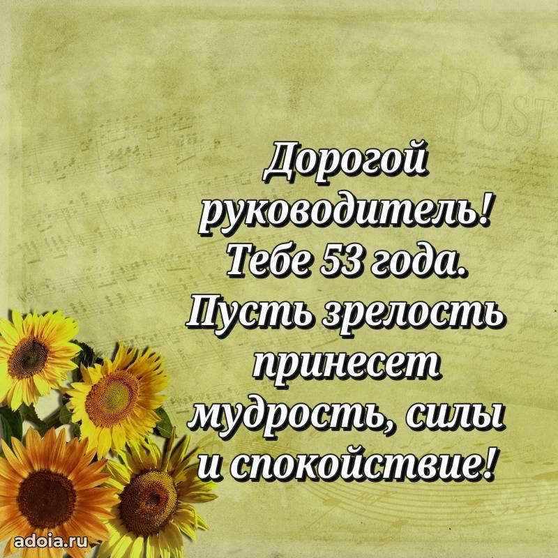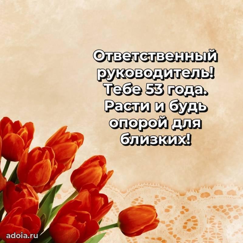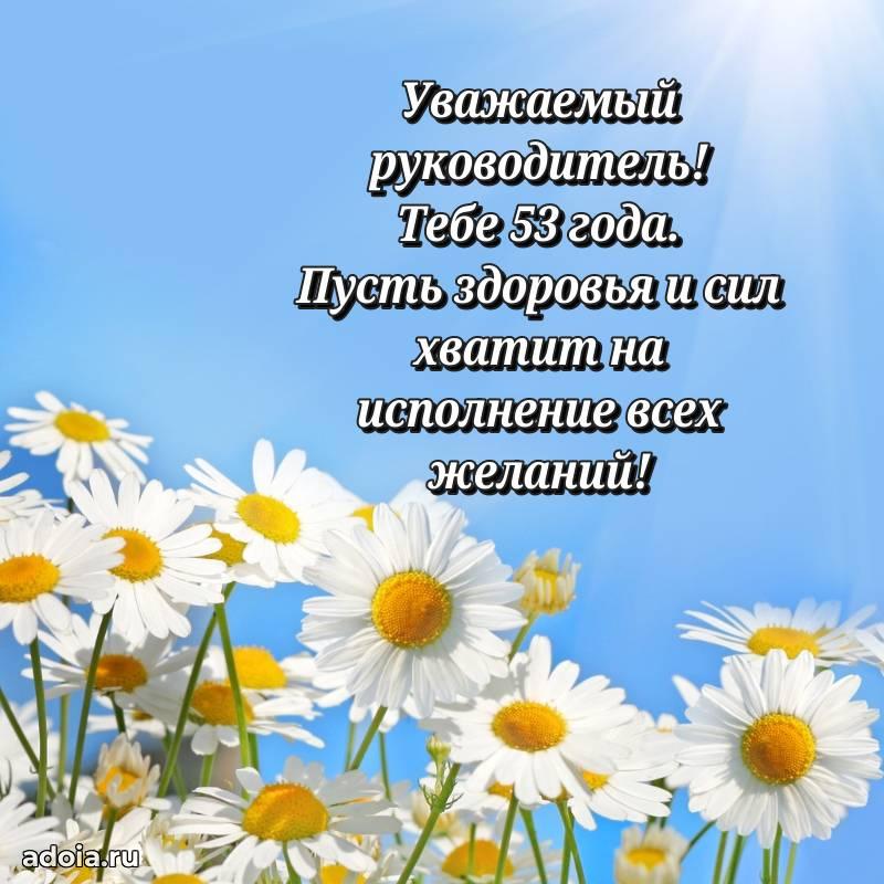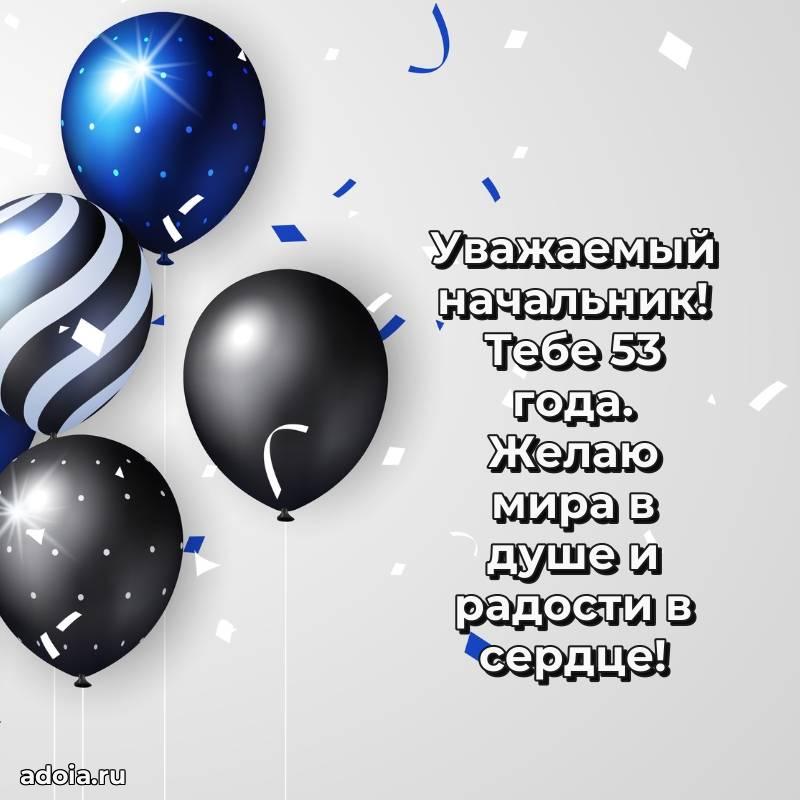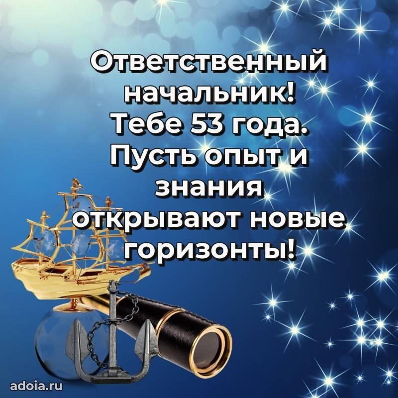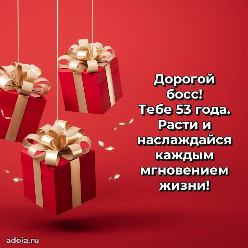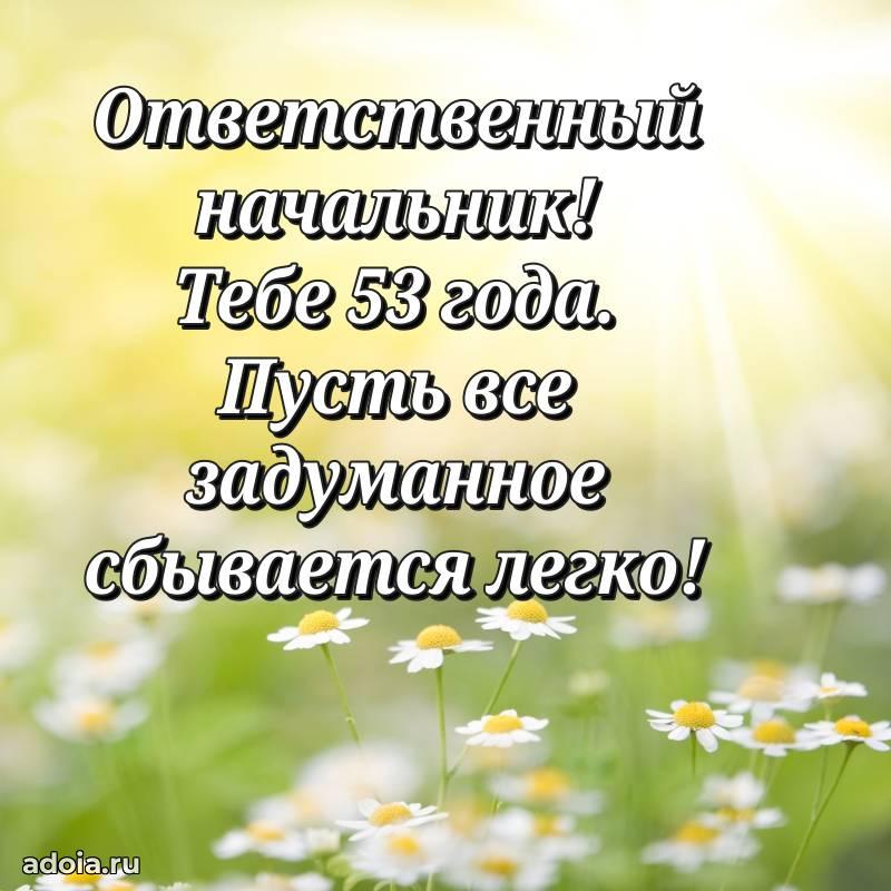 В поисках красивых и современных открыток? Вы попали по адресу! Здесь вы найдете картинки с днем рождения Начальнику на 53 года! Все картинки в высоком качестве, которые можно скачать или отправить через WhatsApp бесплатно. Также вы найдете много прикольных и мерцающих гифок и анимаций, которые поднимут настроение! Все открытки содержат поздравления в стихах и прозе.