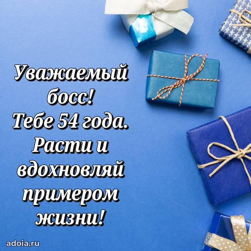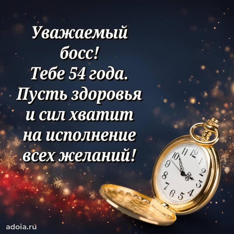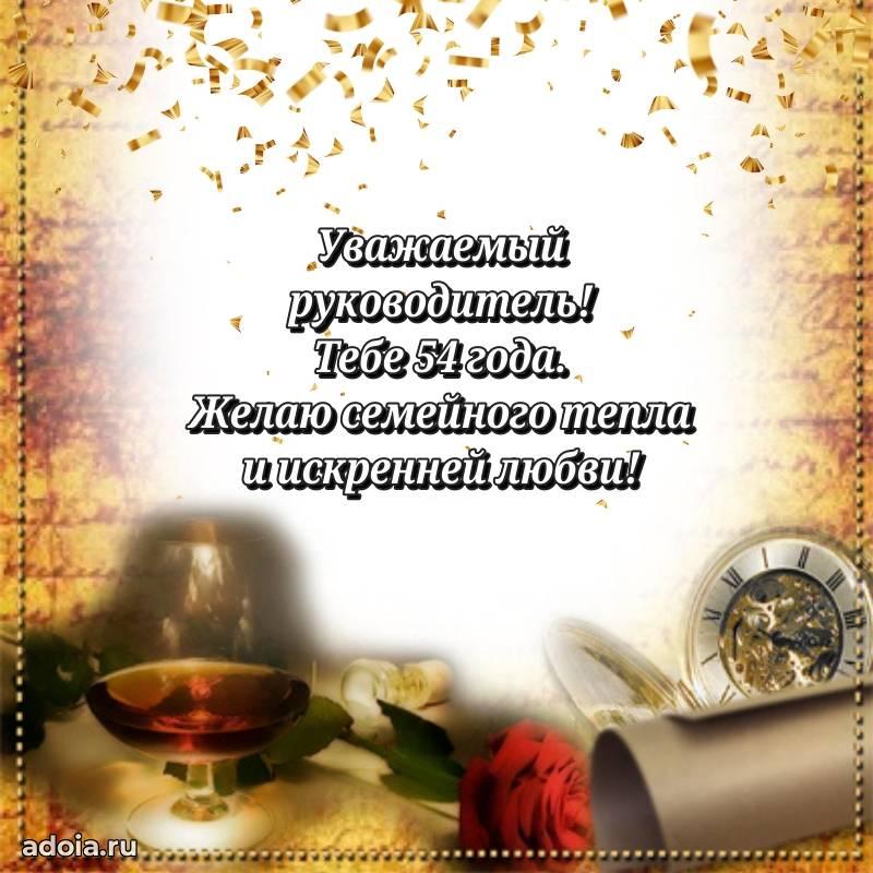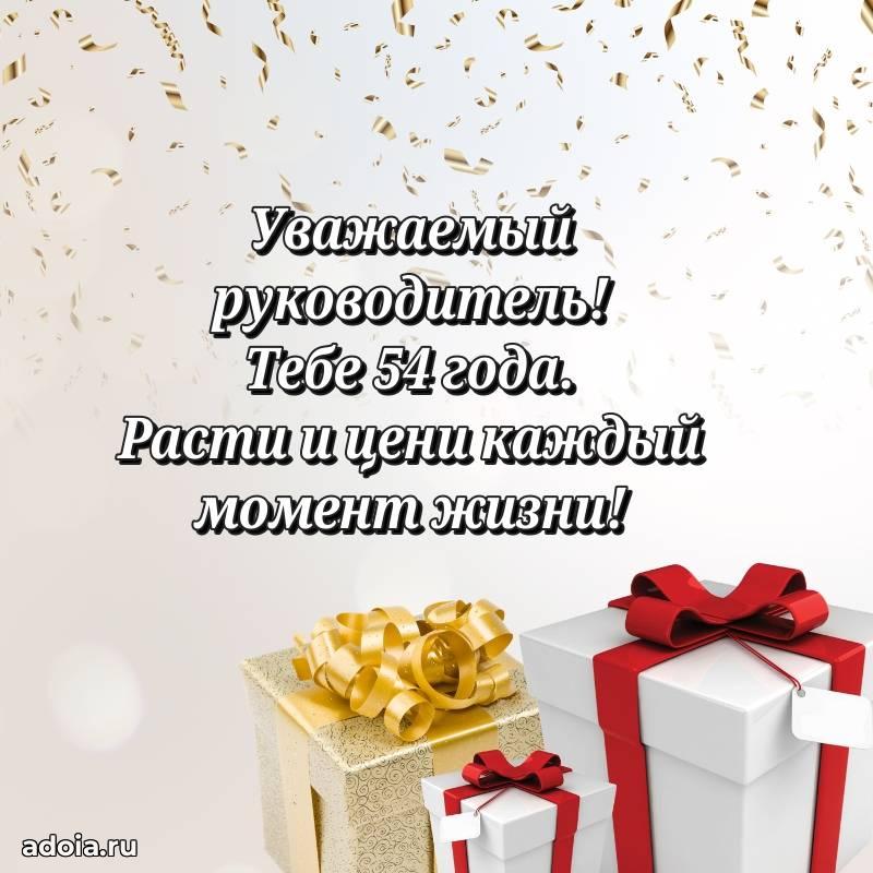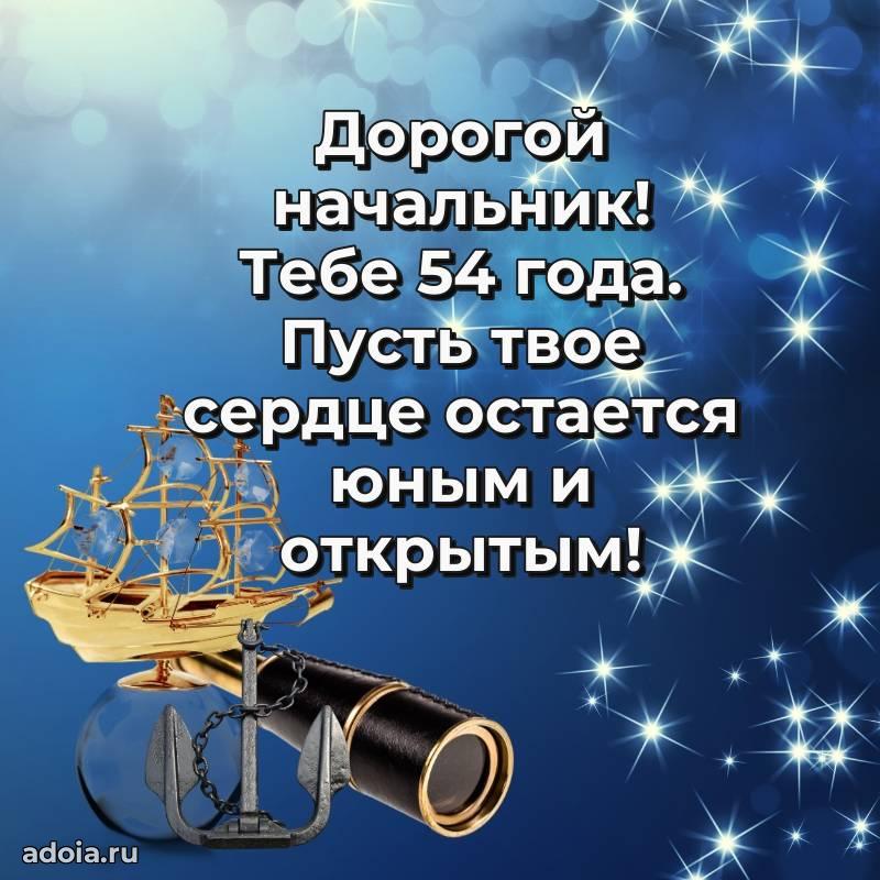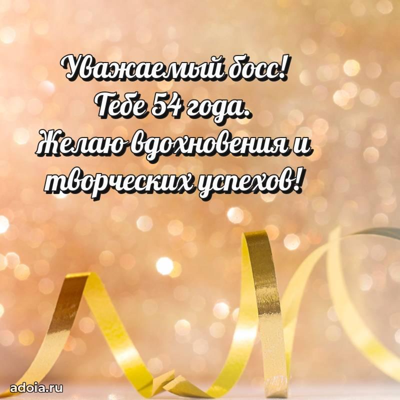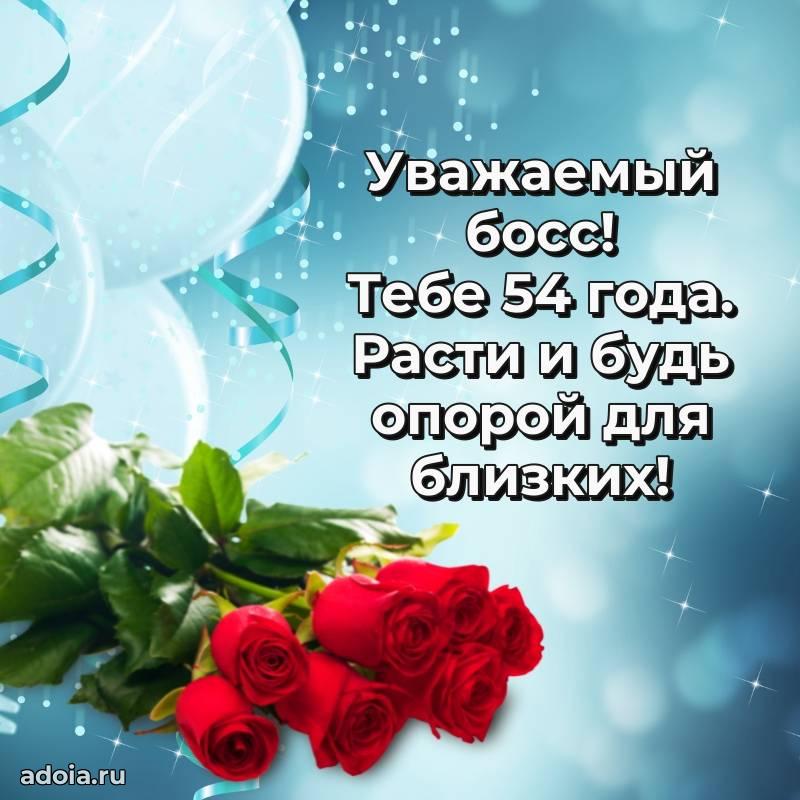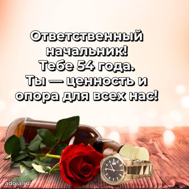 В поисках красивых и современных открыток? Вы попали по адресу! Здесь вы найдете картинки с днем рождения Начальнику на 54 года! Все картинки в высоком качестве, которые можно скачать или отправить через WhatsApp бесплатно. Также вы найдете много прикольных и мерцающих гифок и анимаций, которые поднимут настроение! Все открытки содержат поздравления в стихах и прозе.