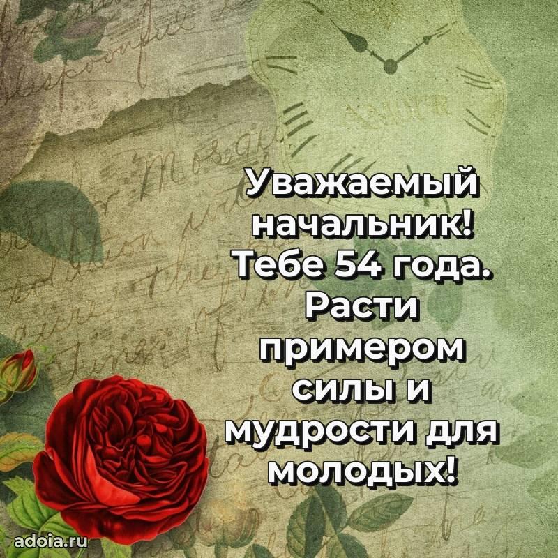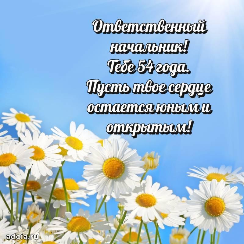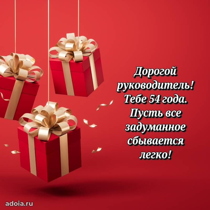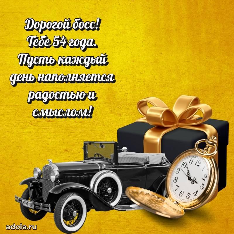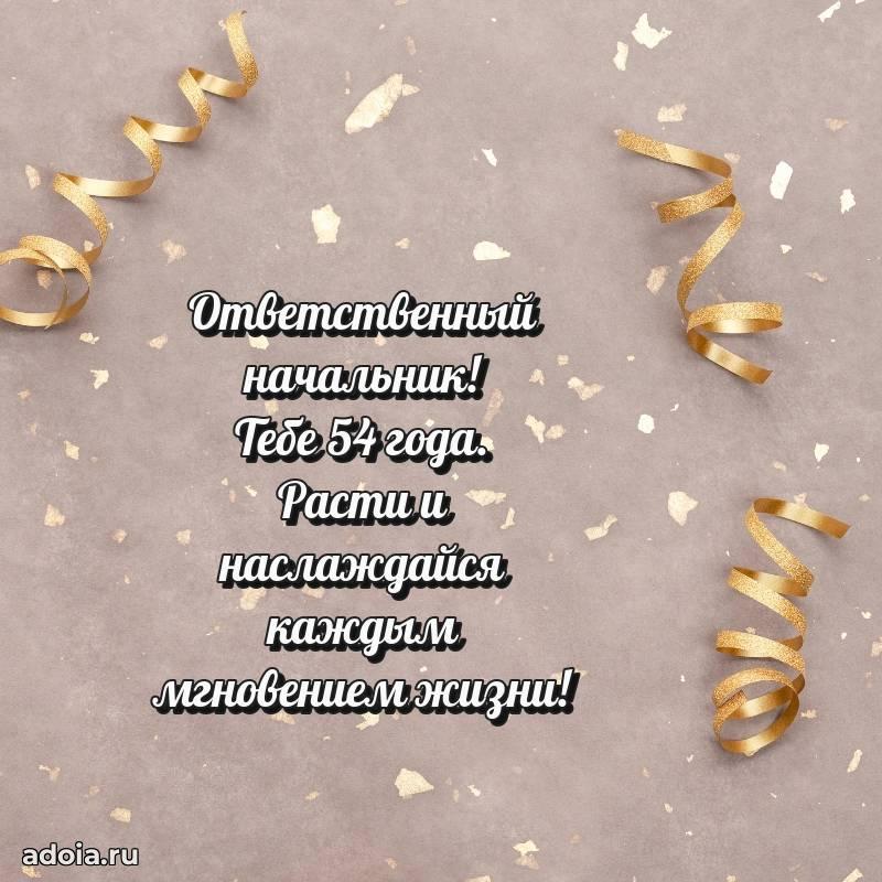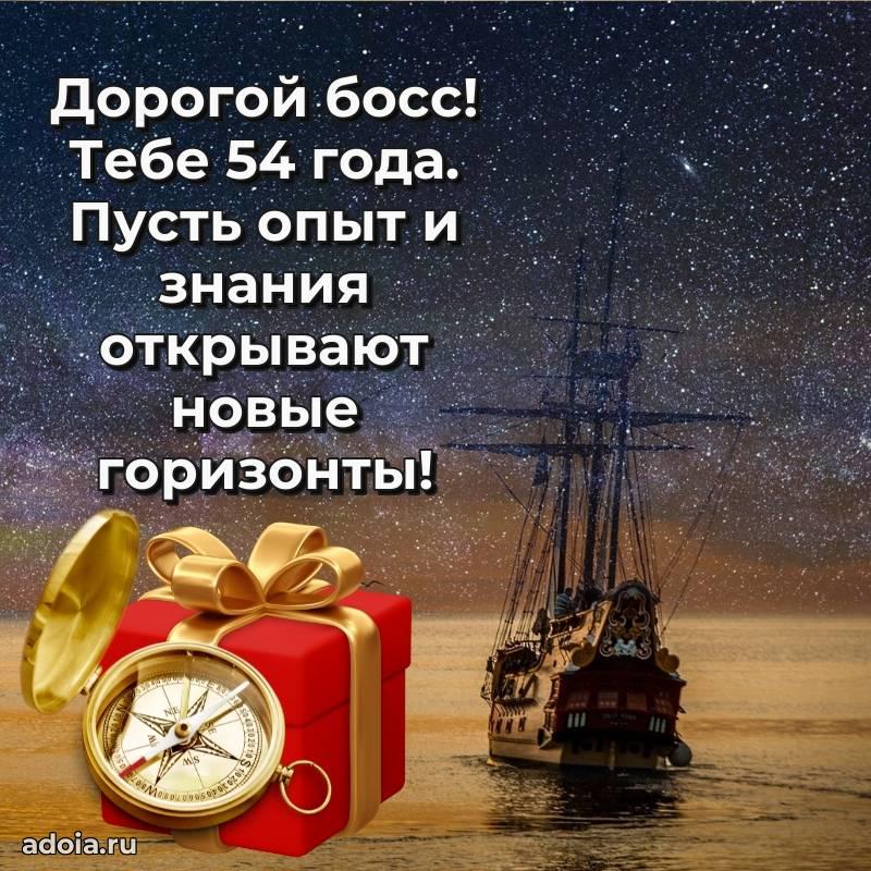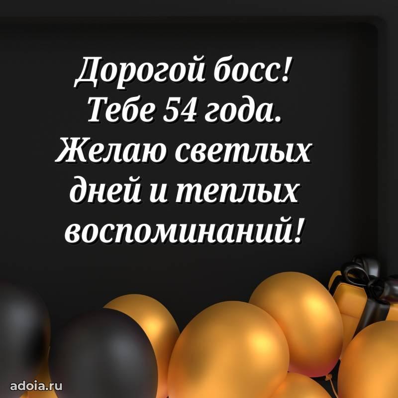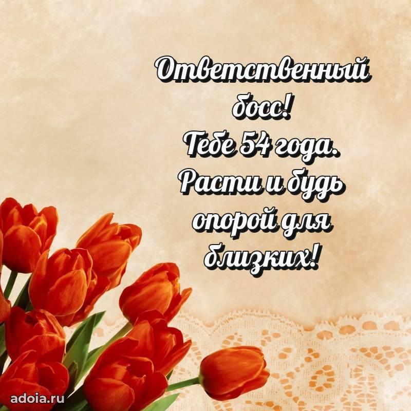 В поисках красивых и современных открыток? Вы попали по адресу! Здесь вы найдете картинки с днем рождения Начальнику на 54 года! Все картинки в высоком качестве, которые можно скачать или отправить через WhatsApp бесплатно. Также вы найдете много прикольных и мерцающих гифок и анимаций, которые поднимут настроение! Все открытки содержат поздравления в стихах и прозе.