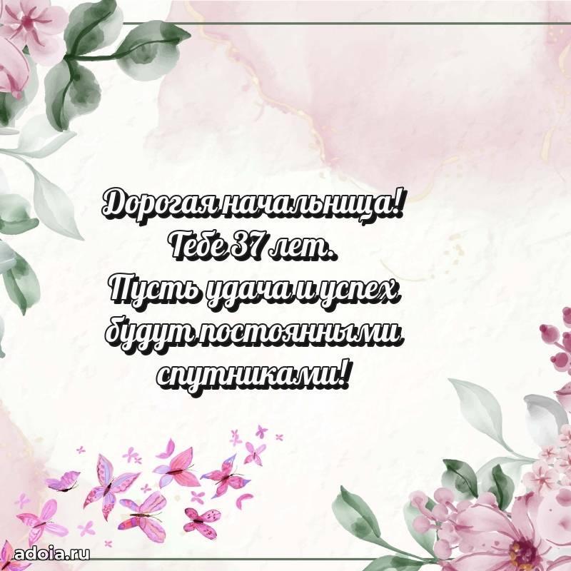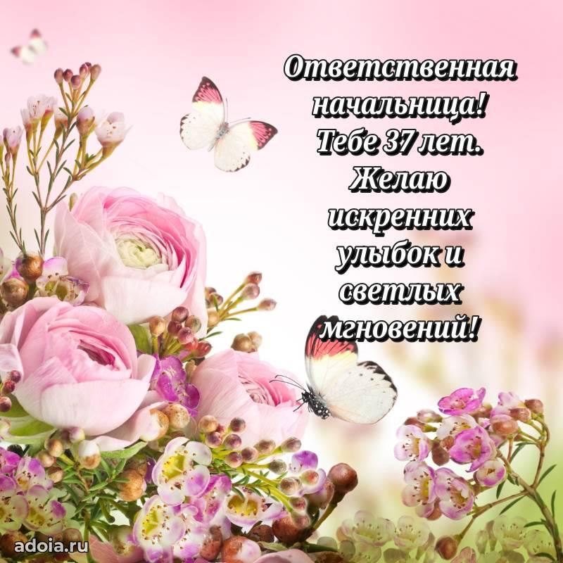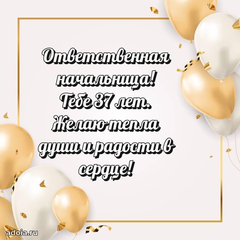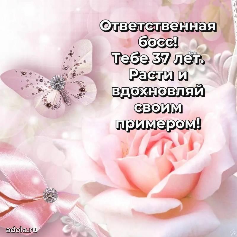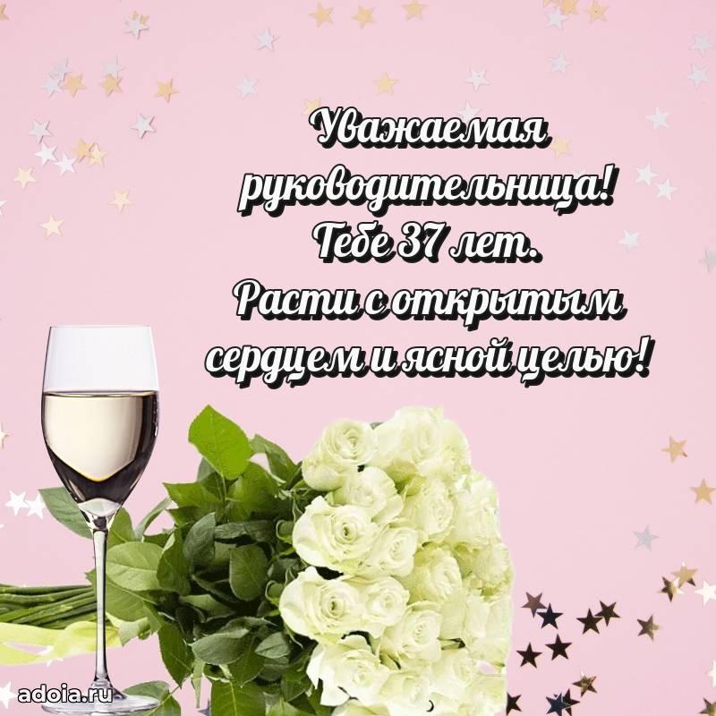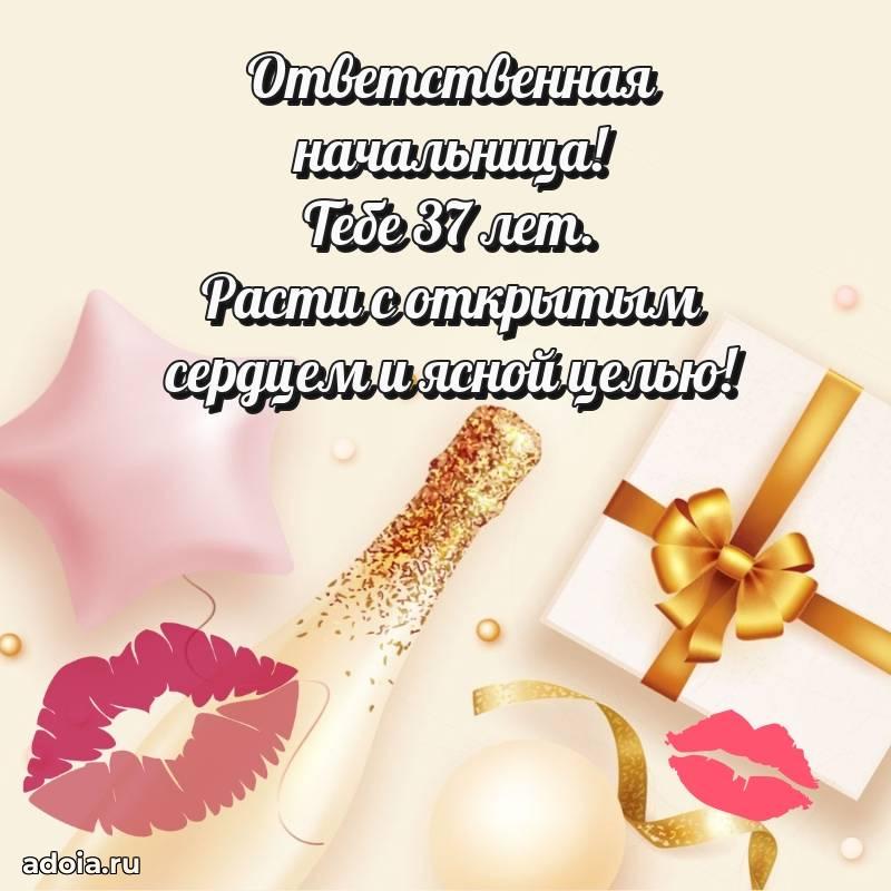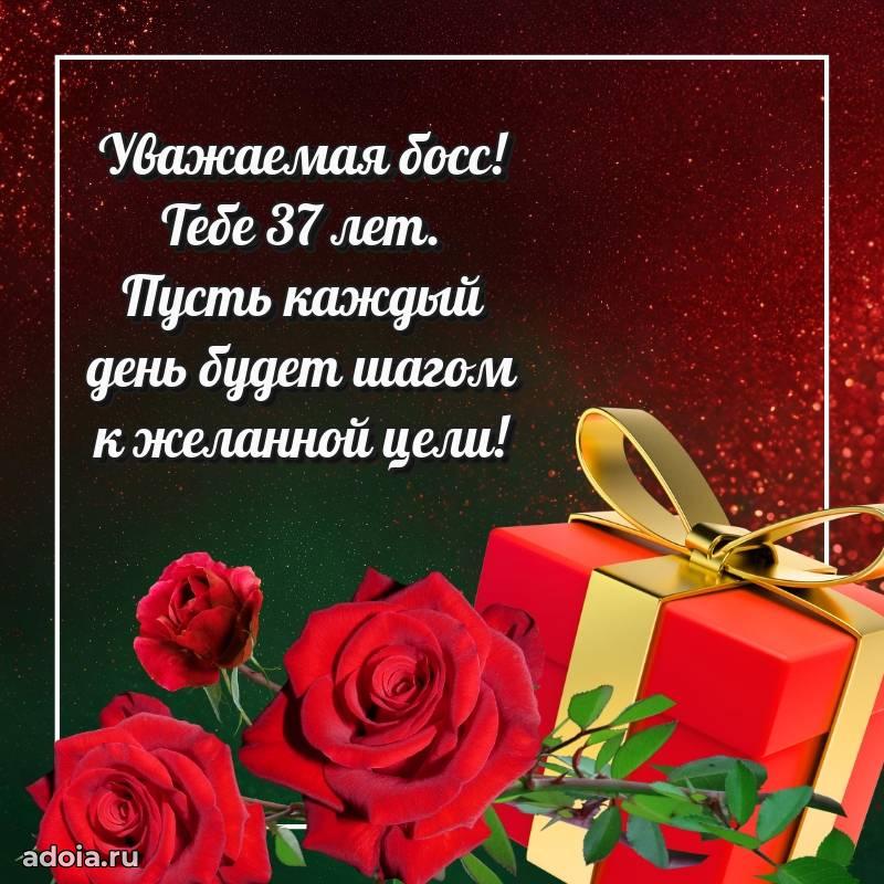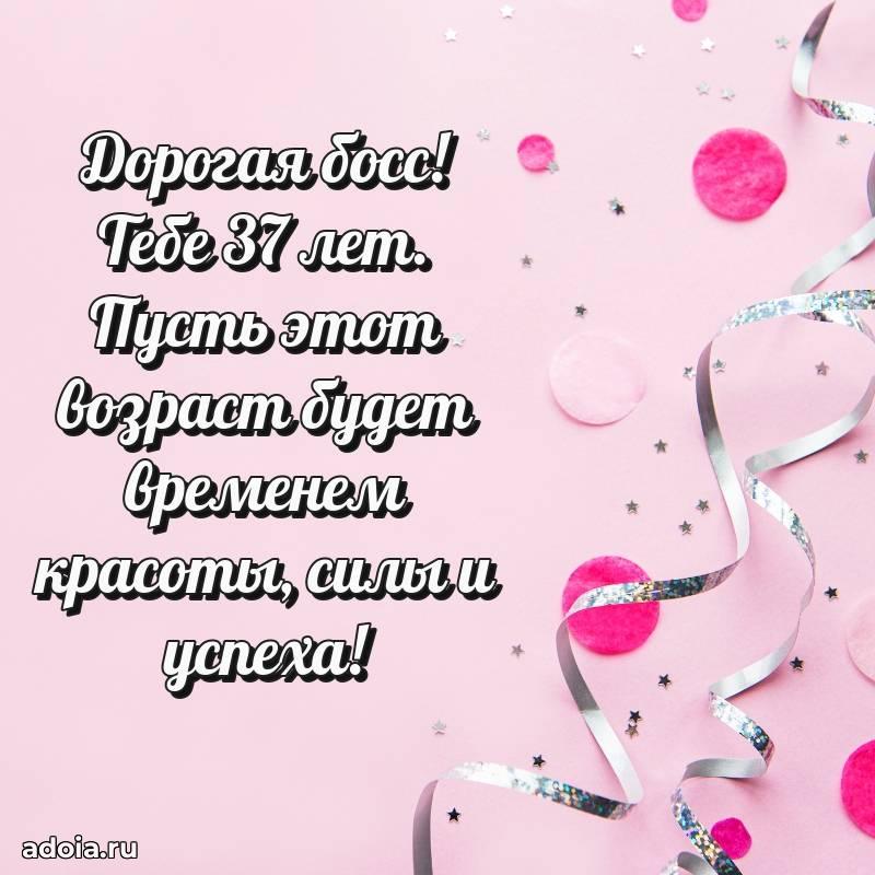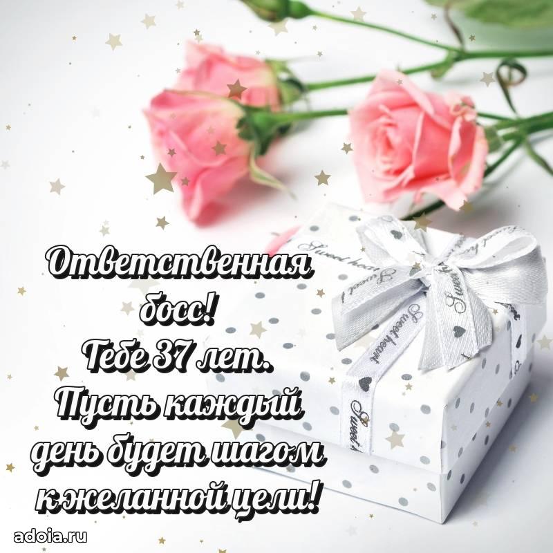 В поисках красивых и современных открыток? Вы попали по адресу! Здесь вы найдете картинки с днем рождения Начальнице на 37 лет! Все картинки в высоком качестве, которые можно скачать или отправить через WhatsApp бесплатно. Также вы найдете много прикольных и мерцающих гифок и анимаций, которые поднимут настроение! Все открытки содержат поздравления в стихах и прозе.