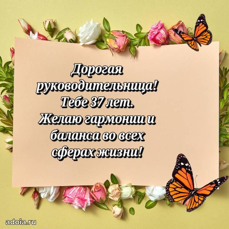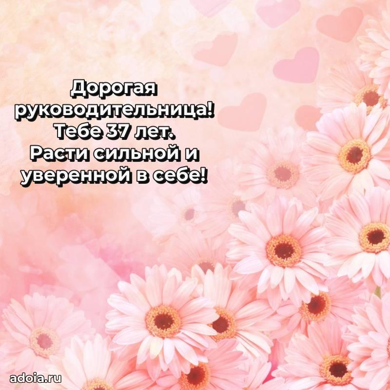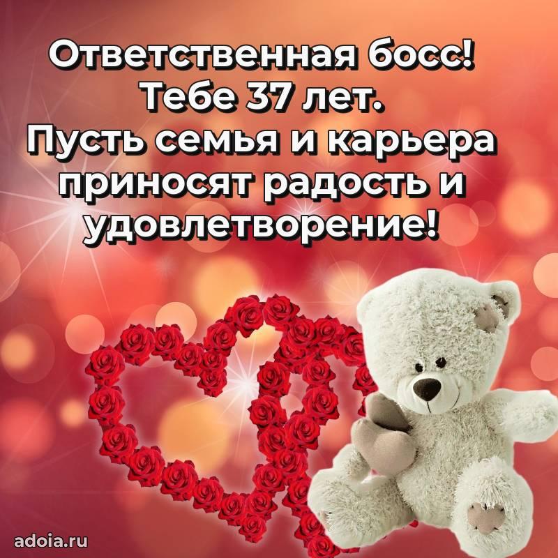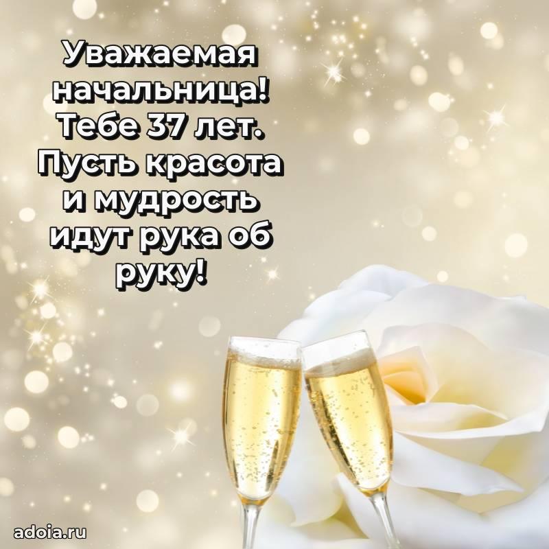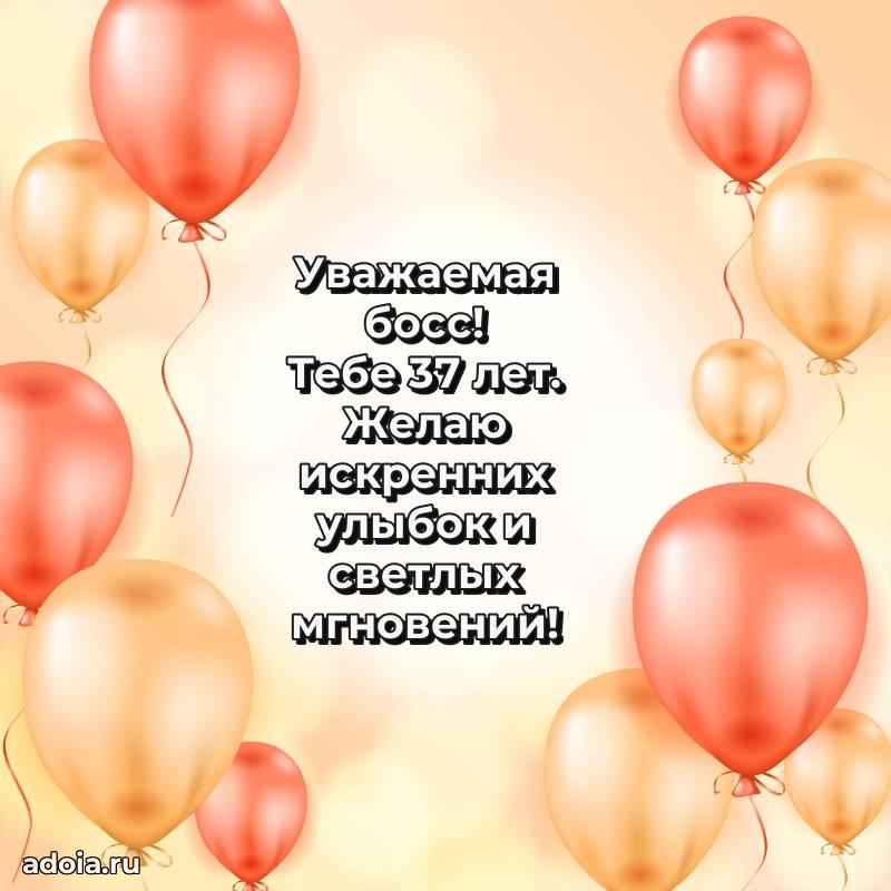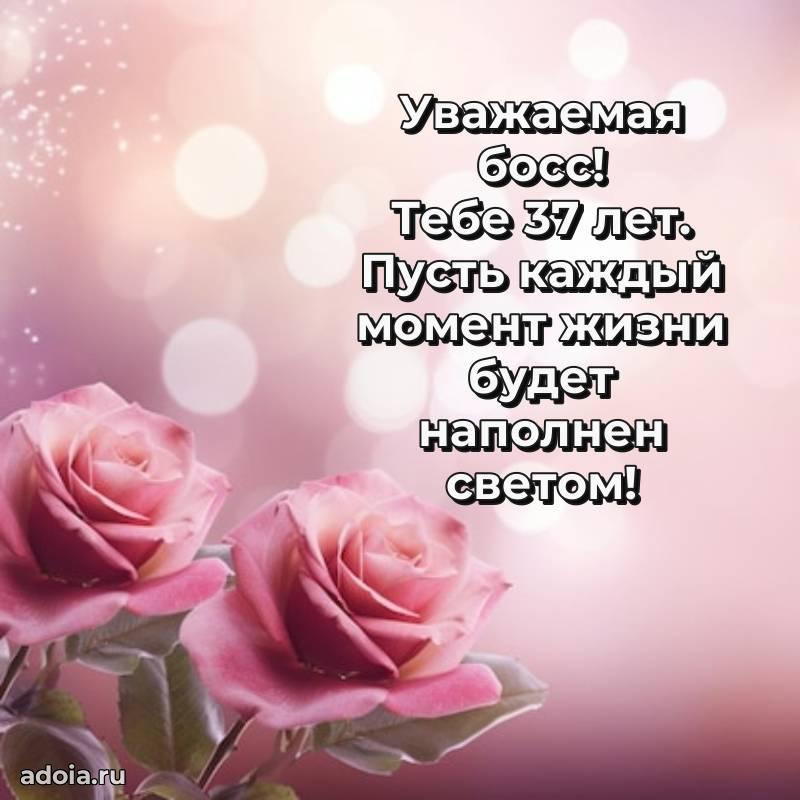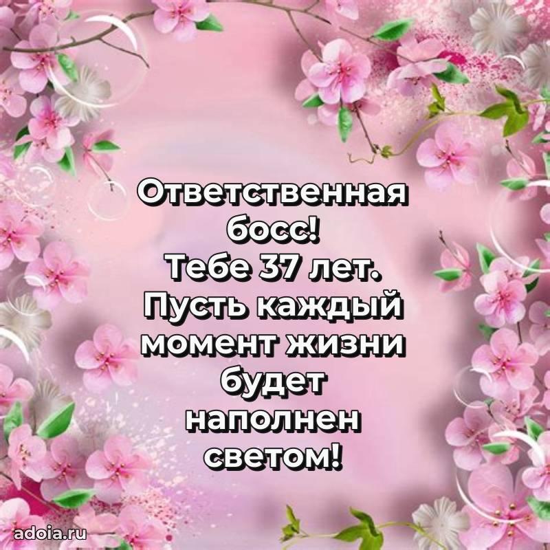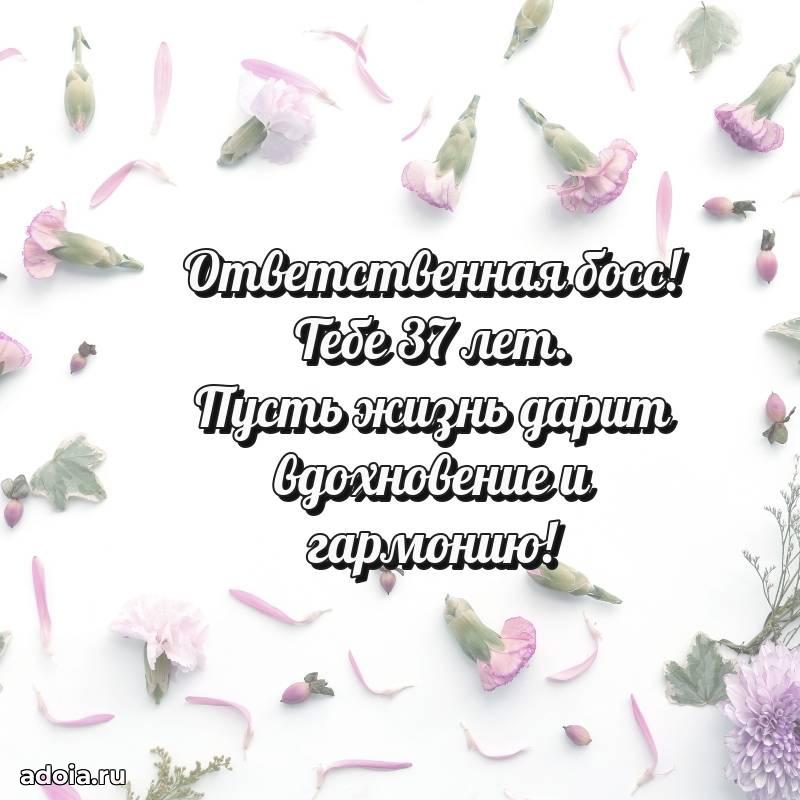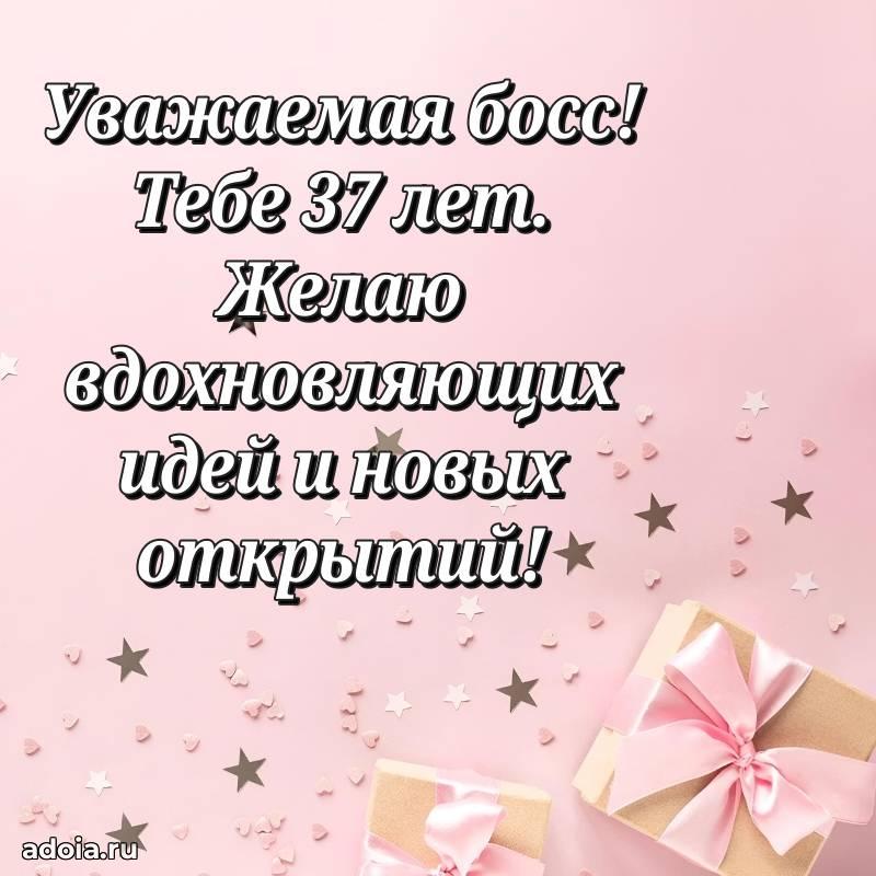 В поисках красивых и современных открыток? Вы попали по адресу! Здесь вы найдете картинки с днем рождения Начальнице на 37 лет! Все картинки в высоком качестве, которые можно скачать или отправить через WhatsApp бесплатно. Также вы найдете много прикольных и мерцающих гифок и анимаций, которые поднимут настроение! Все открытки содержат поздравления в стихах и прозе.