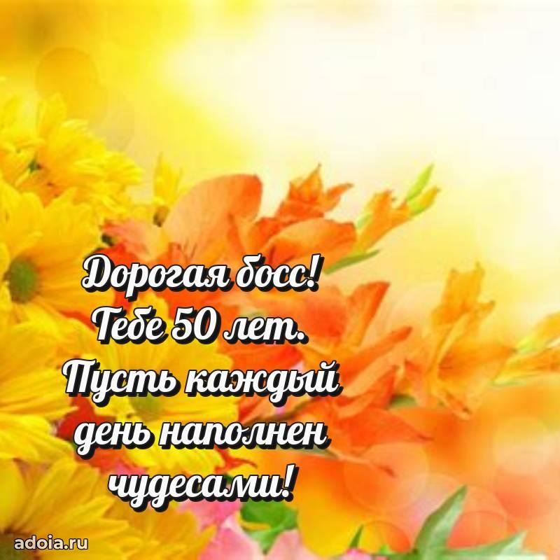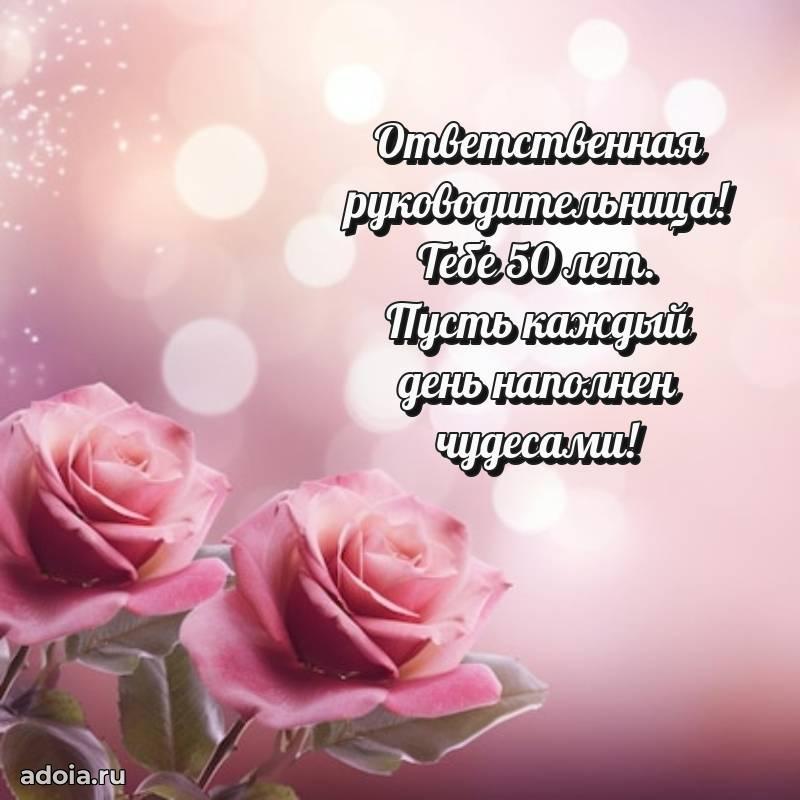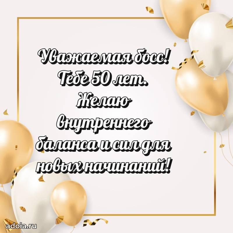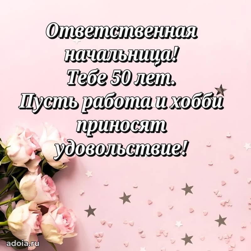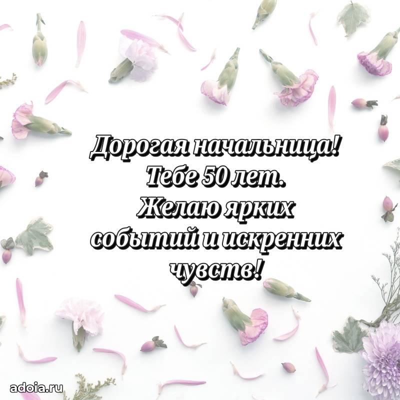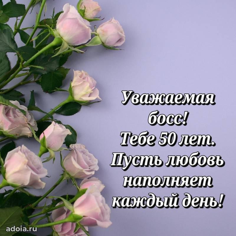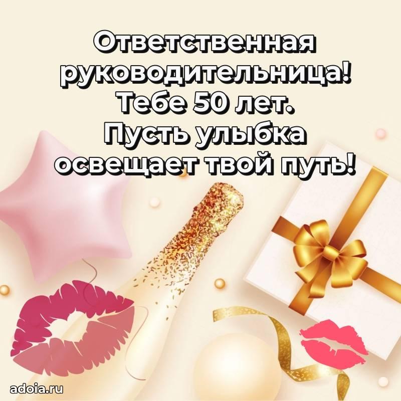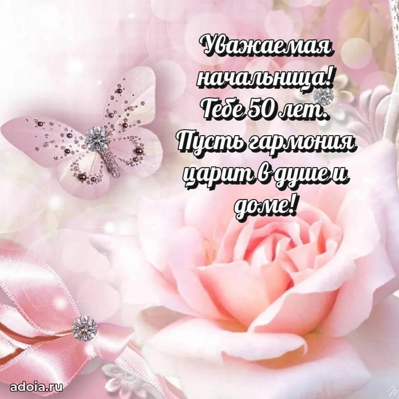 В поисках красивых и современных открыток? Вы попали по адресу! Здесь вы найдете картинки с днем рождения Начальнице на 50 лет! Все картинки в высоком качестве, которые можно скачать или отправить через WhatsApp бесплатно. Также вы найдете много прикольных и мерцающих гифок и анимаций, которые поднимут настроение! Все открытки содержат поздравления в стихах и прозе.