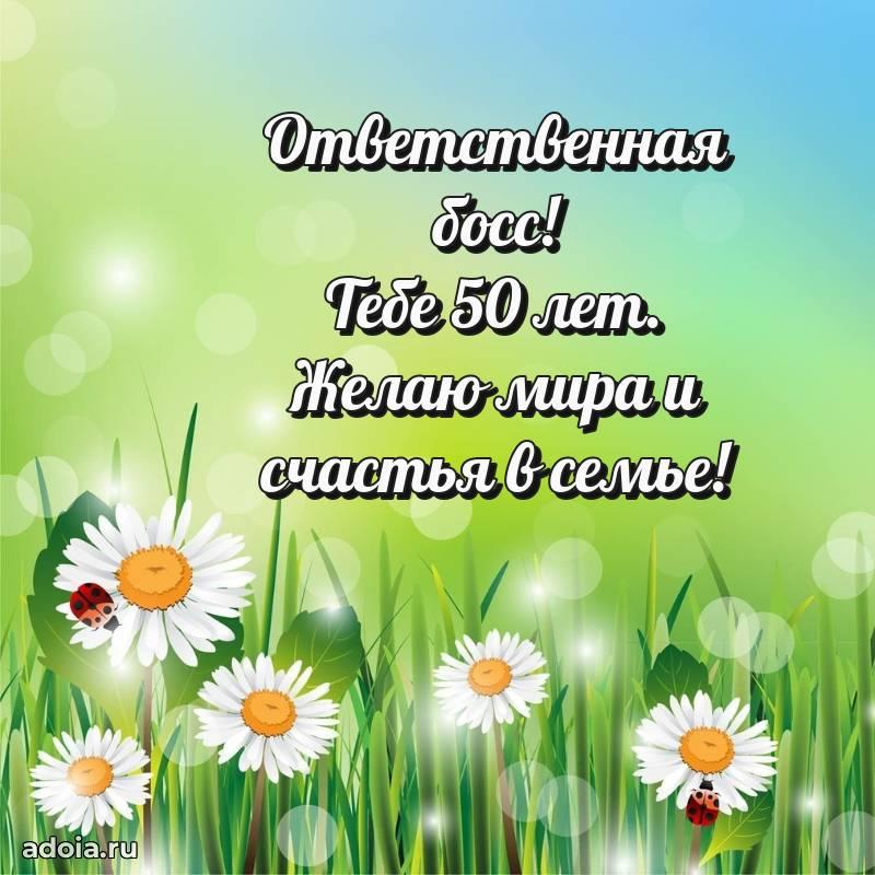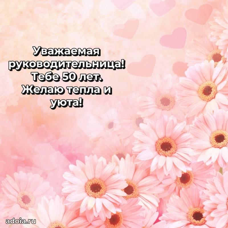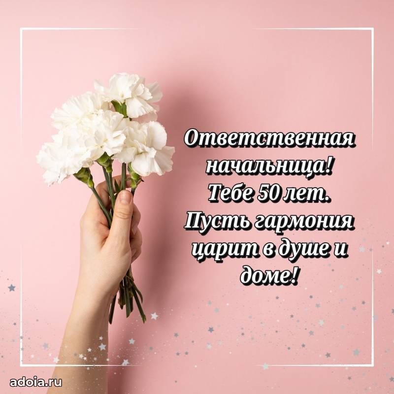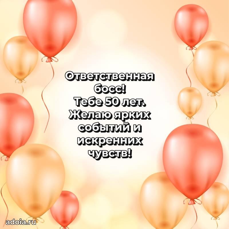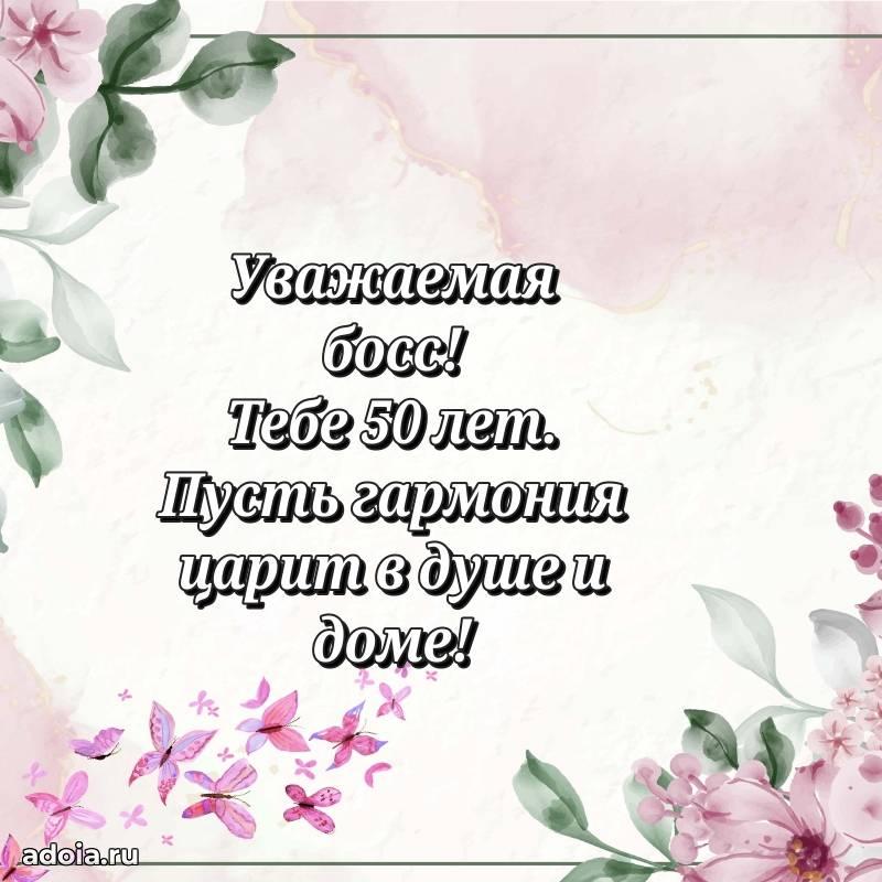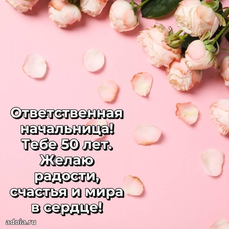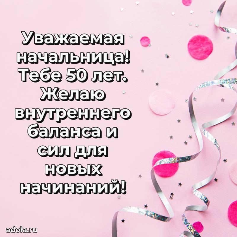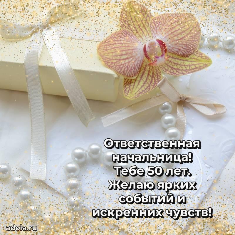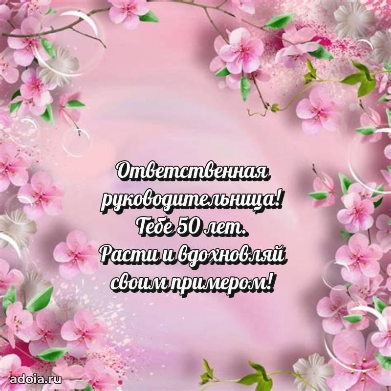 В поисках красивых и современных открыток? Вы попали по адресу! Здесь вы найдете картинки с днем рождения Начальнице на 50 лет! Все картинки в высоком качестве, которые можно скачать или отправить через WhatsApp бесплатно. Также вы найдете много прикольных и мерцающих гифок и анимаций, которые поднимут настроение! Все открытки содержат поздравления в стихах и прозе.