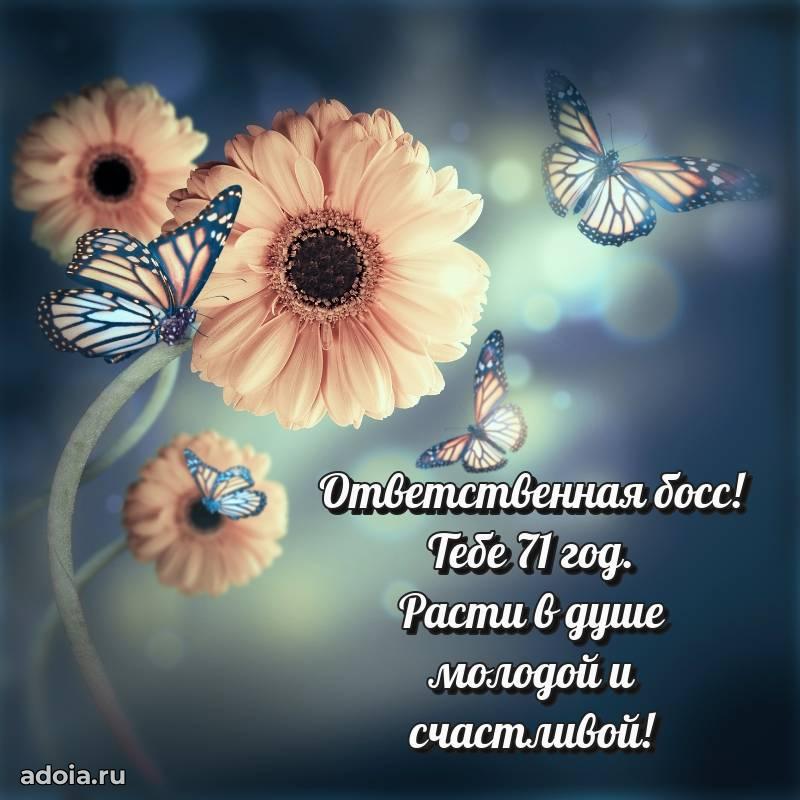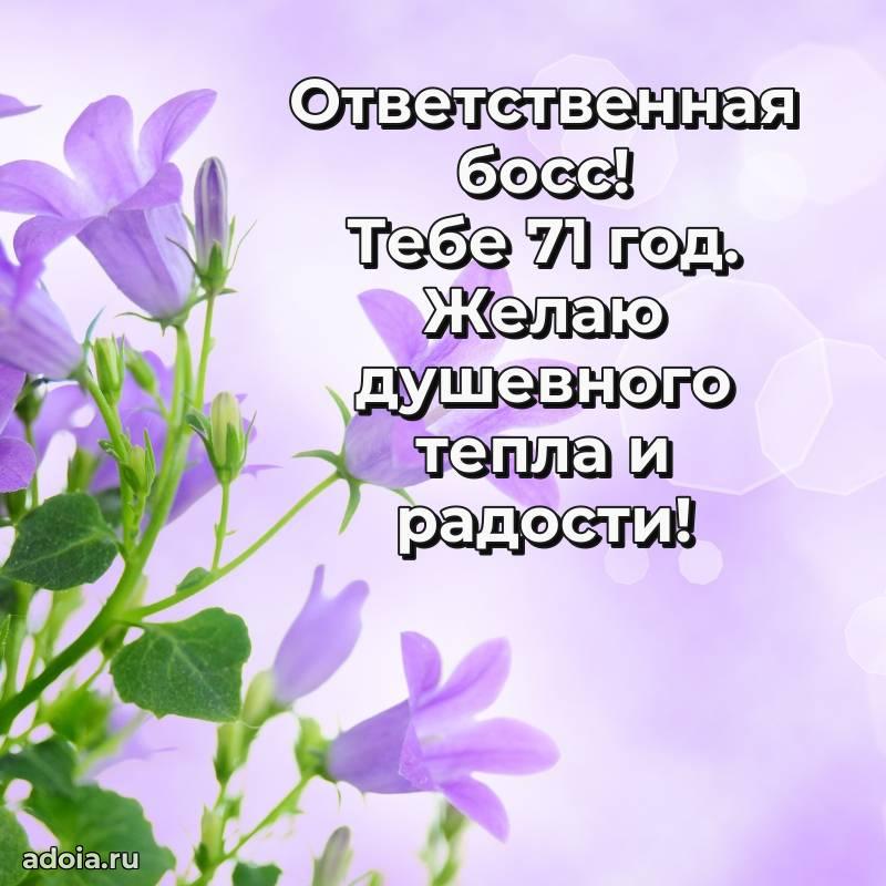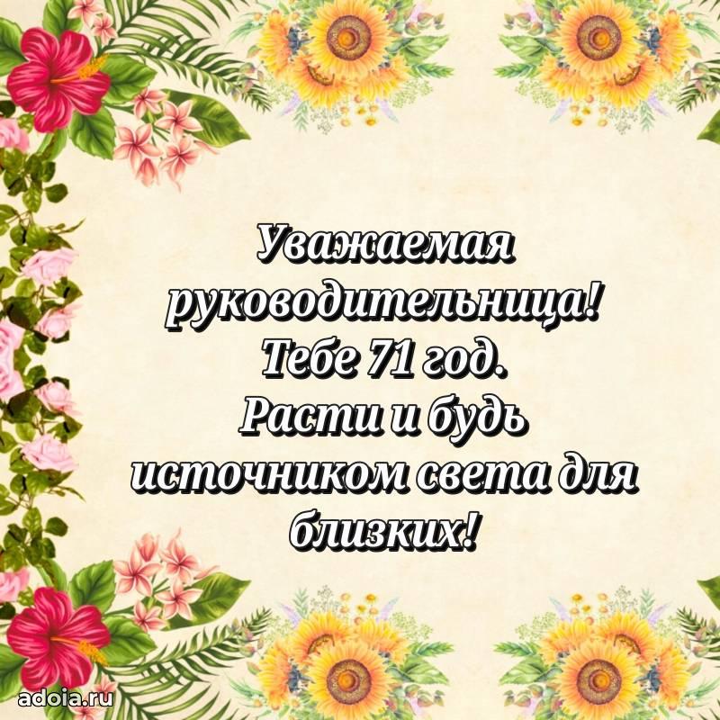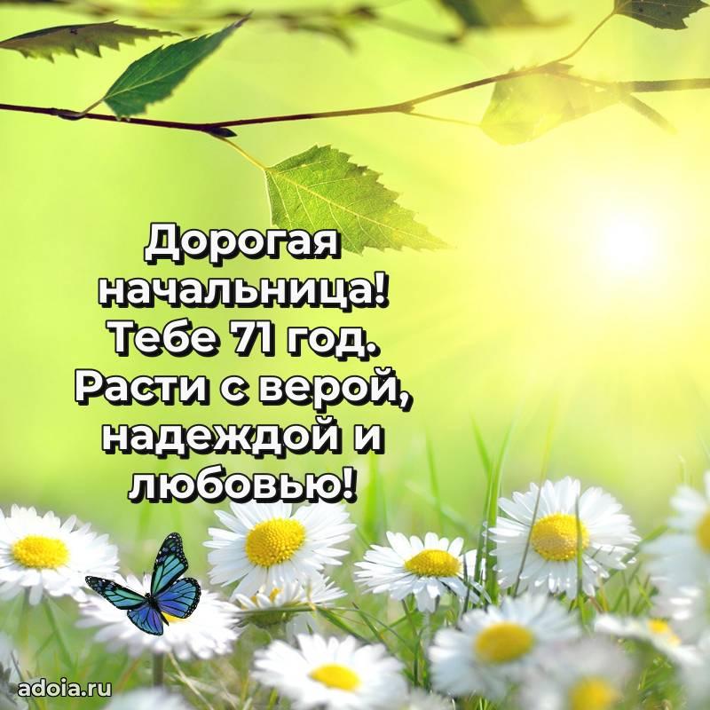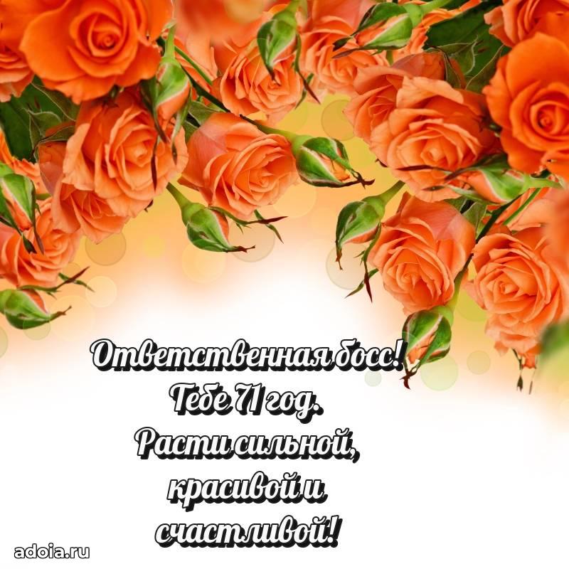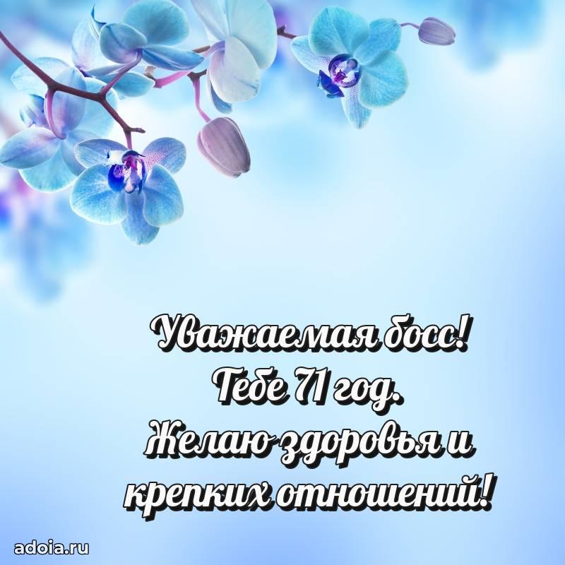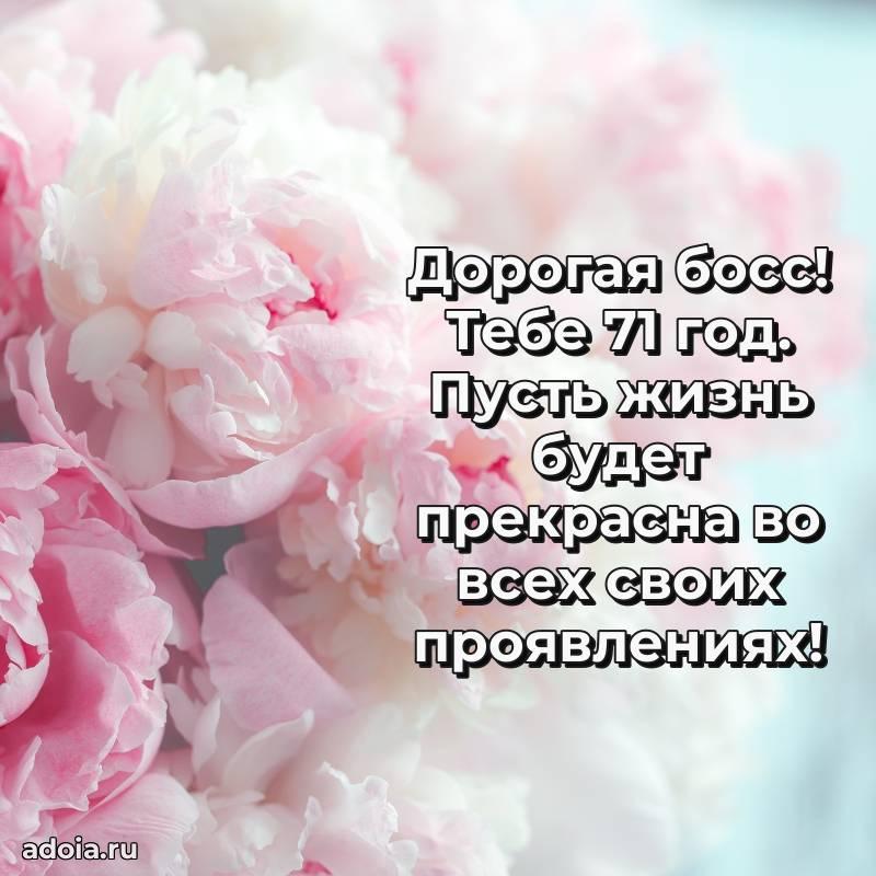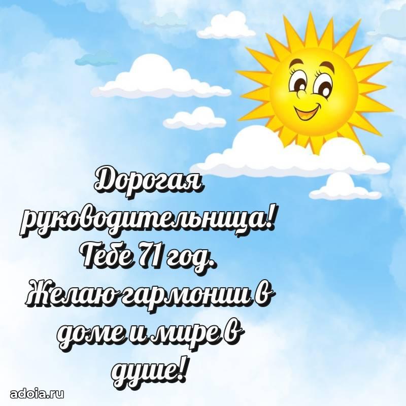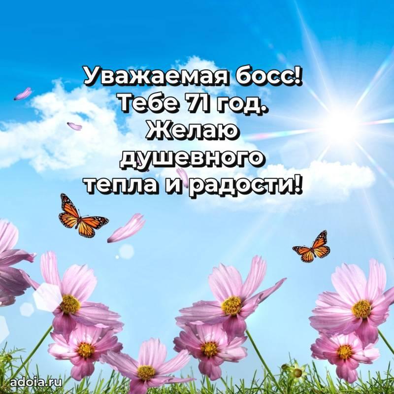 В поисках красивых и современных открыток? Вы попали по адресу! Здесь вы найдете картинки с днем рождения Начальнице на 71 год! Все картинки в высоком качестве, которые можно скачать или отправить через WhatsApp бесплатно. Также вы найдете много прикольных и мерцающих гифок и анимаций, которые поднимут настроение! Все открытки содержат поздравления в стихах и прозе.