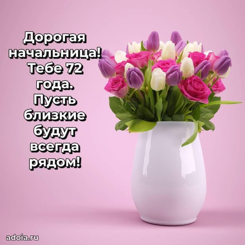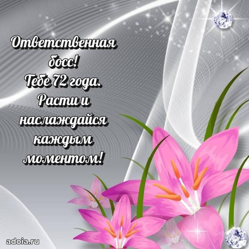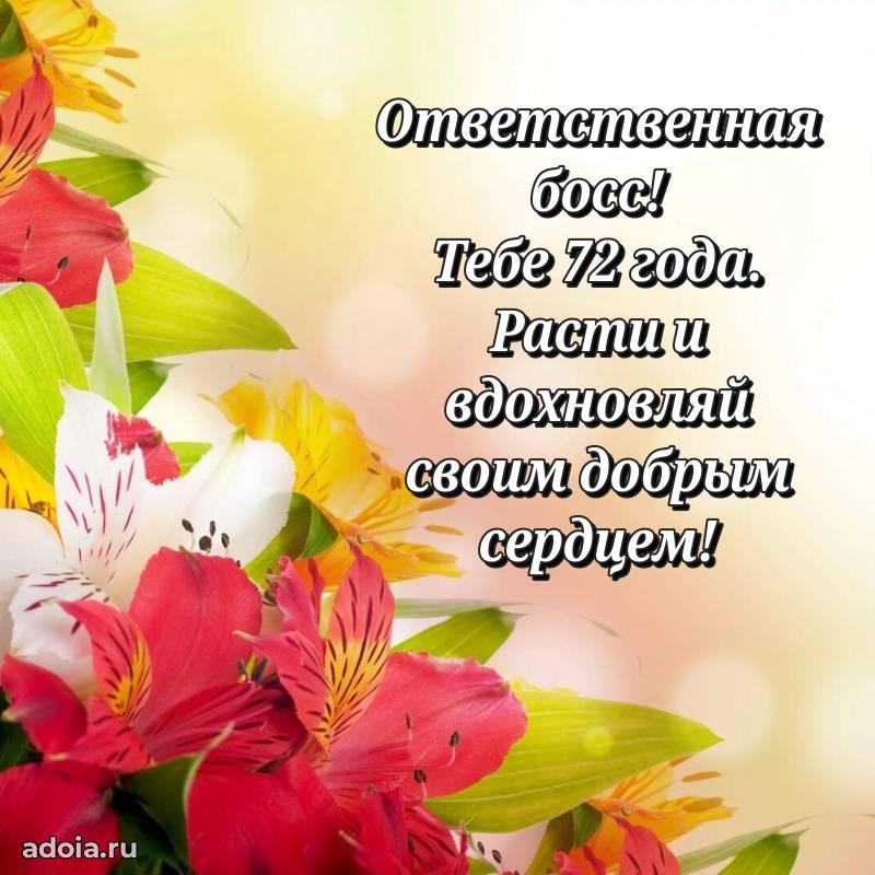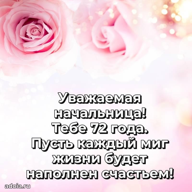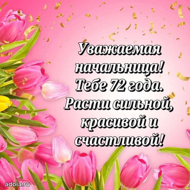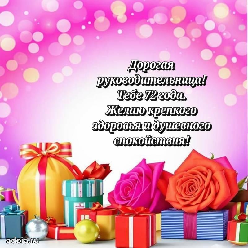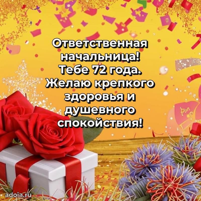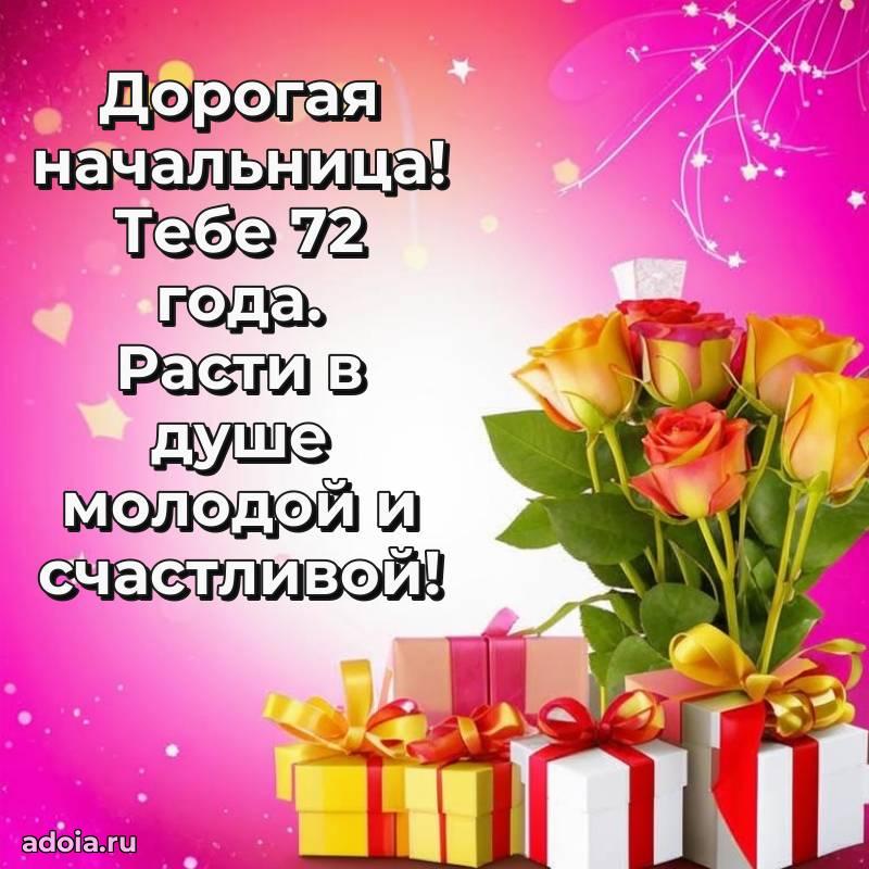 В поисках красивых и современных открыток? Вы попали по адресу! Здесь вы найдете картинки с днем рождения Начальнице на 72 года! Все картинки в высоком качестве, которые можно скачать или отправить через WhatsApp бесплатно. Также вы найдете много прикольных и мерцающих гифок и анимаций, которые поднимут настроение! Все открытки содержат поздравления в стихах и прозе.
