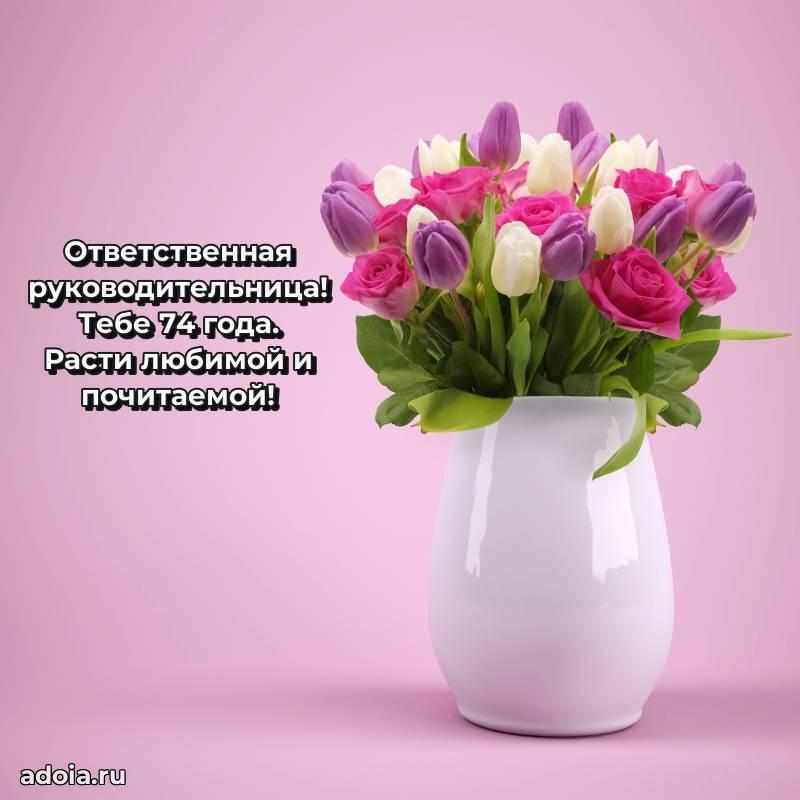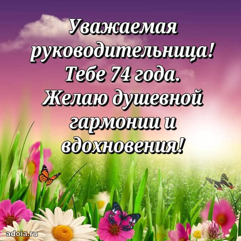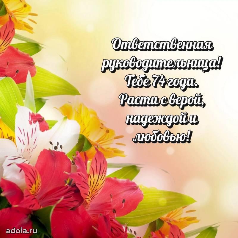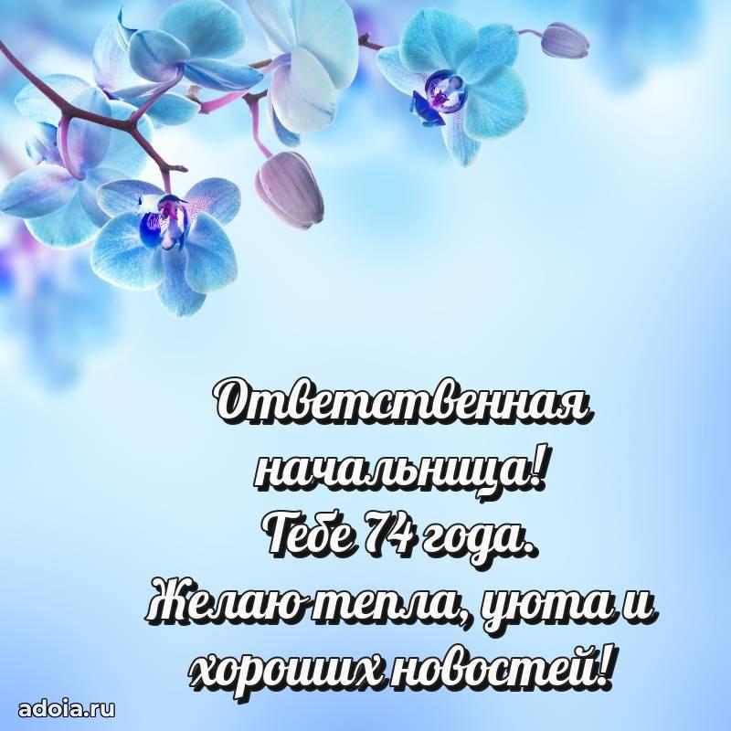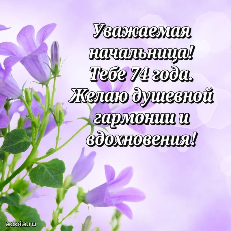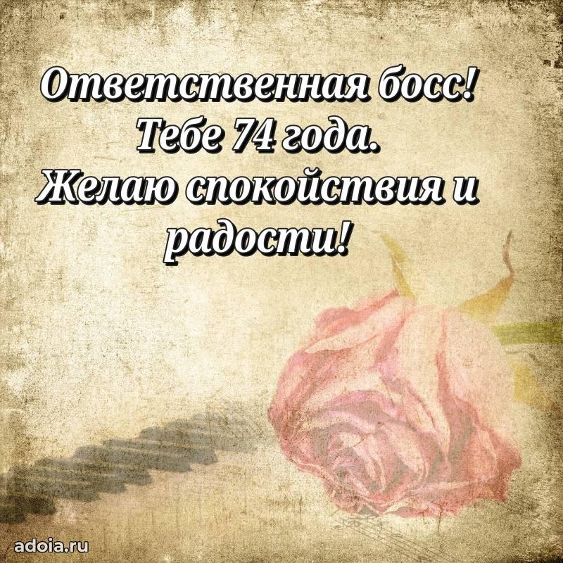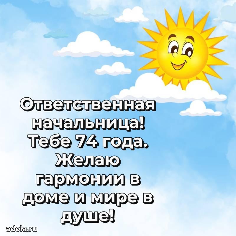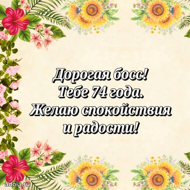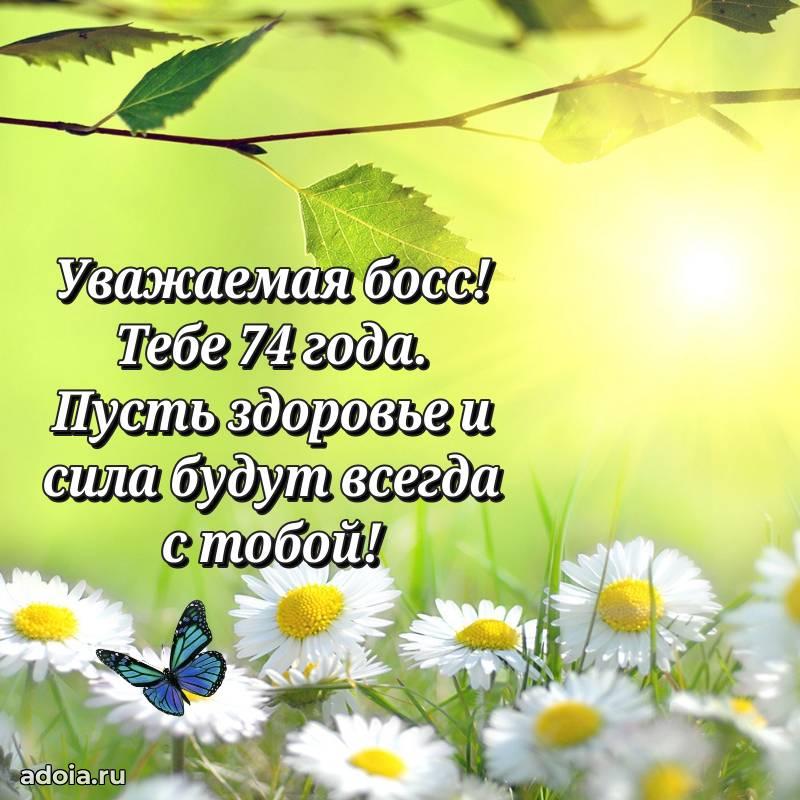 В поисках красивых и современных открыток? Вы попали по адресу! Здесь вы найдете картинки с днем рождения Начальнице на 74 года! Все картинки в высоком качестве, которые можно скачать или отправить через WhatsApp бесплатно. Также вы найдете много прикольных и мерцающих гифок и анимаций, которые поднимут настроение! Все открытки содержат поздравления в стихах и прозе.